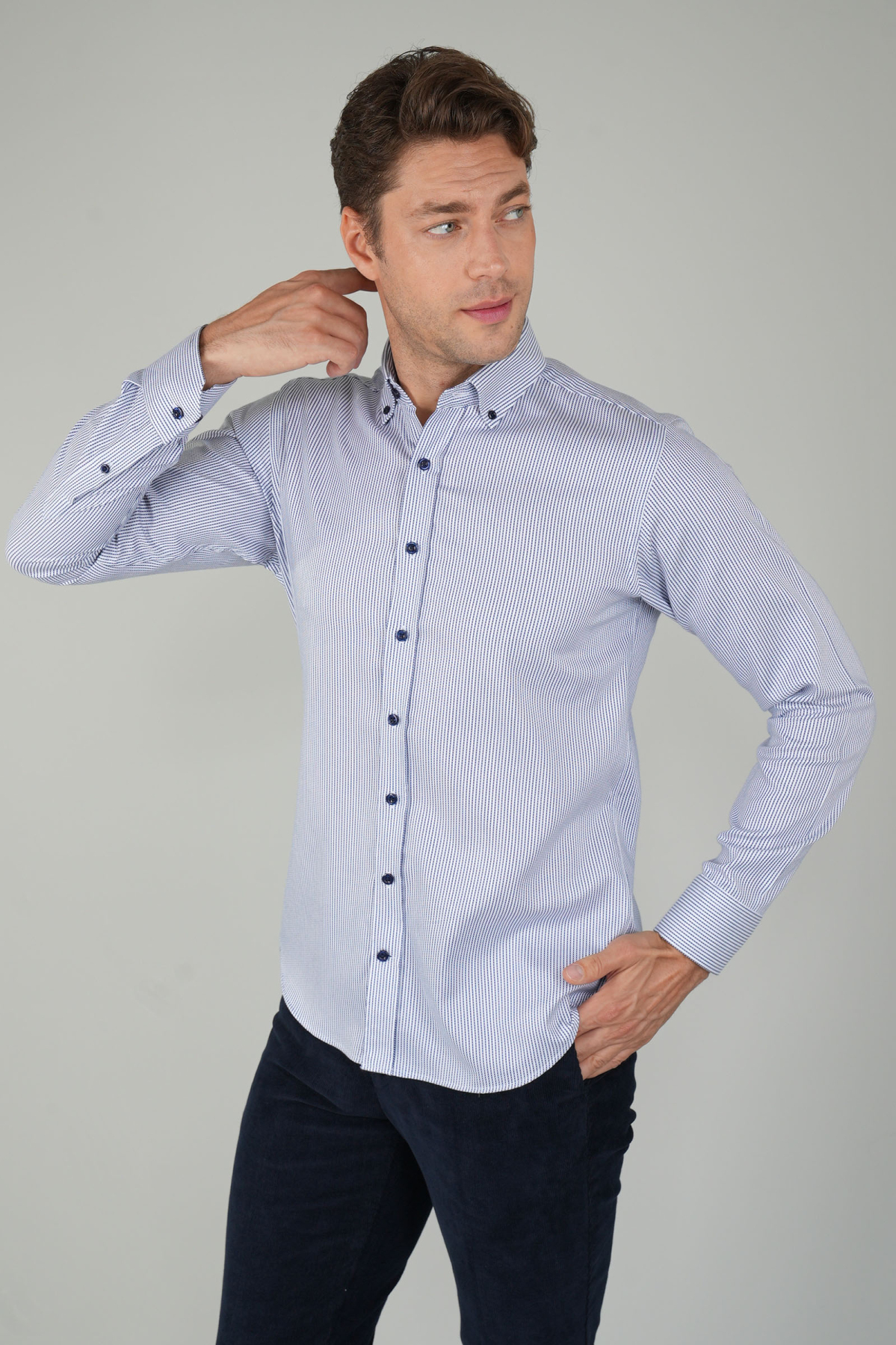 Erkek Uzun Kollu Lacivert Düğmeli Pamuk Gömlek