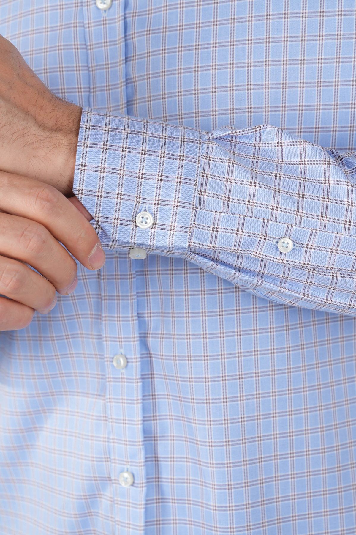 Erkek Uzun Kollu Reguar Fit Kahve Kareli Mavi Gömlek