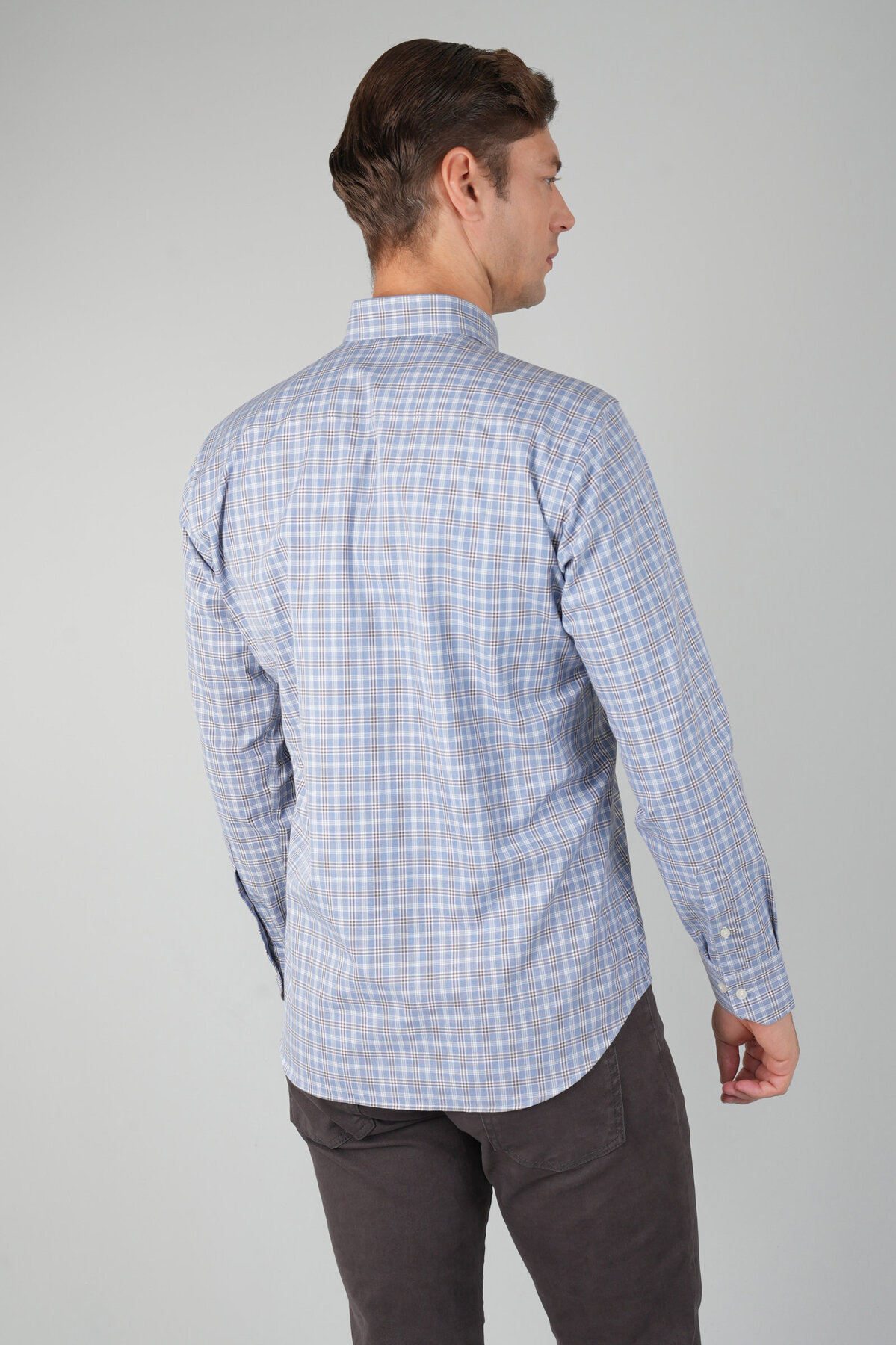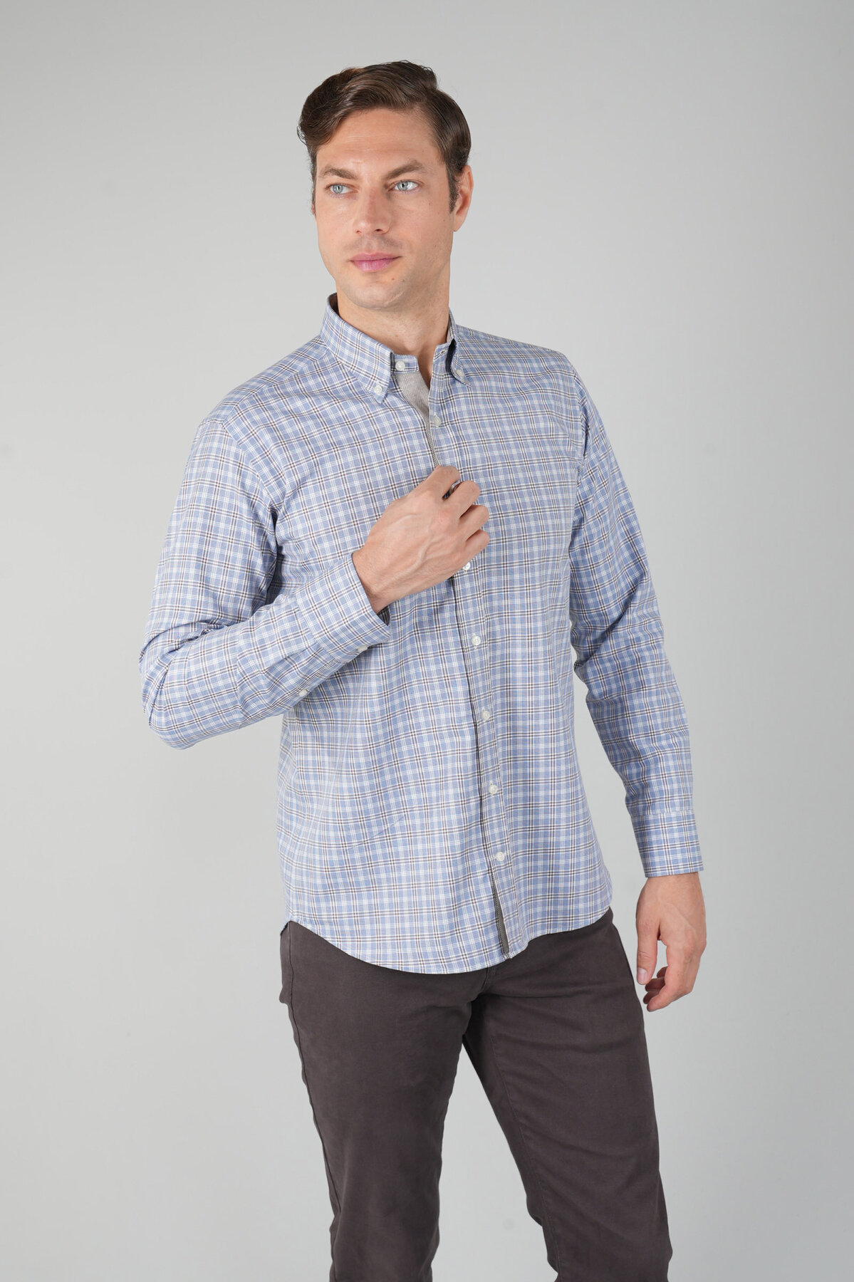 Erkek Uzun Kollu Regular Fit Pamuk Gömlek Mavi-Bej