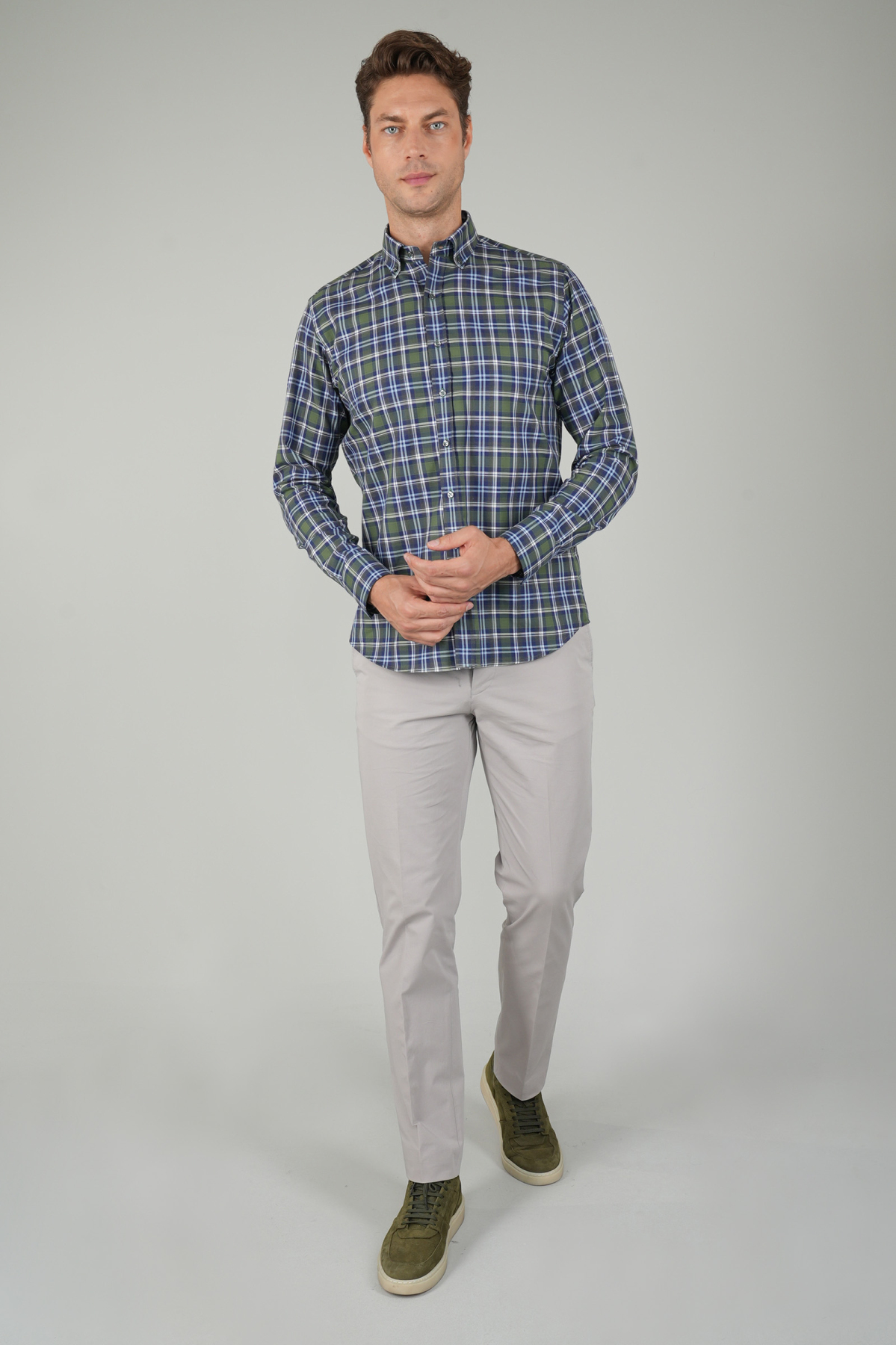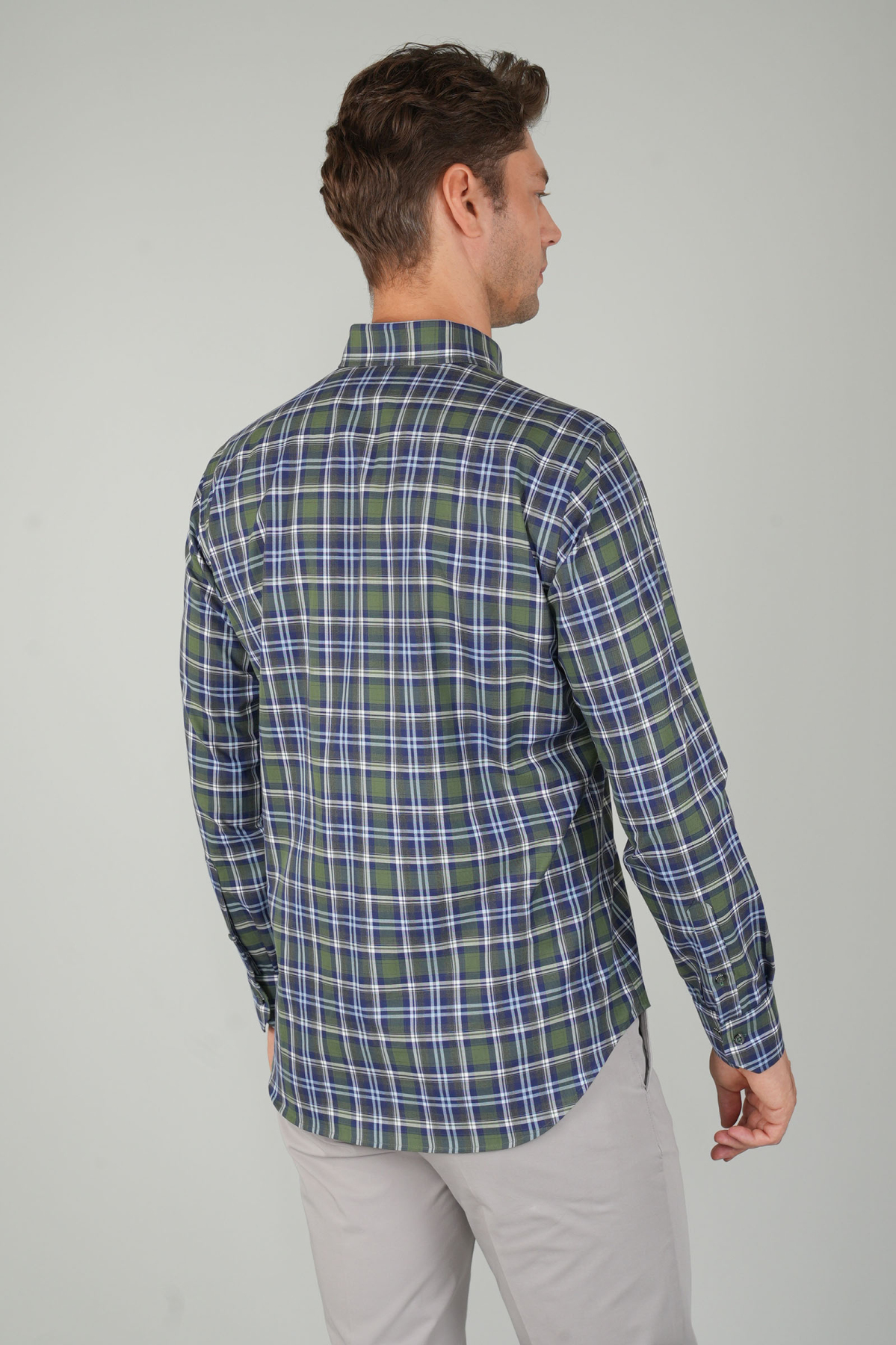 Erkek Uzun Kollu Regular Fit Pamuk Spor Kareli Gömlek Lacivert