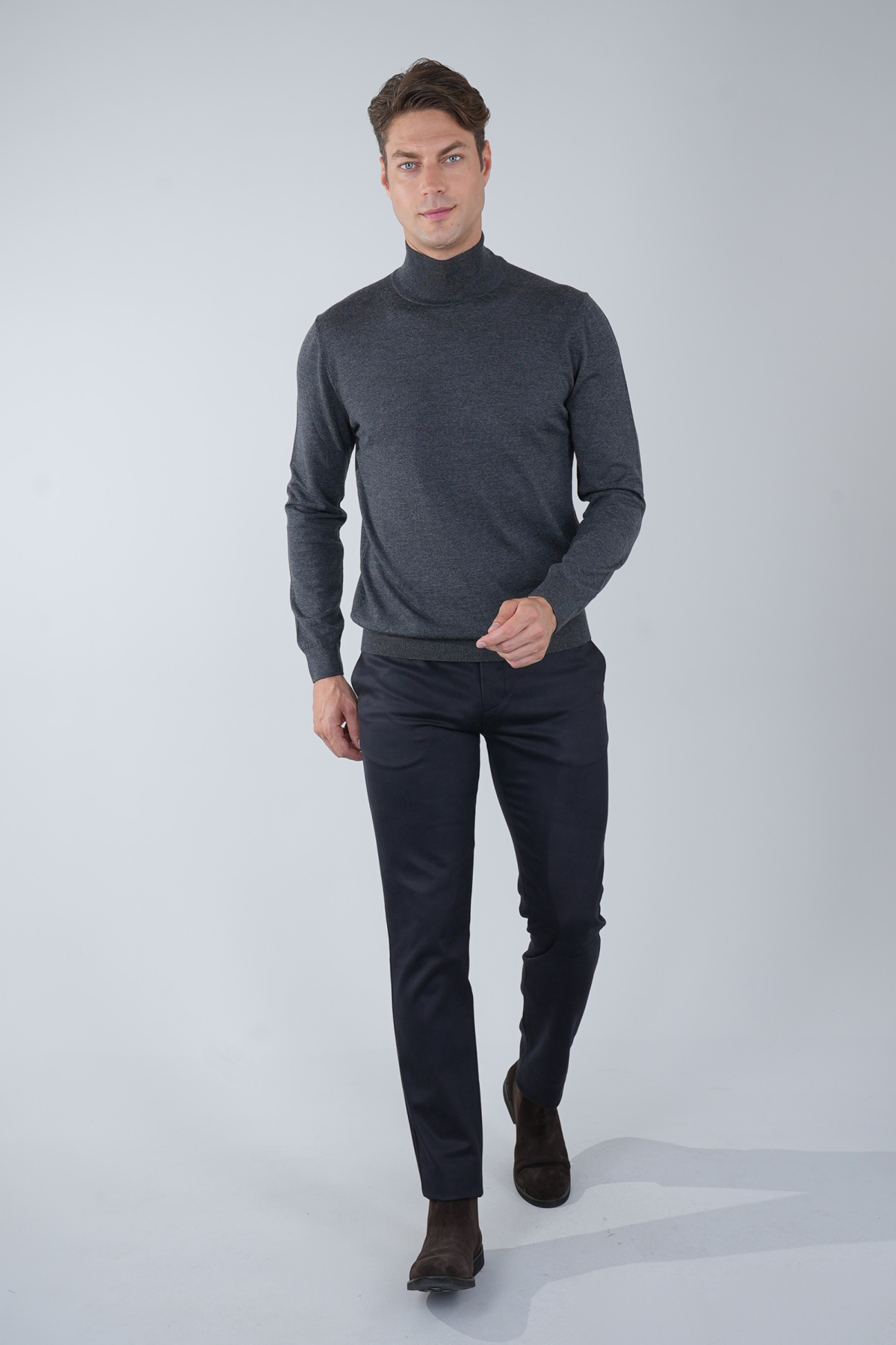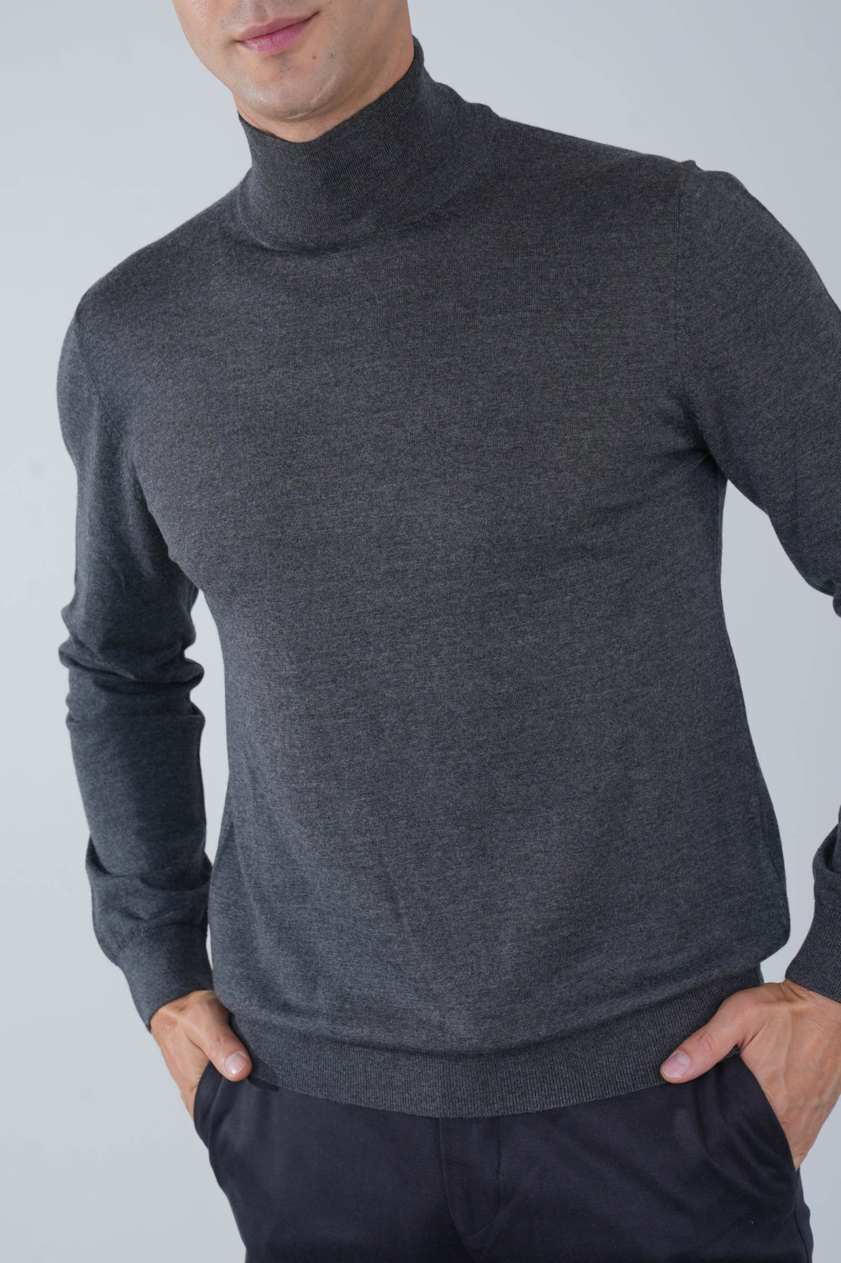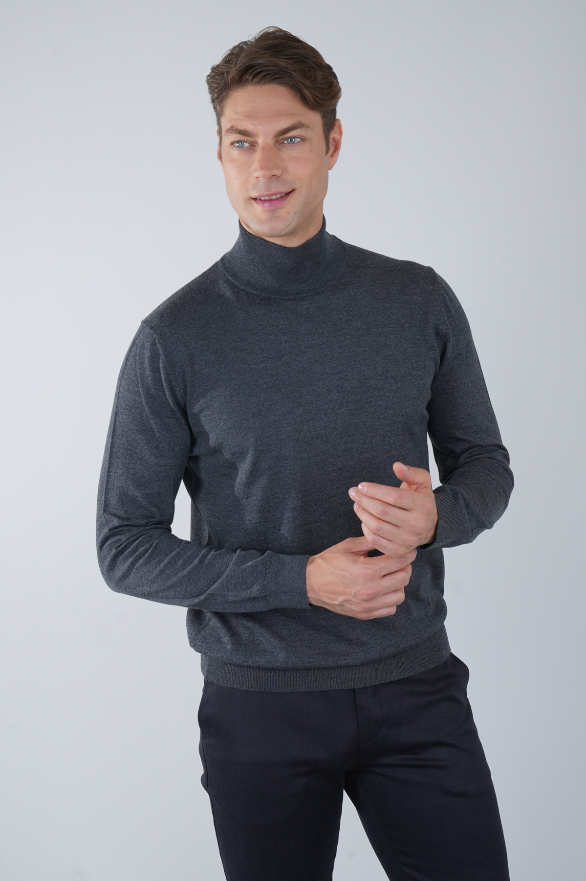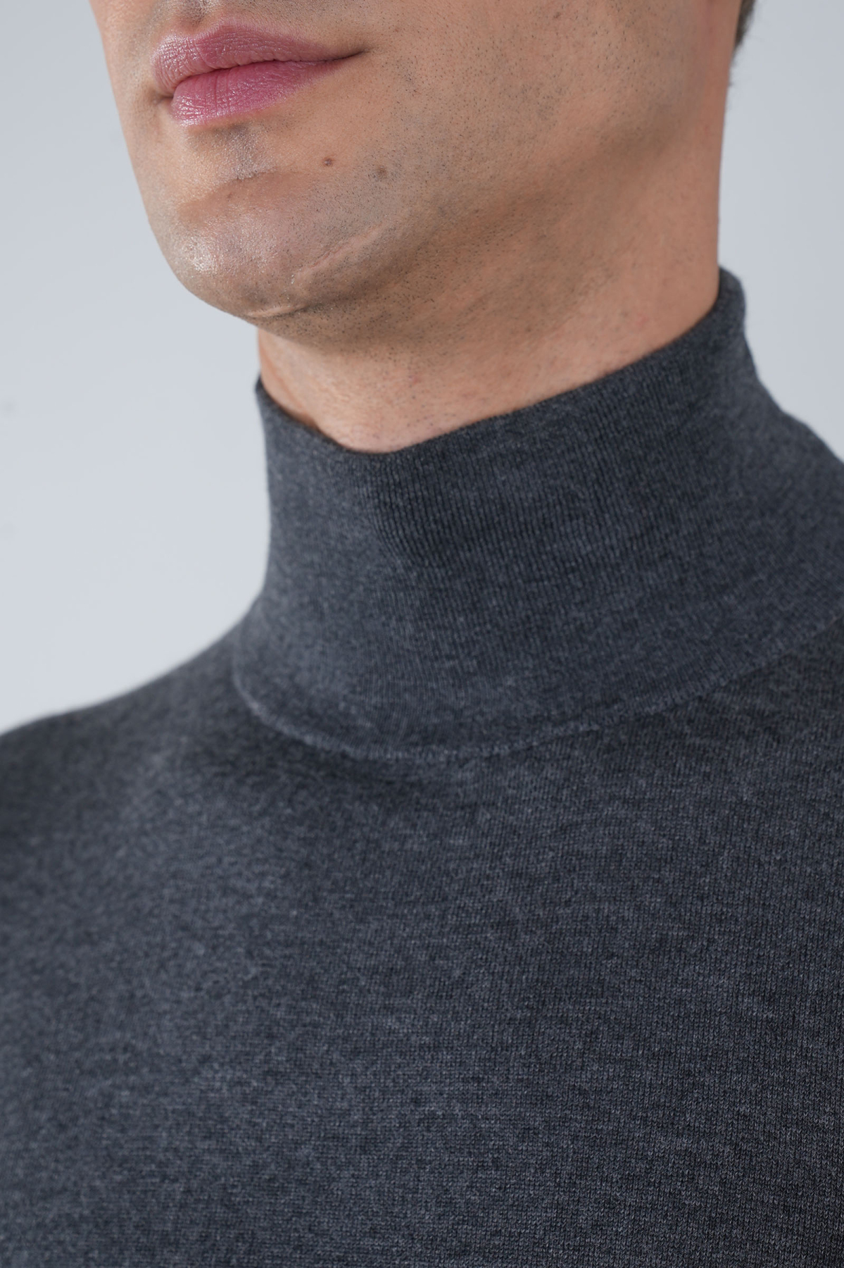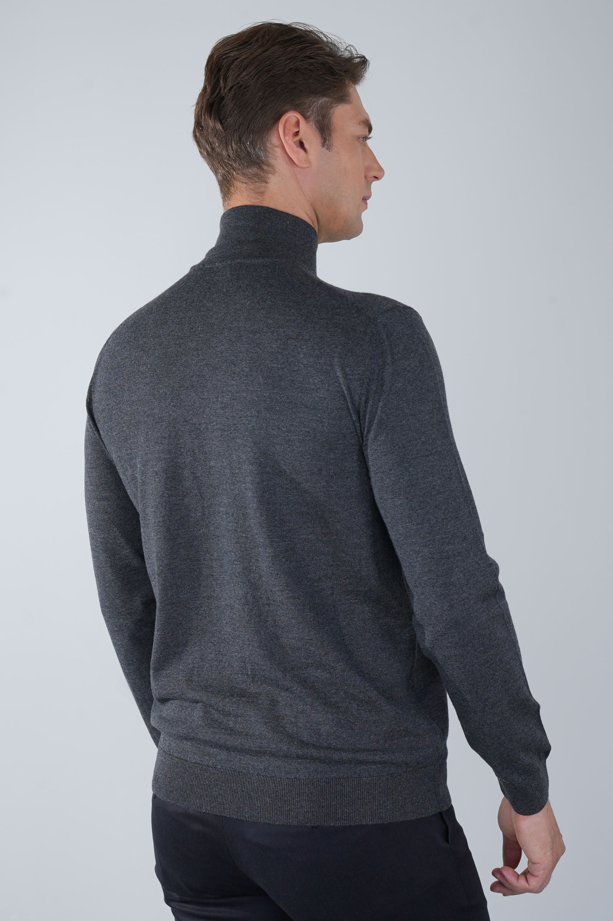 Erkek Yün Basic Yarım Balıkçı Yaka Triko Antrasit