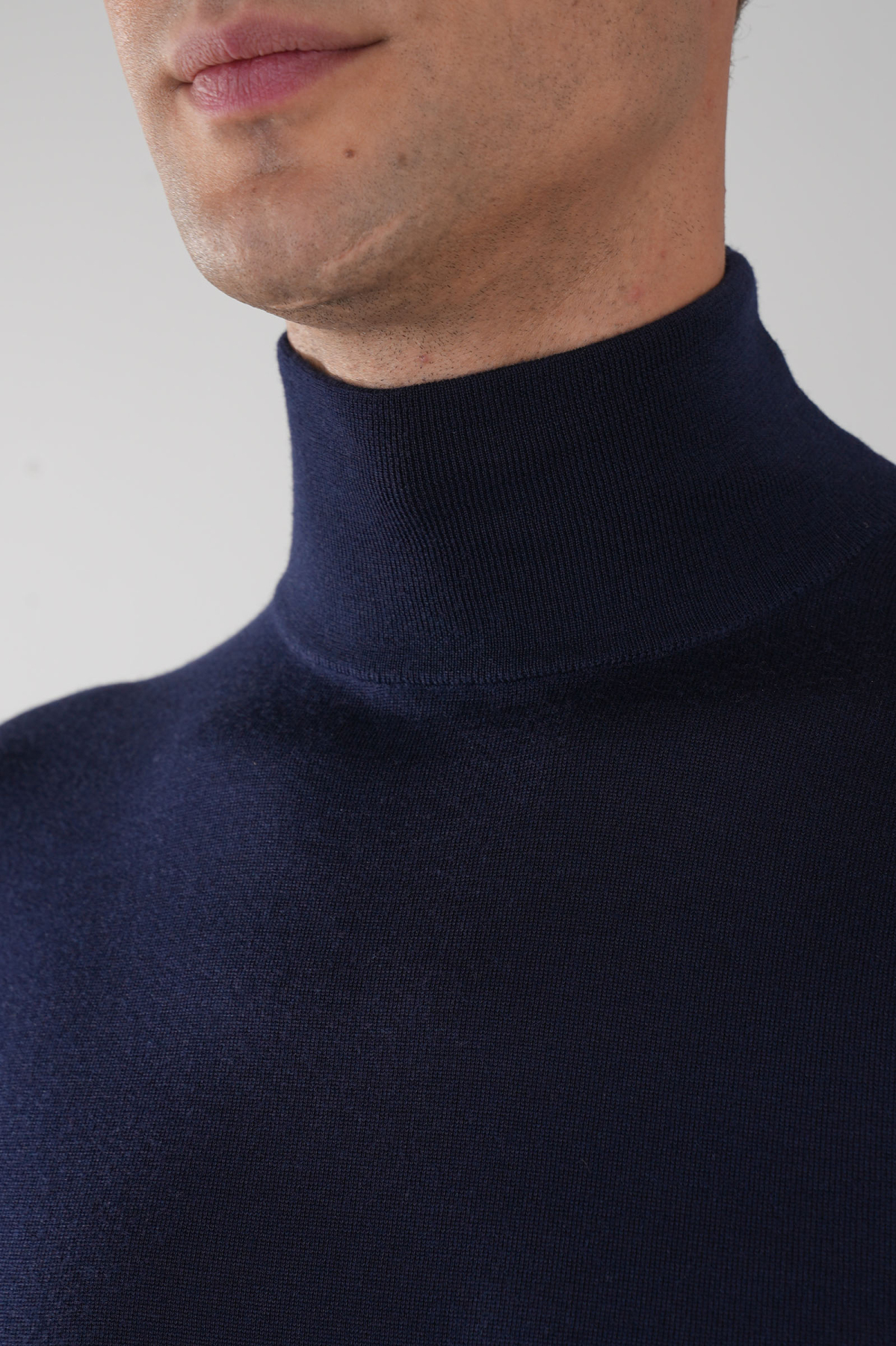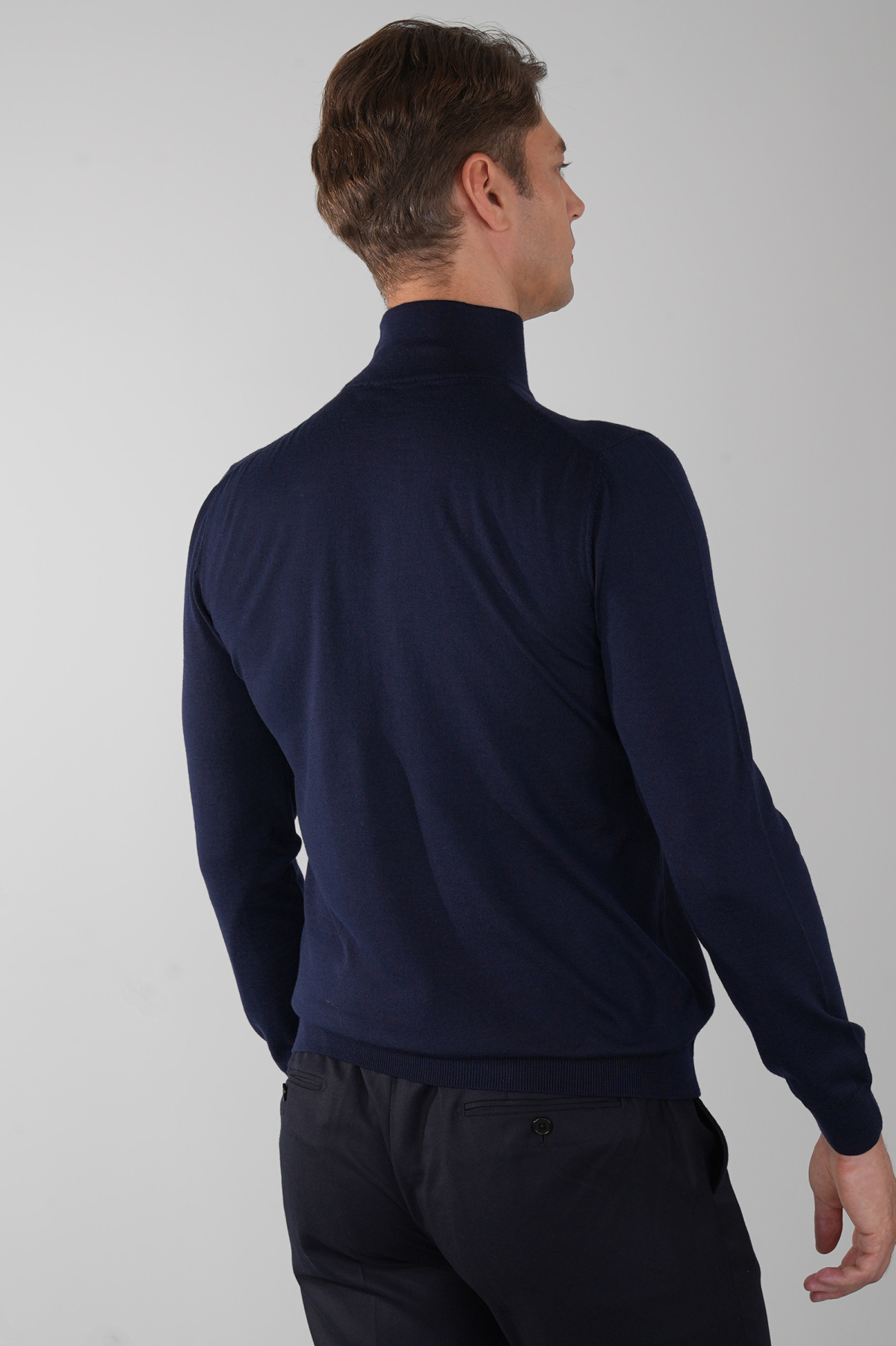 Erkek Yün Basic Yarım Balıkçı Yaka Triko Lacivert