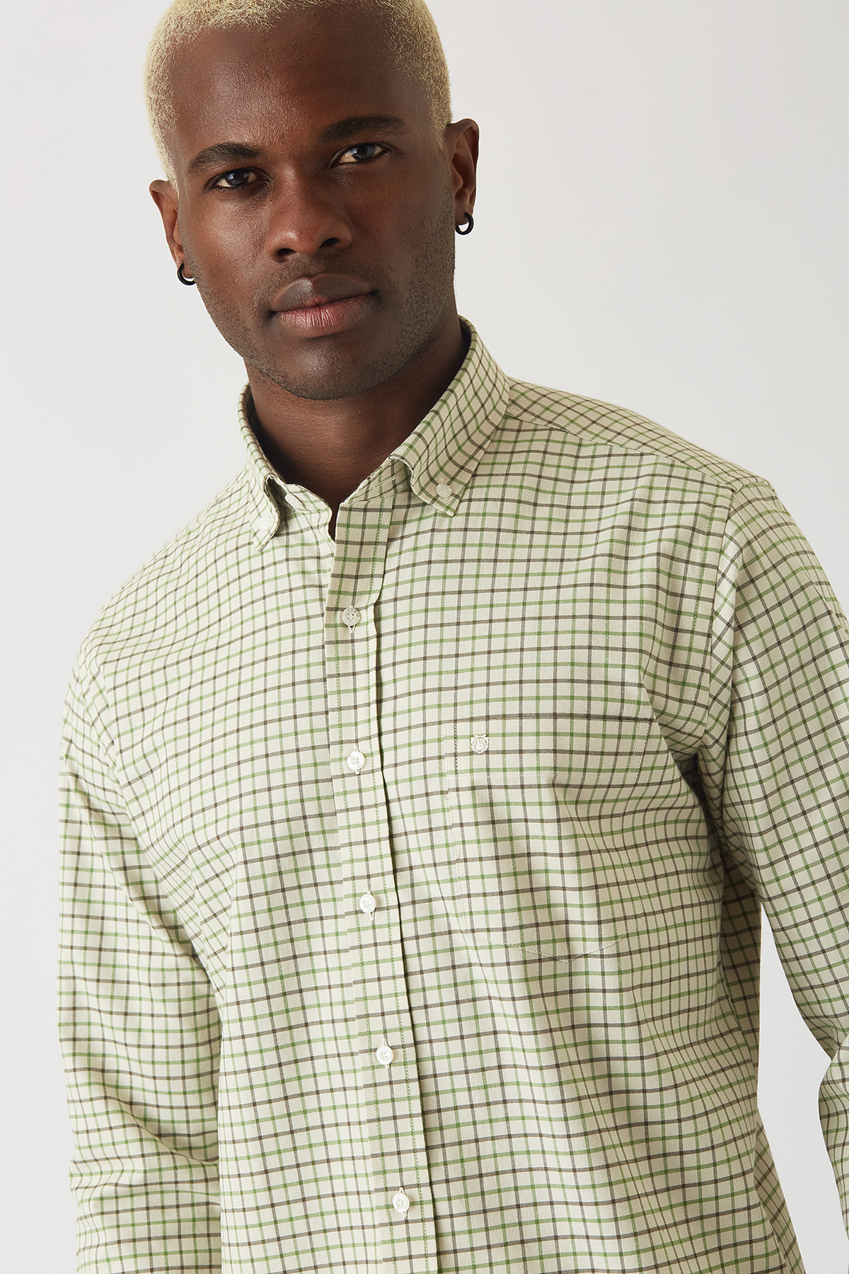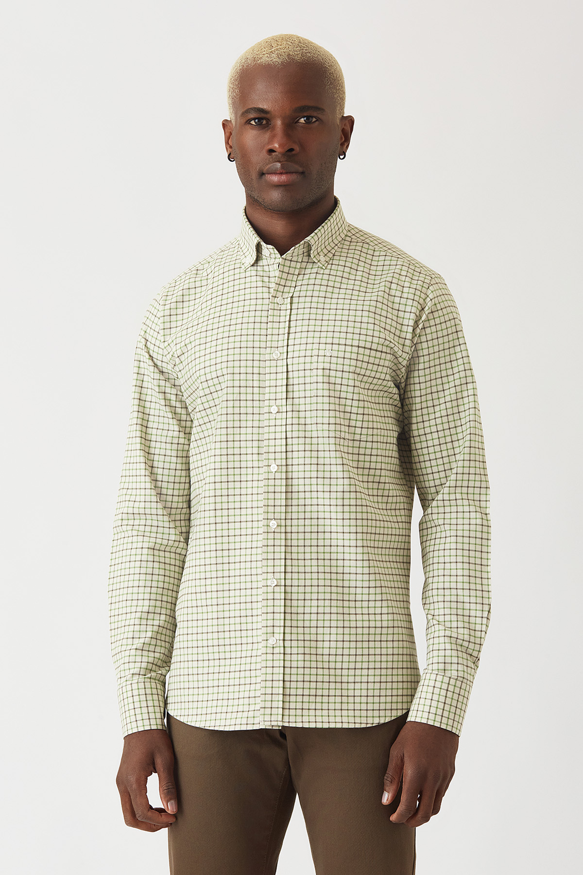 Regular Fit Yeşil Paşa Yaka Spor Erkek Gömlek