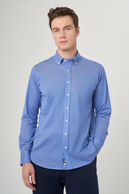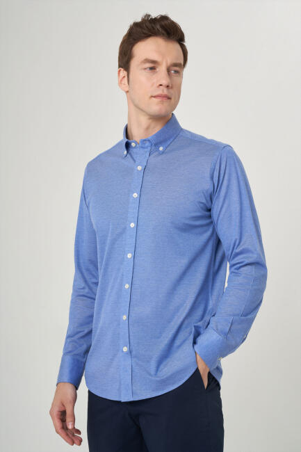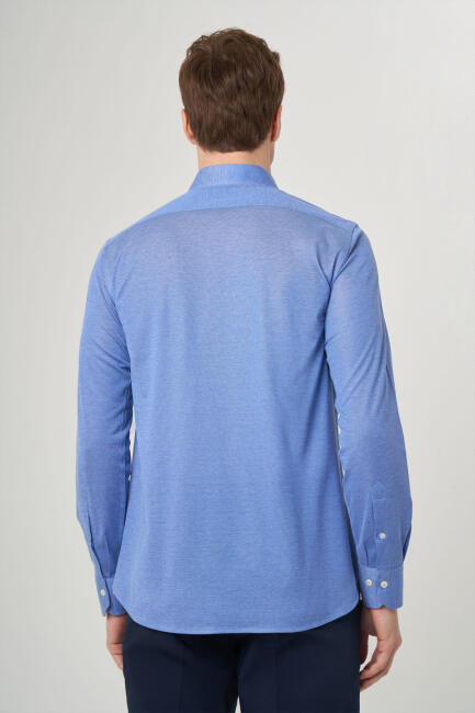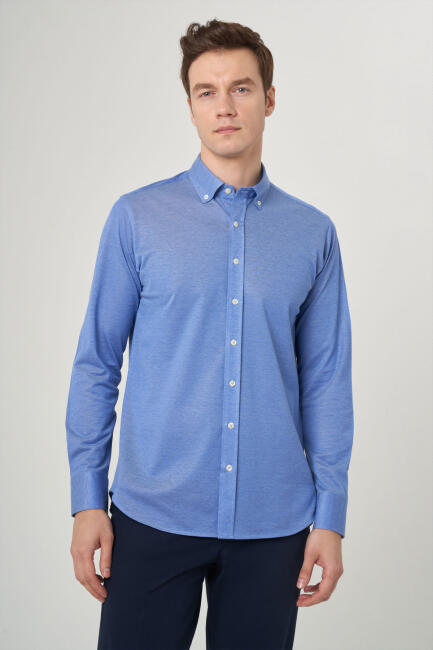 Regular Fit Paşa Yaka Mavi Spor Erkek Gömlek