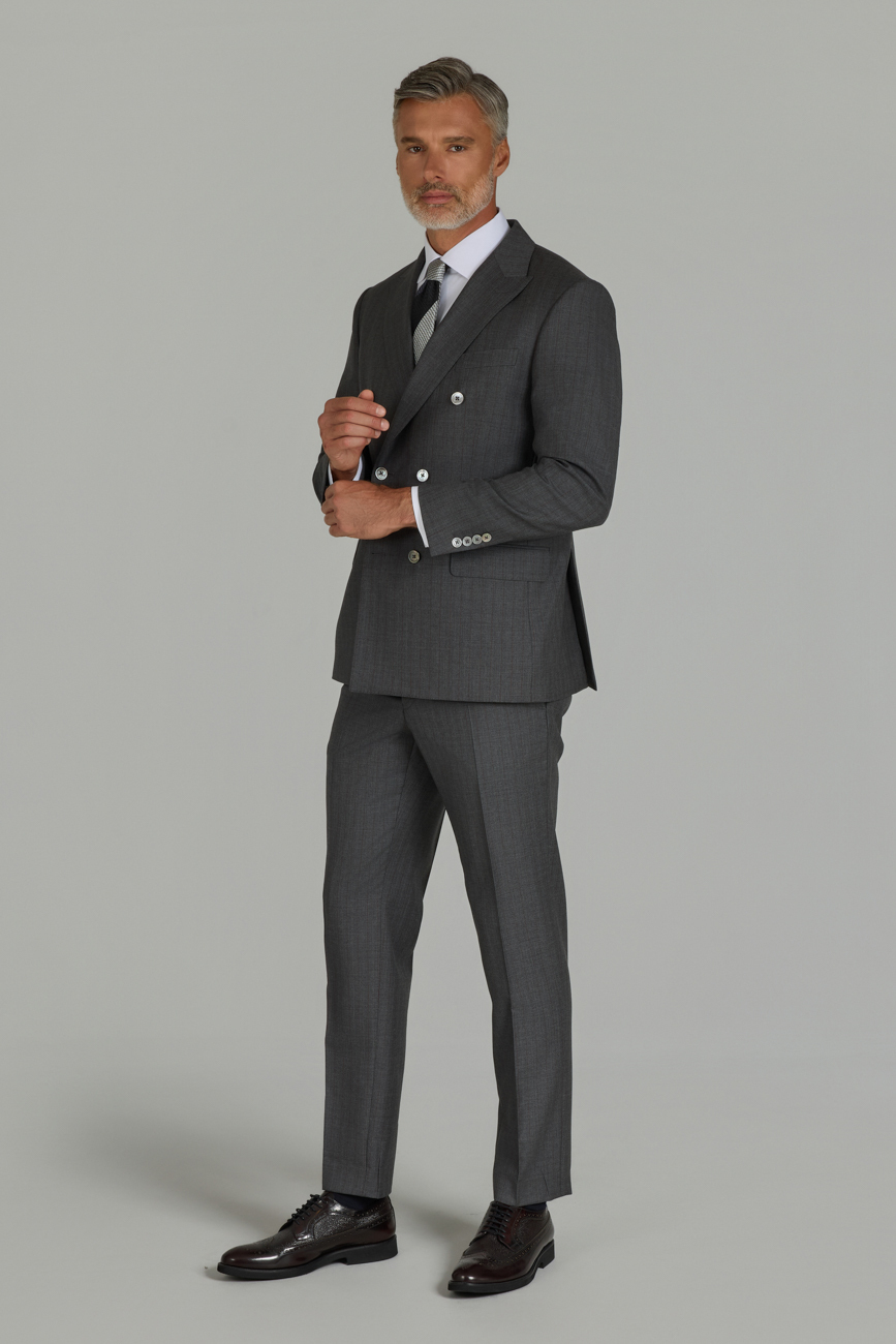 Gri Comfort Fit İtalyan Kruvaze Yaka Sedef Düğmeli 6 Drop Yün Takım Elbise Gri
