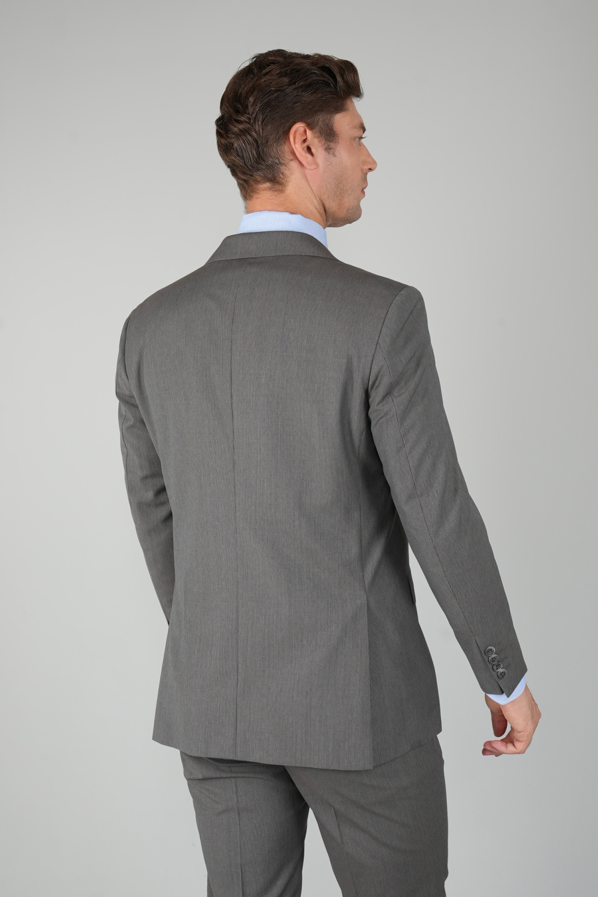 Gri Kırlangıç Yaka Çift Yırtmaçlı 6 Drop Yün Keten Takım Elbise