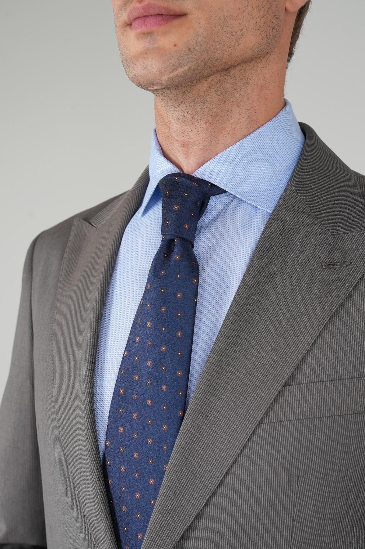 Gri Kırlangıç Yaka Çift Yırtmaçlı 6 Drop Yün Keten Takım Elbise Gri