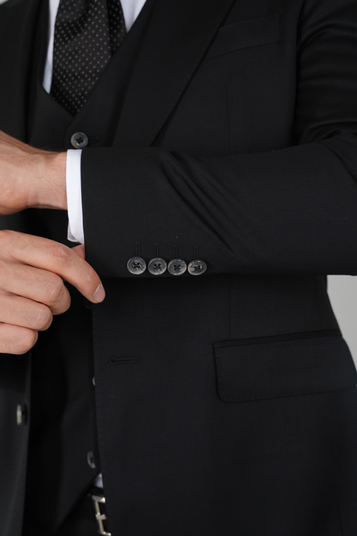 Gri Kırlangıç Yaka Çift Yırtmaçlı 6 Drop Yün Takım Elbise Siyah