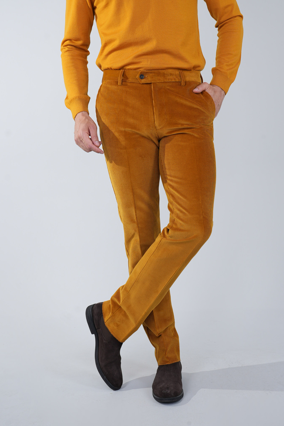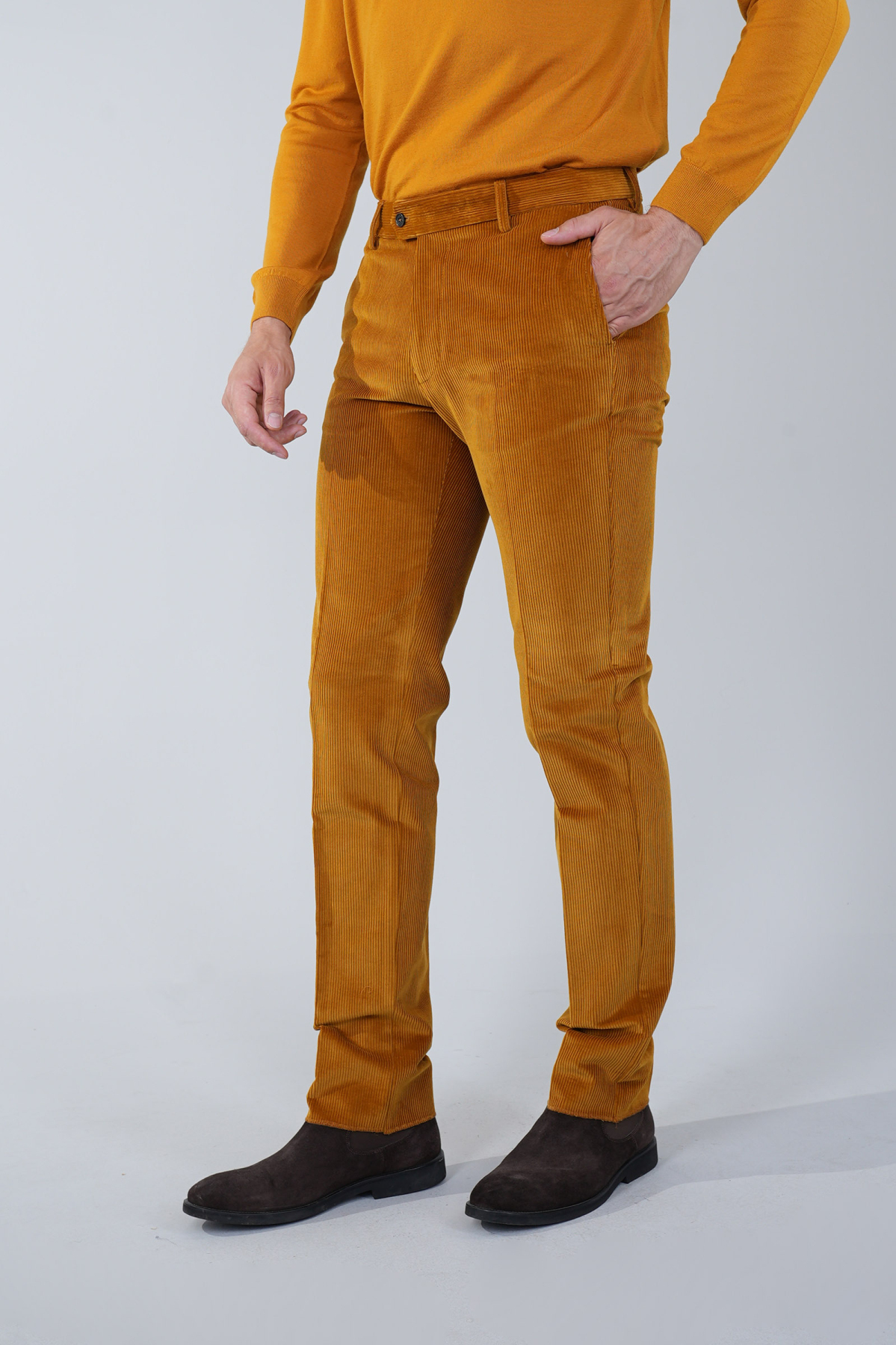Hardal Kadife Pamuk Modal Likralı Esnek Rahat 4 Cepli Erkek Pantolon