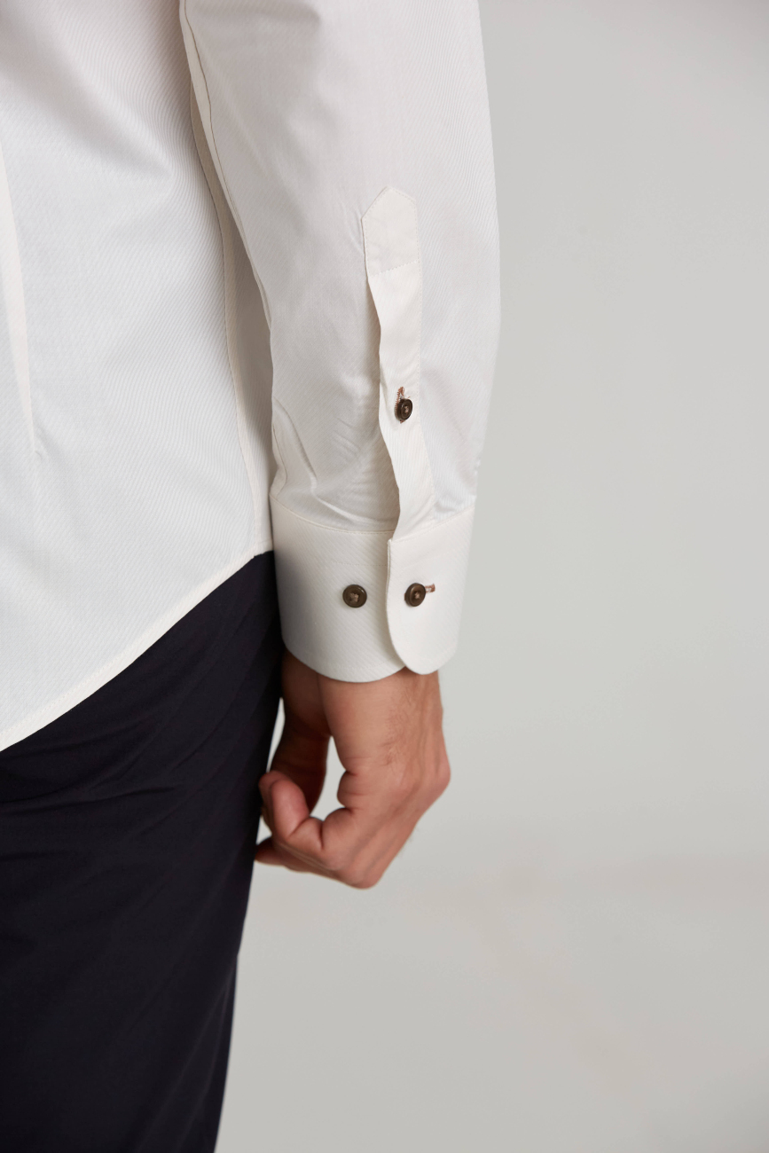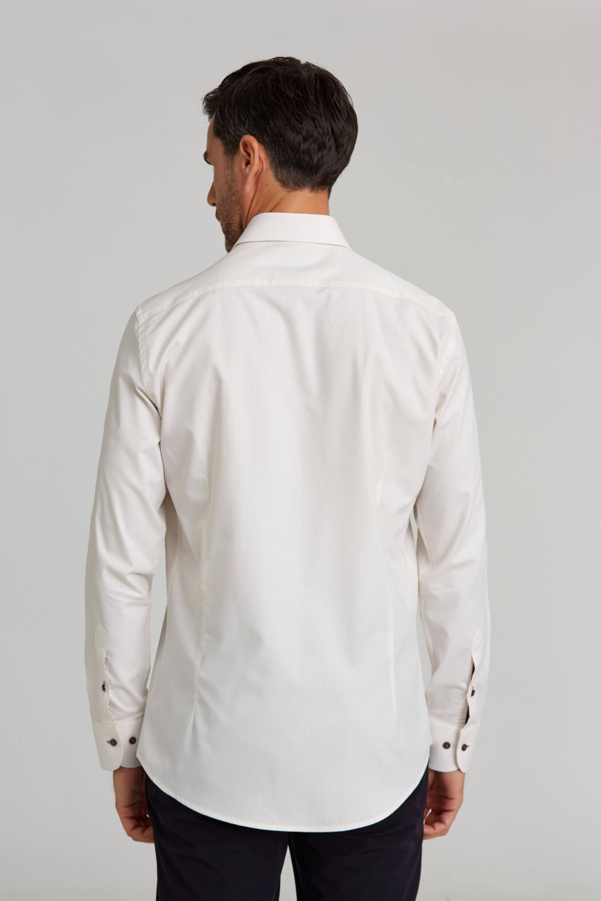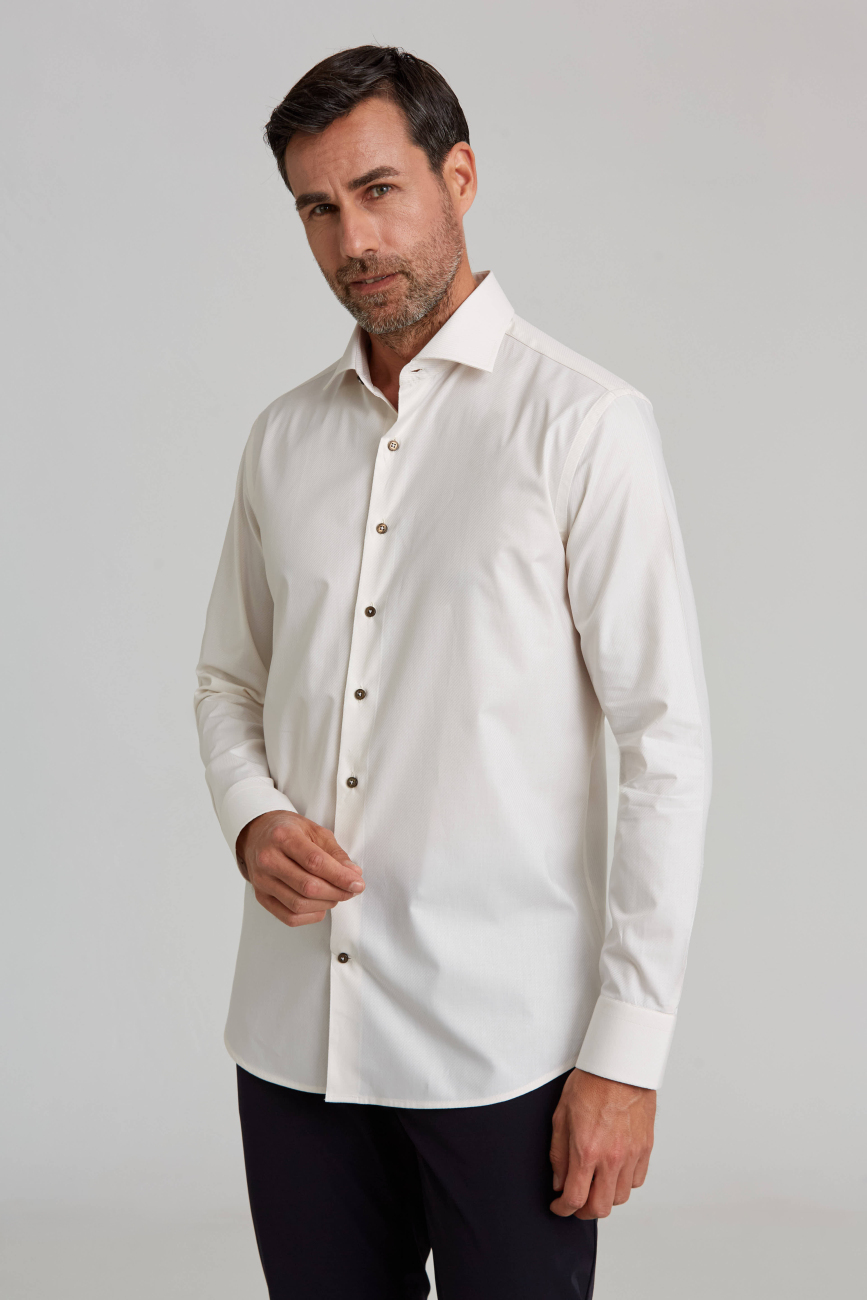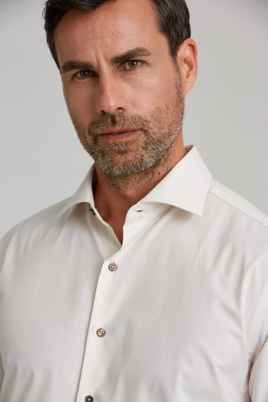 İtalyan Yaka Gizli Düğmeli Uzun Kollu Ekru Spor Erkek Gömlek