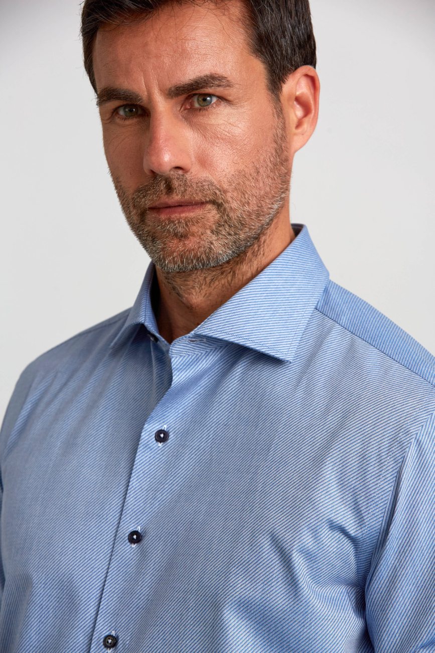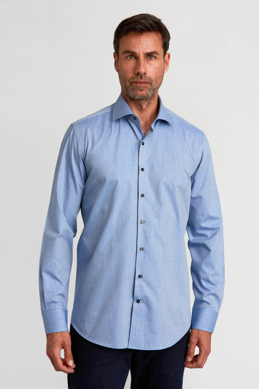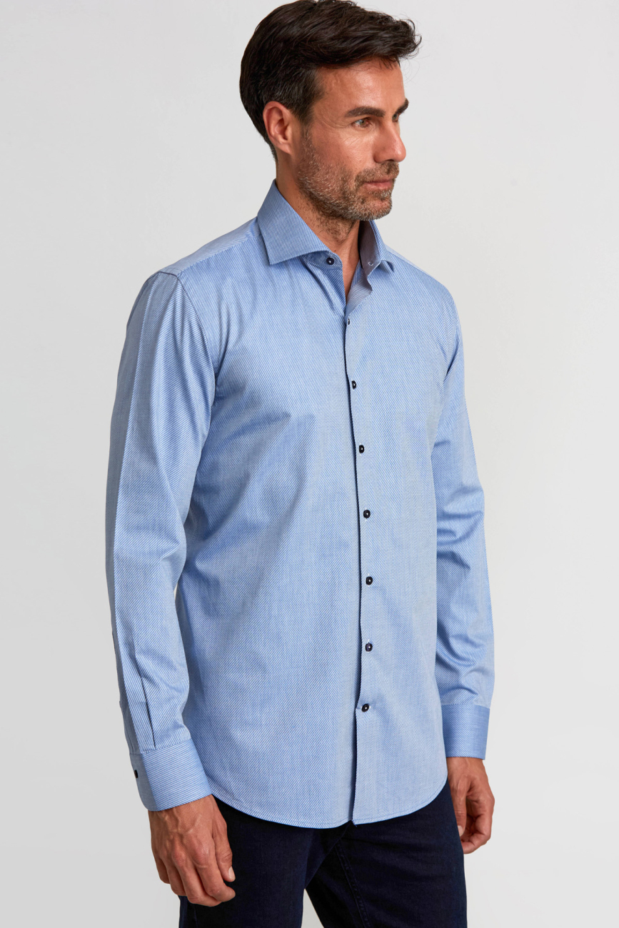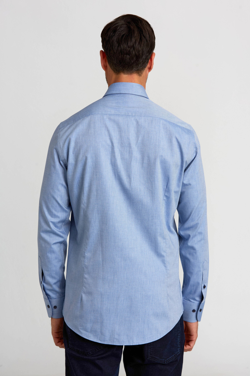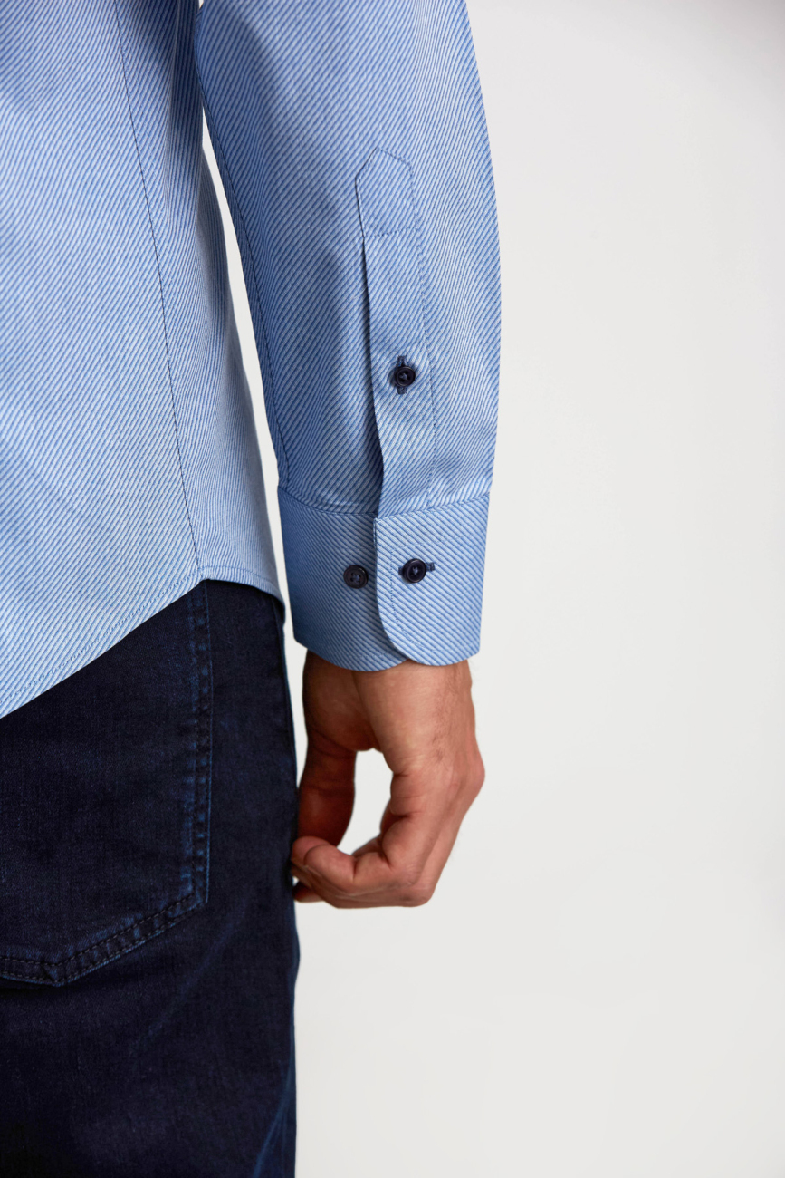 İtalyan Yaka Gizli Düğmeli Uzun Kollu Mavi Spor Erkek Gömlek