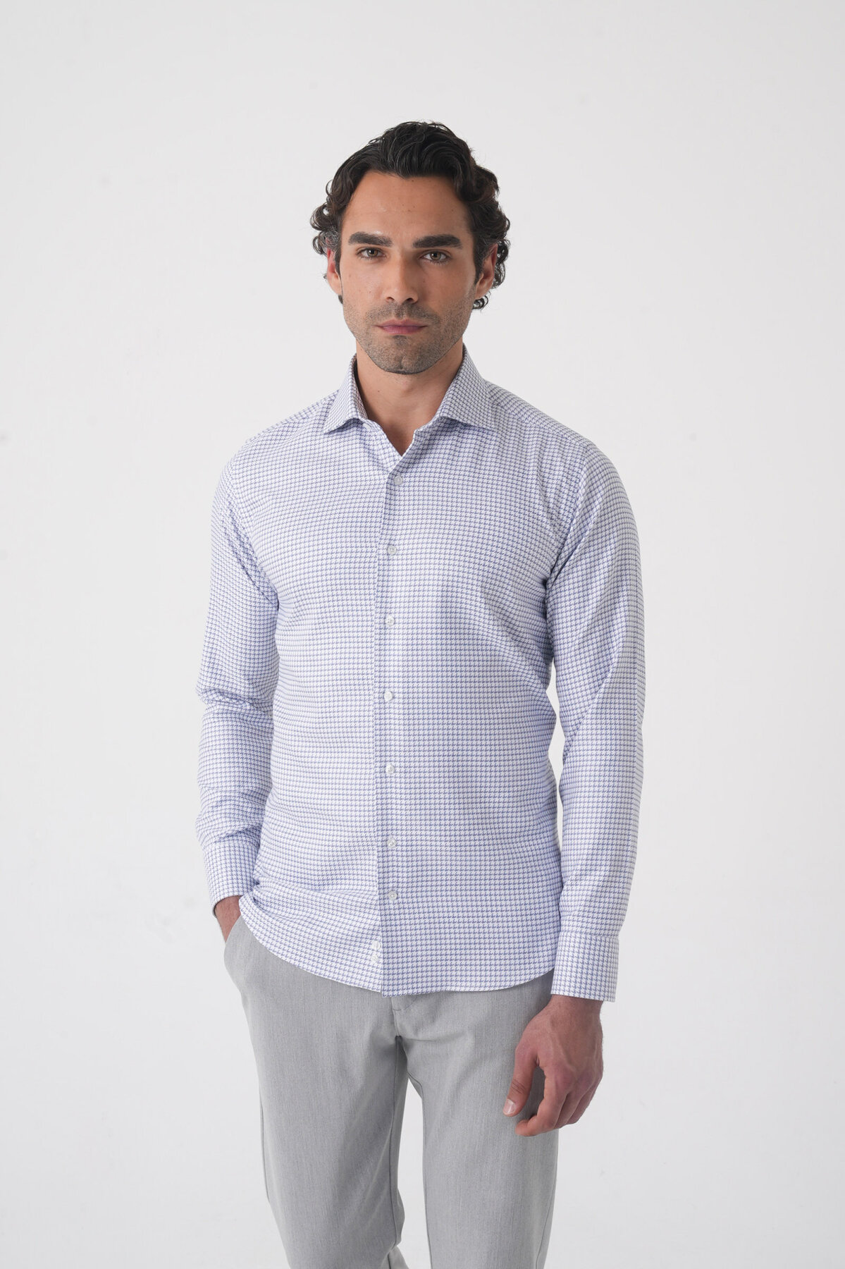 Regular Fit İtalyan Yaka Pamuk Lacivert Erkek Gömlek