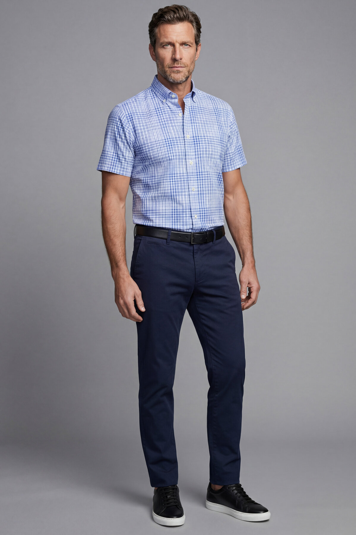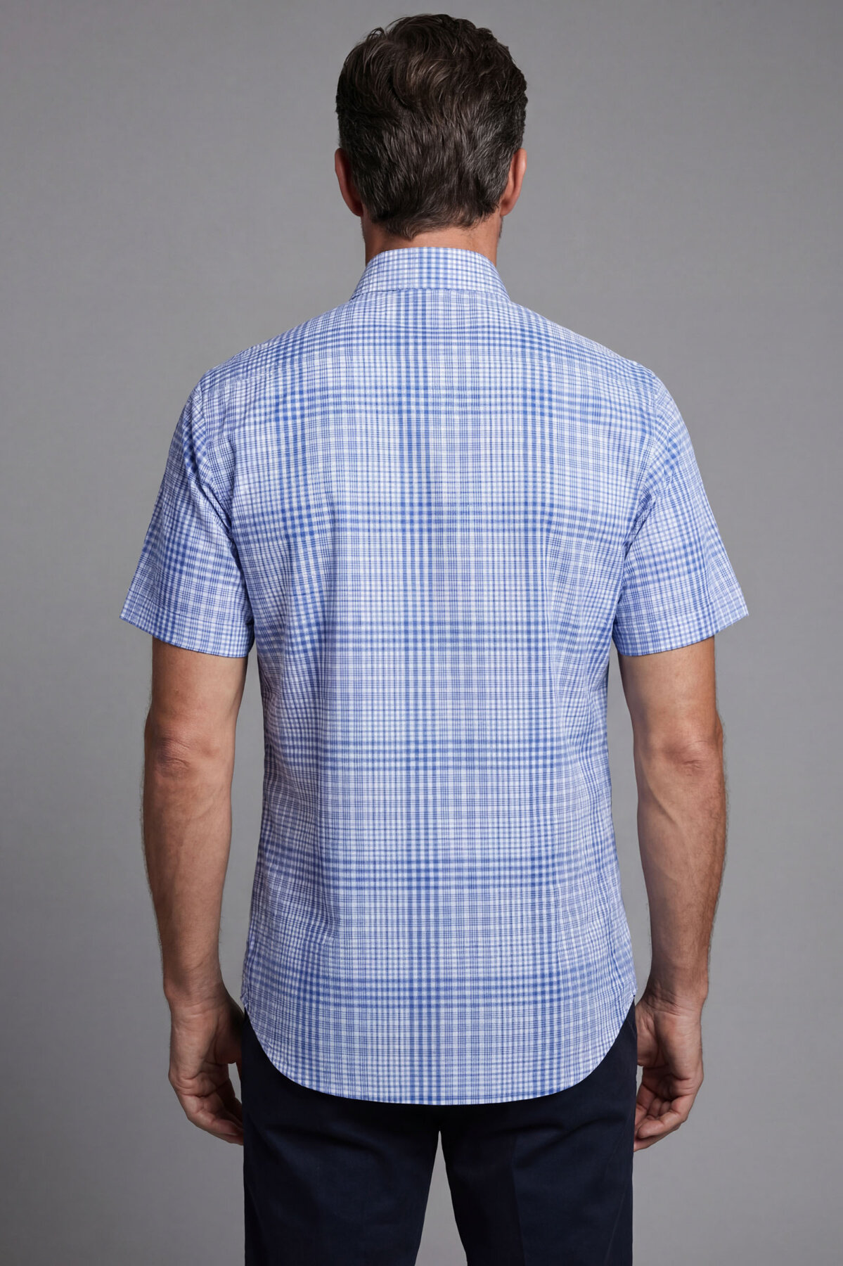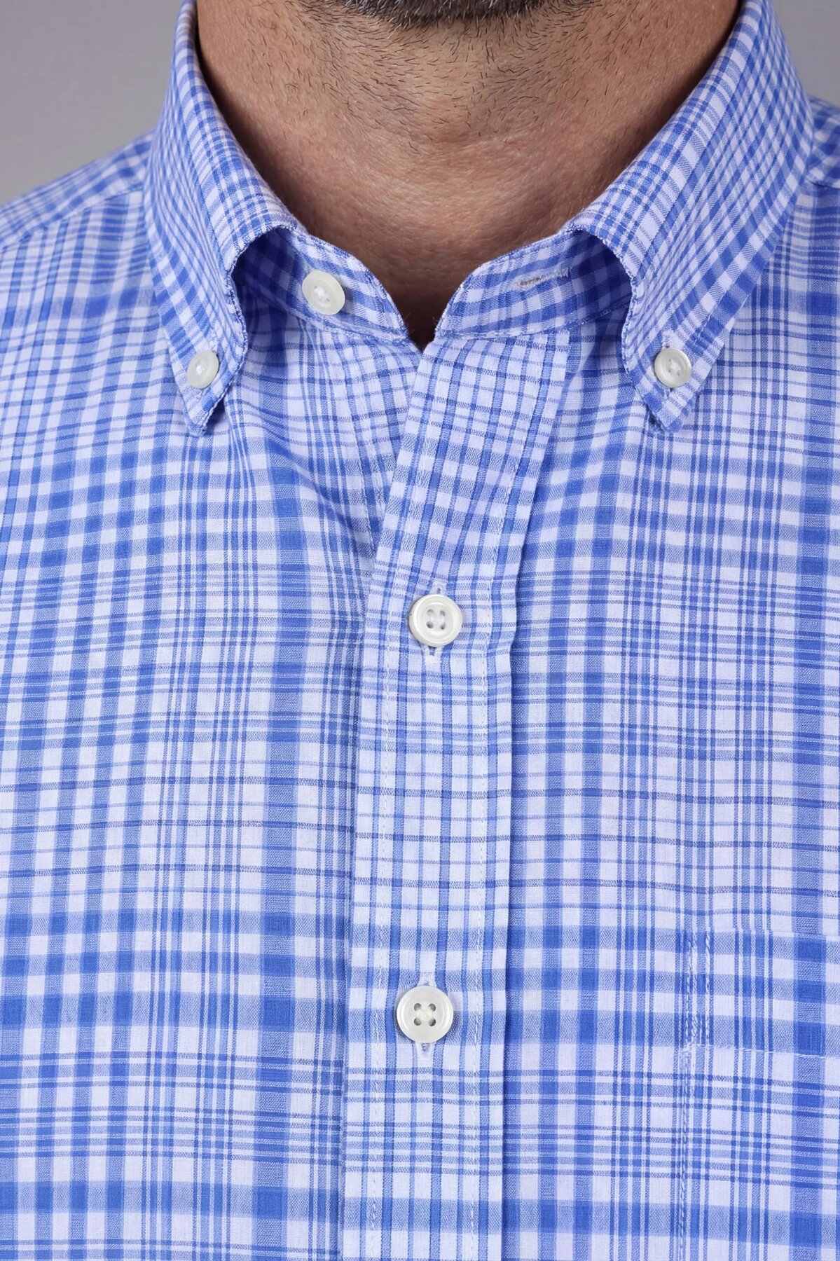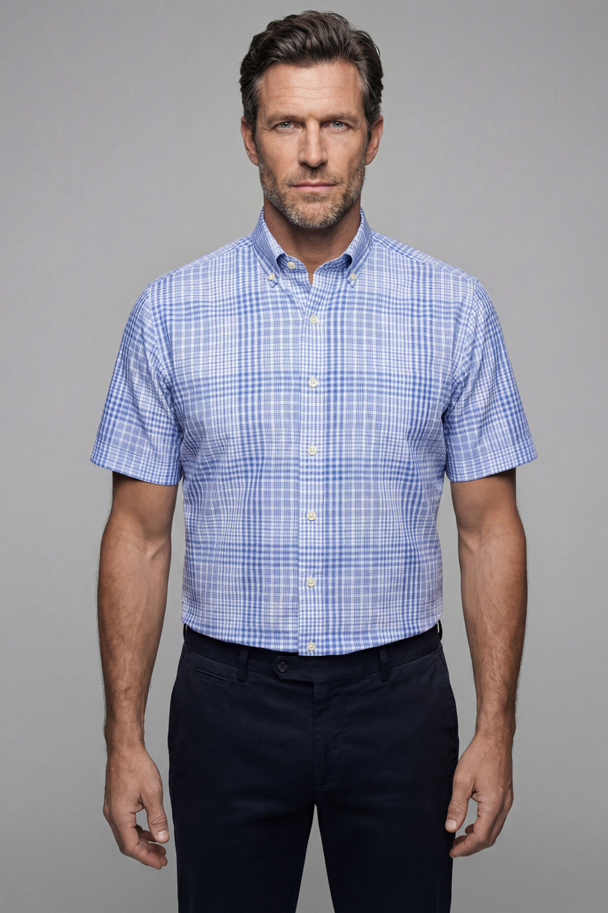 Erkek Regular Fit Kısa Kol Paşa Yaka Tek Cep Pamuk Mavi Gömlek