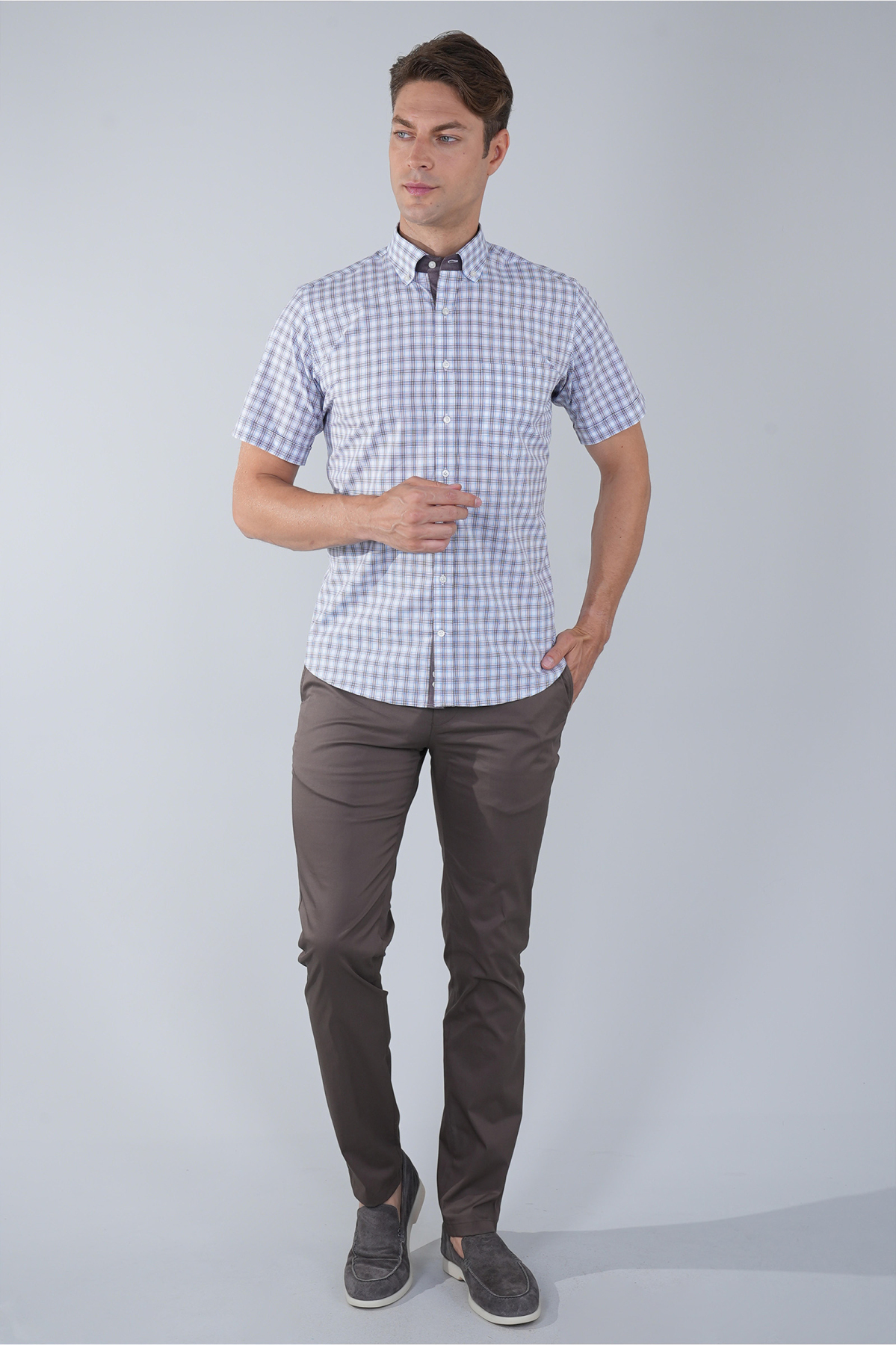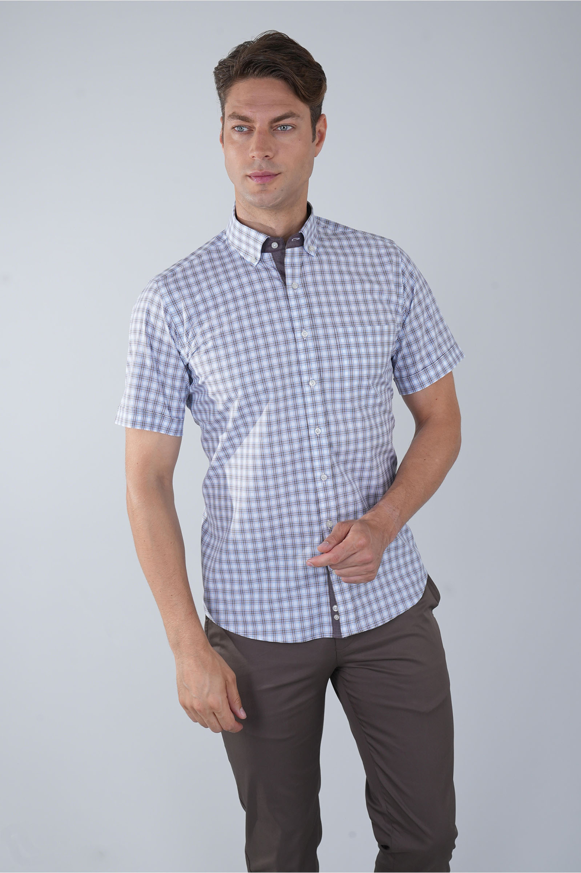 Kısa Kol Paşa Yaka Tek Cep Pamuk Kahve Erkek Gömlek