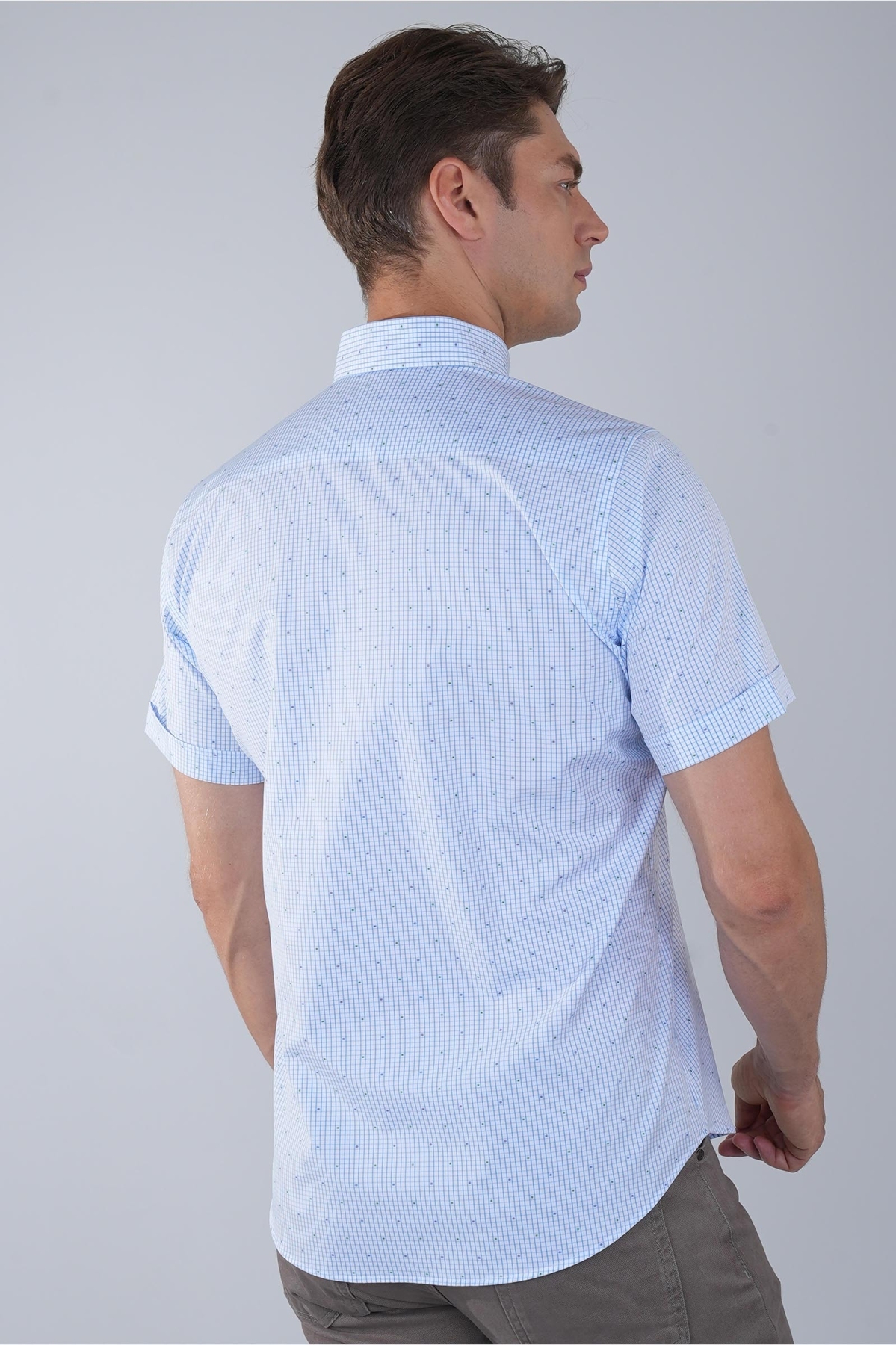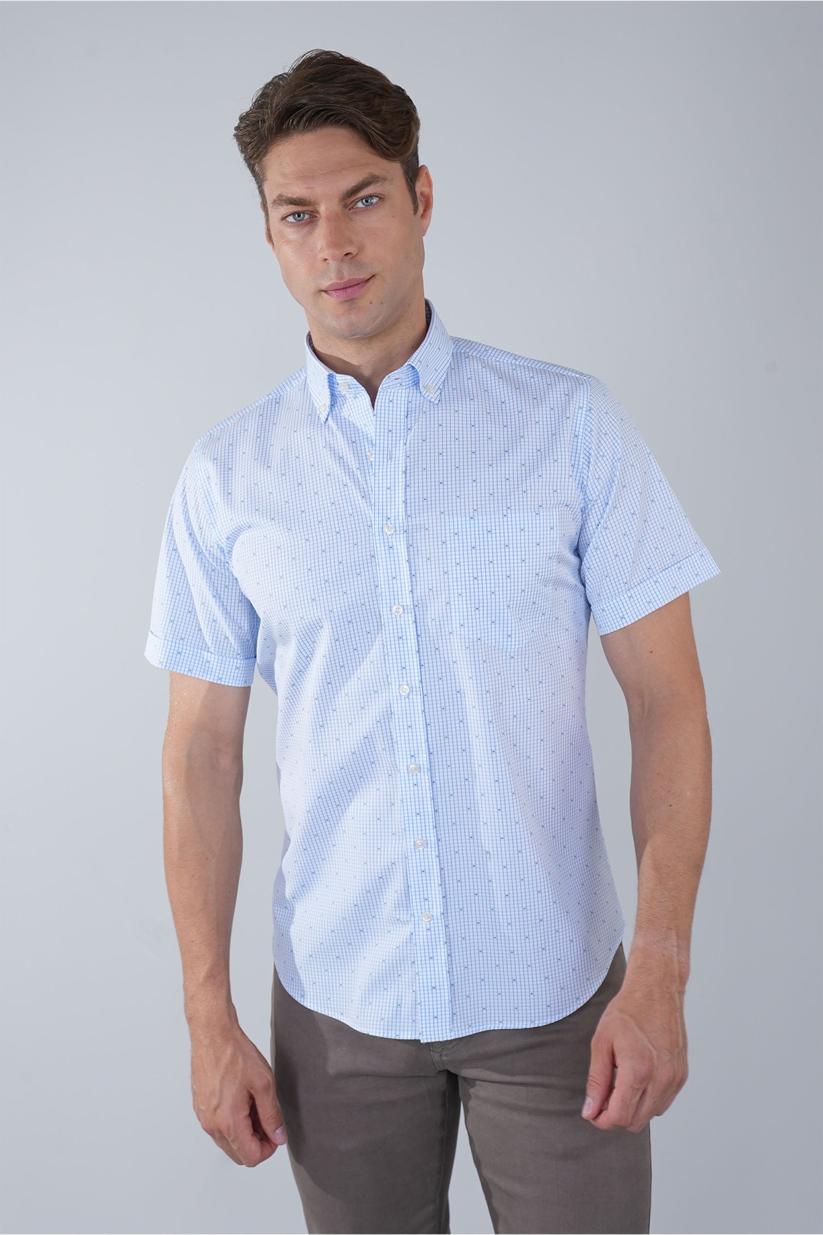 Kısa Kol Paşa Yaka Tek Cep Pamuk Mavi Erkek Gömlek Mavi