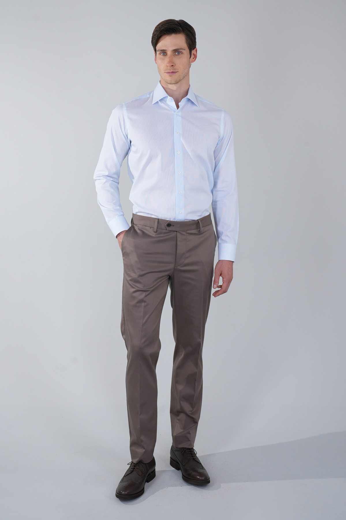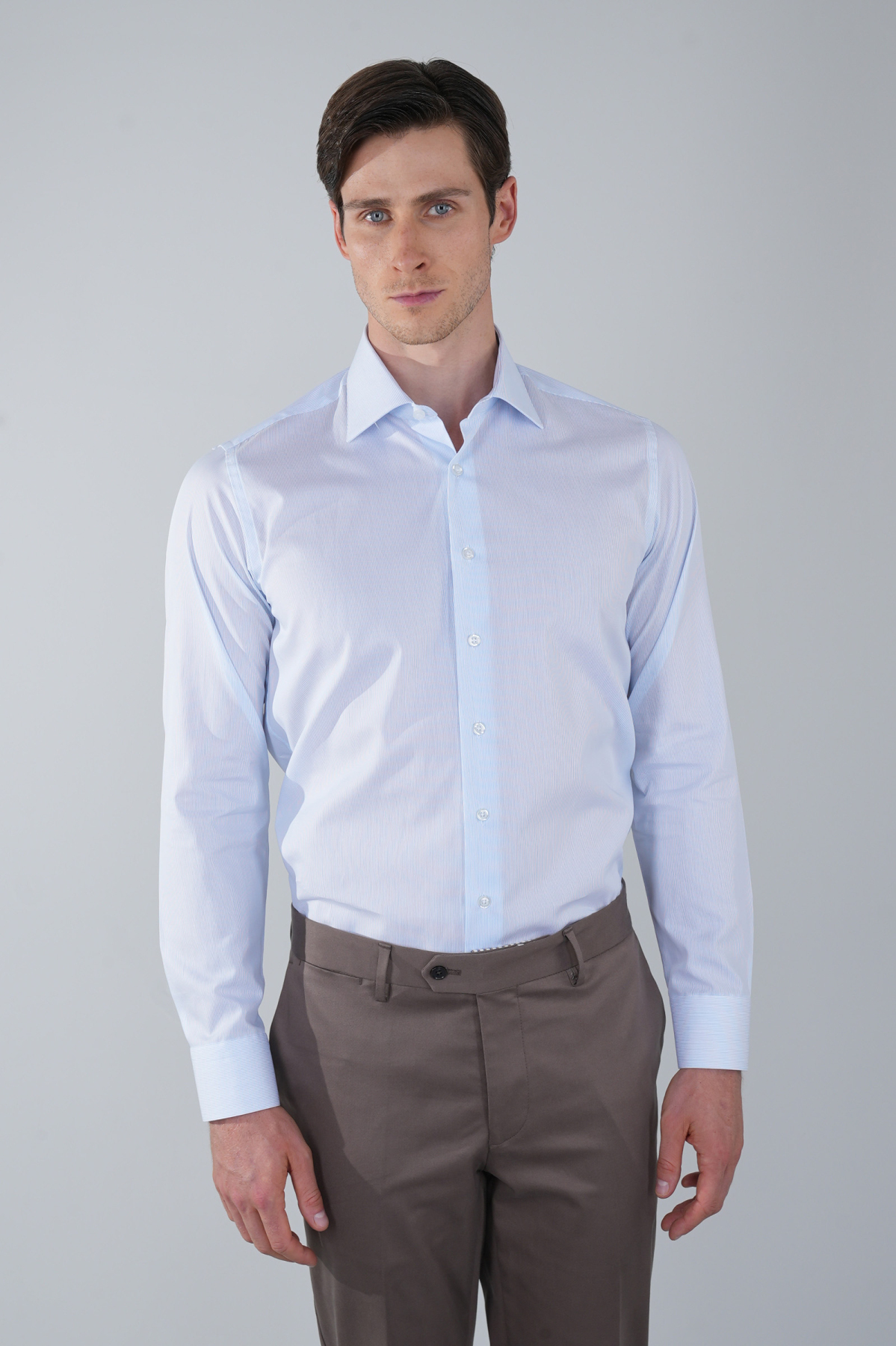 Regular Fit Cepsiz Pamuk Mavi Erkek Gömlek