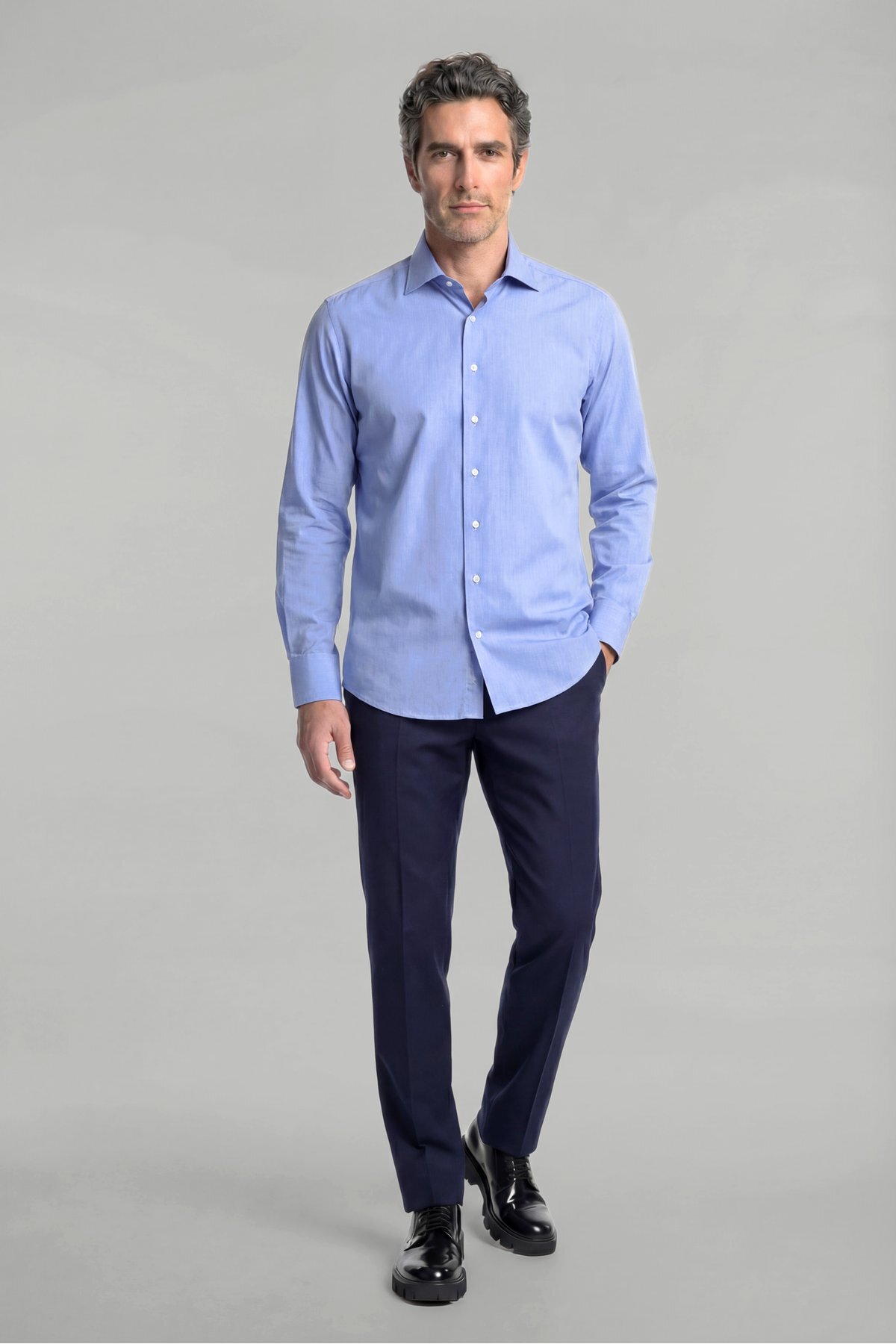Klasik Yaka Regular Fit Mavi Uzun Kol Cepsiz Erkek Gömlek