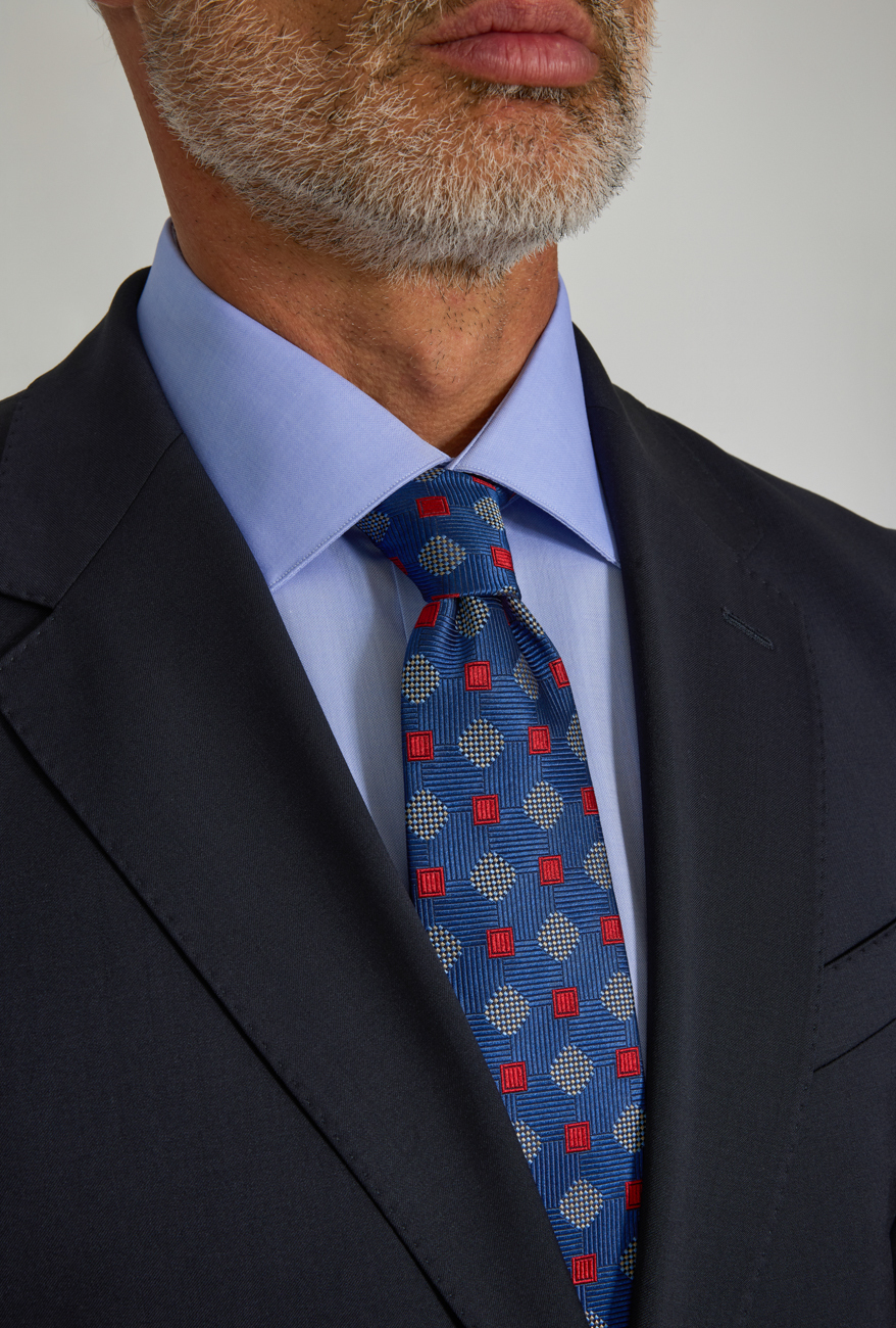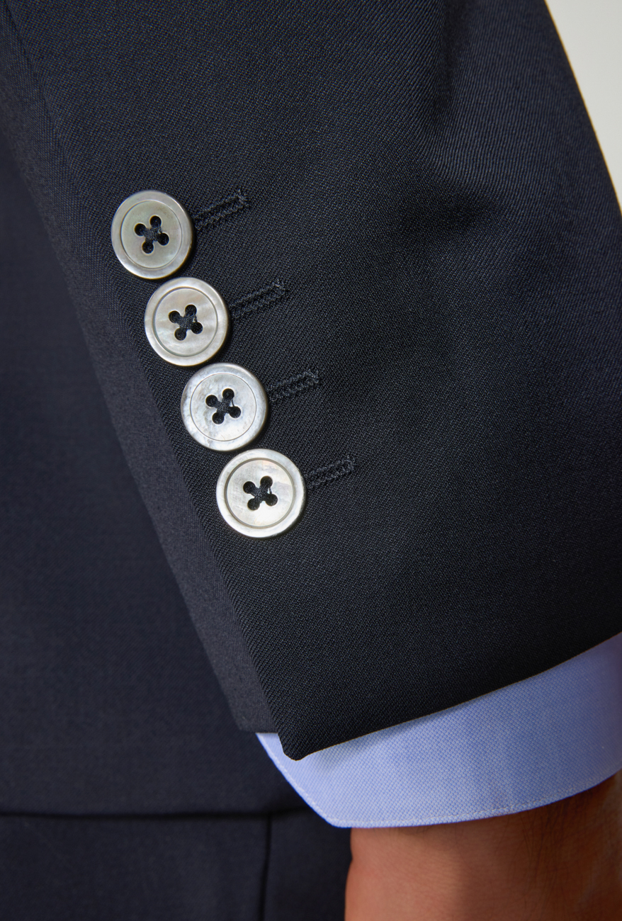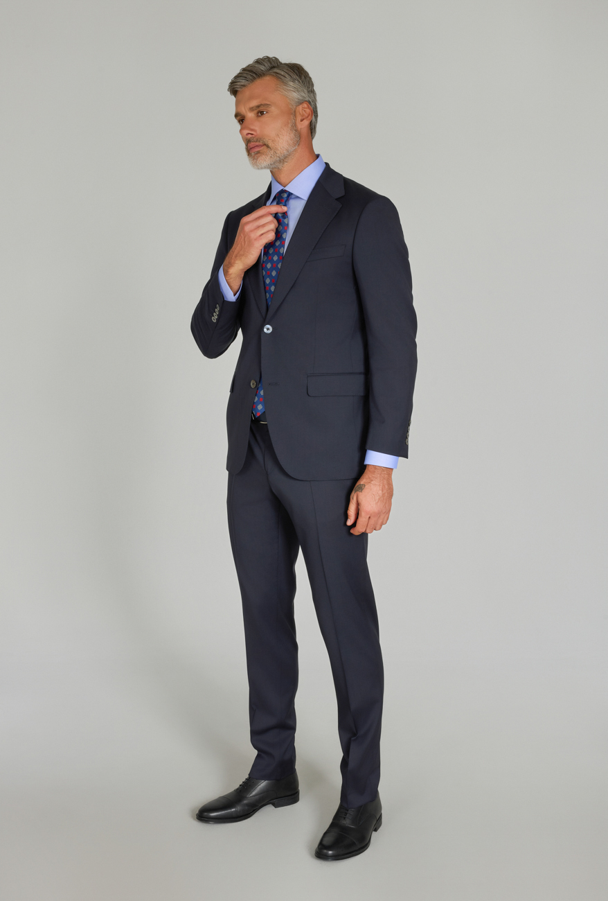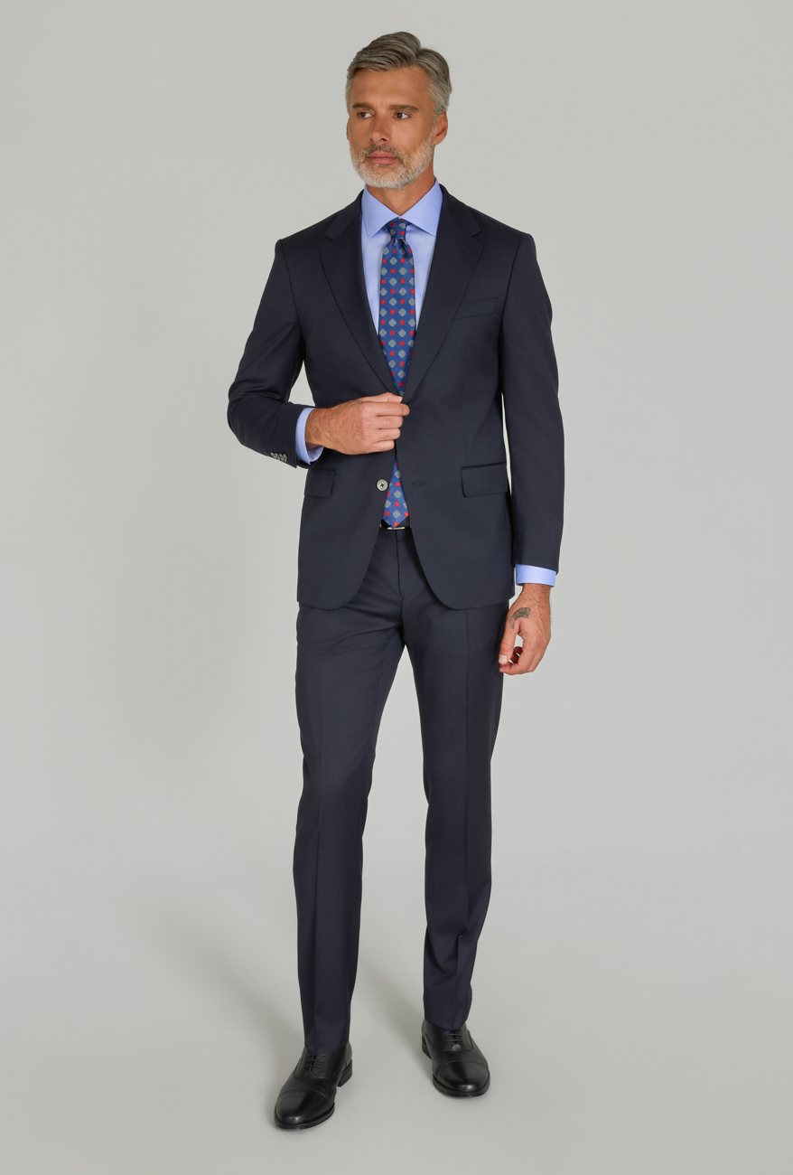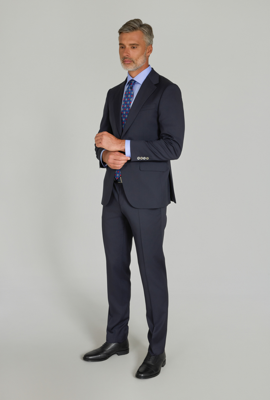 Lacivert Dokuma Mono Yaka Çift Yırtmaçlı 6 Drop Yün Klasik Takım Elbise