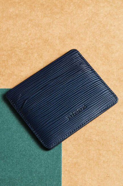 Lacivert Lazer Desenli Deri Erkek Kartvizit