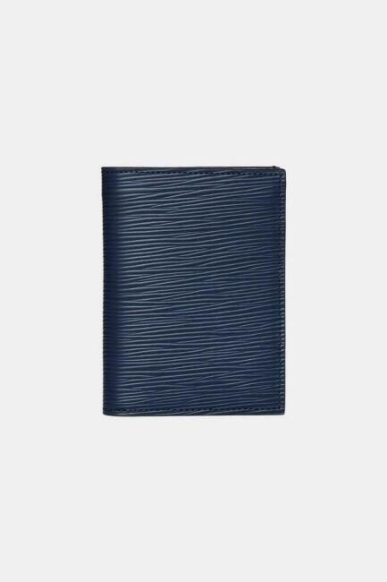 Lacivert Lazer Desenli Gerçek Deri Erkek Kartvizit