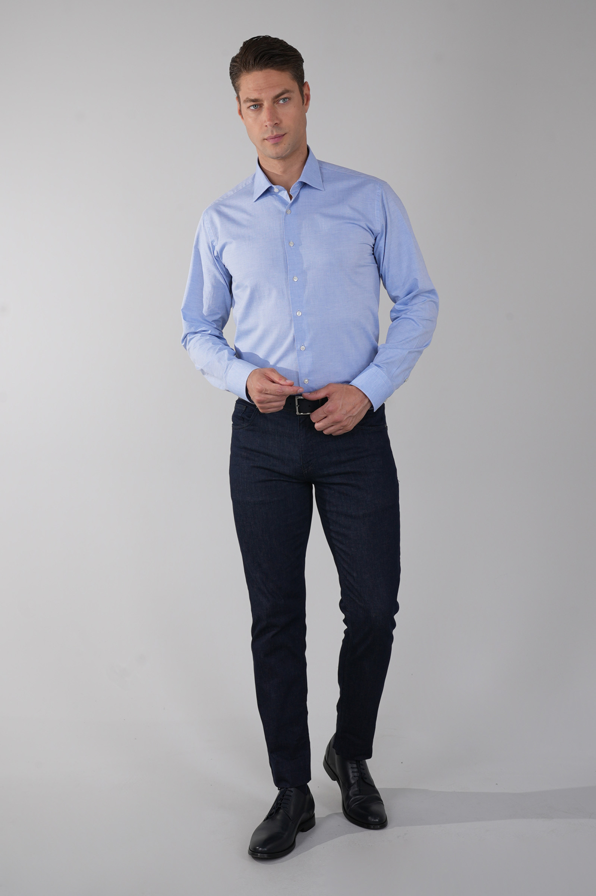 Mavi Monti Uzun Kol Klasik Yaka Cepsiz Erkek Gömlek
