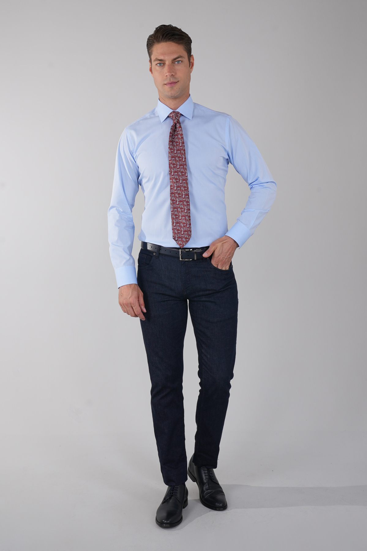 MODEL ÖLÇÜLERİ: Boy: 189 cm Göğüs: 100 cm Bel: 86 cm Kalça: 96 cm Model M Beden Giymektedir.