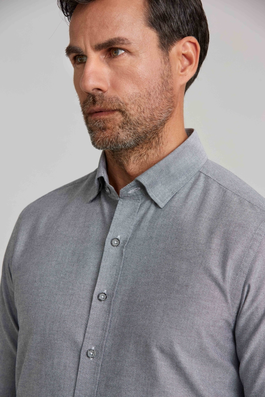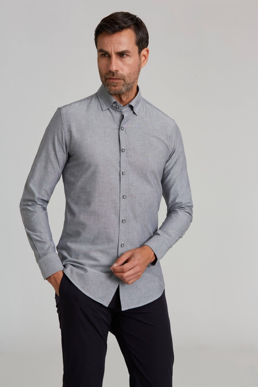 Modern Fit Gizli Düğmeli Gri Spor Erkek Gömlek