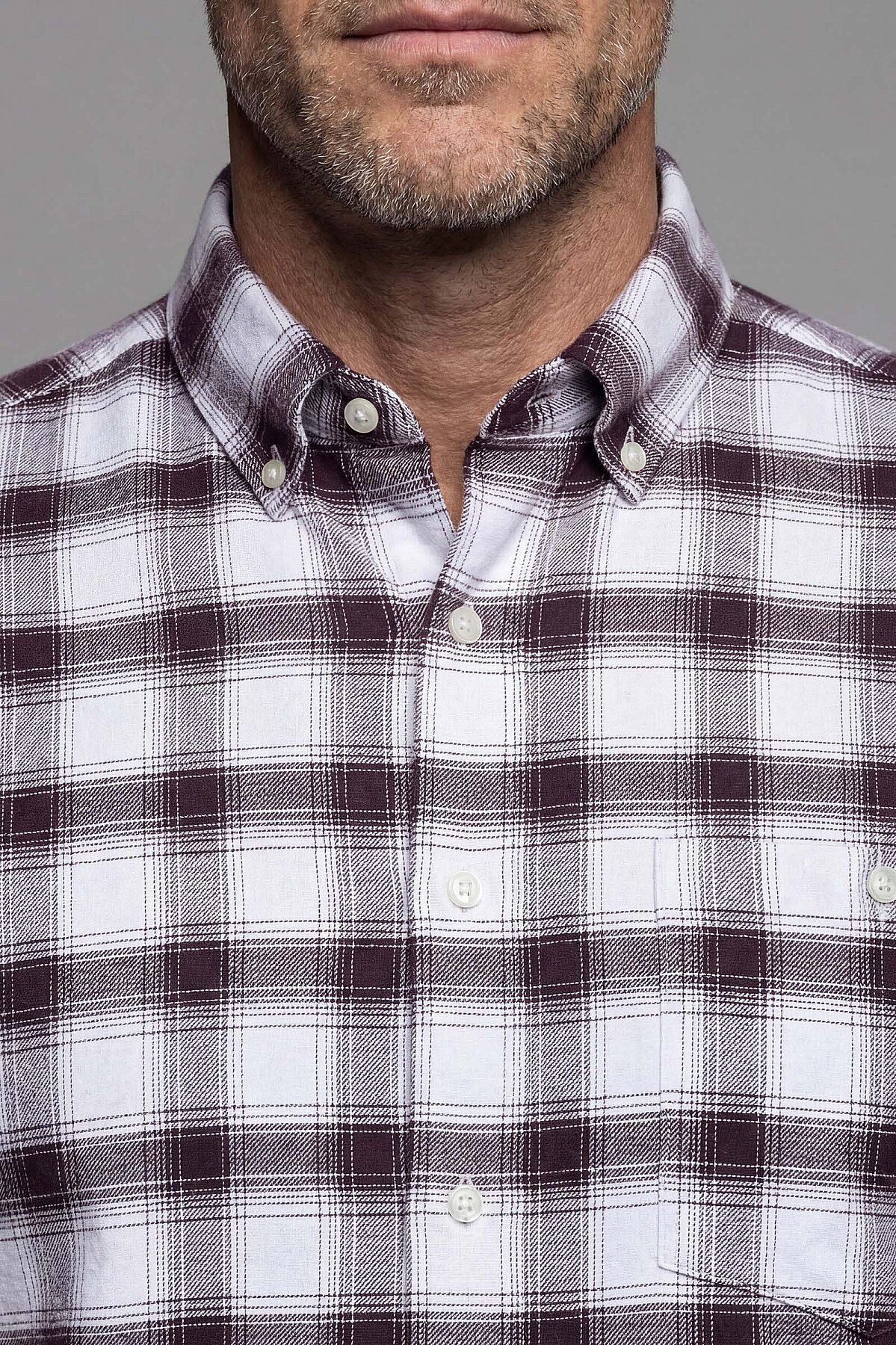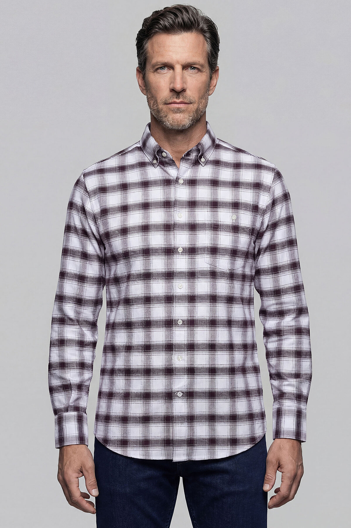Modern Fit İtalyan Yaka Tek Cep Düğmeli Ekose Kışlık Pamuk Bordo Erkek Gömlek