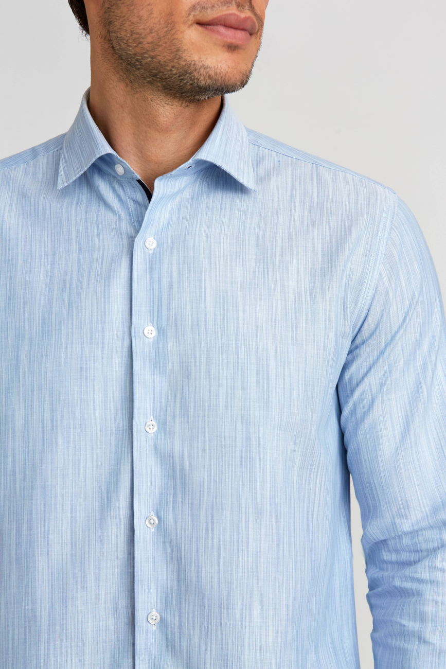 Modern Fit Klasik Dik Yaka Mavi Erkek Gömlek