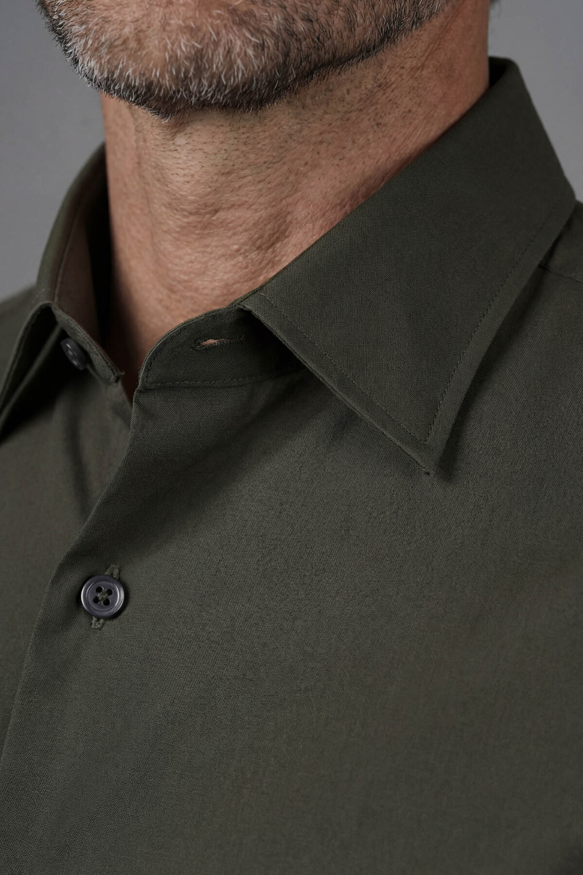 Modern Fit Klasik Yaka Haki Cepsiz Erkek Gömlek