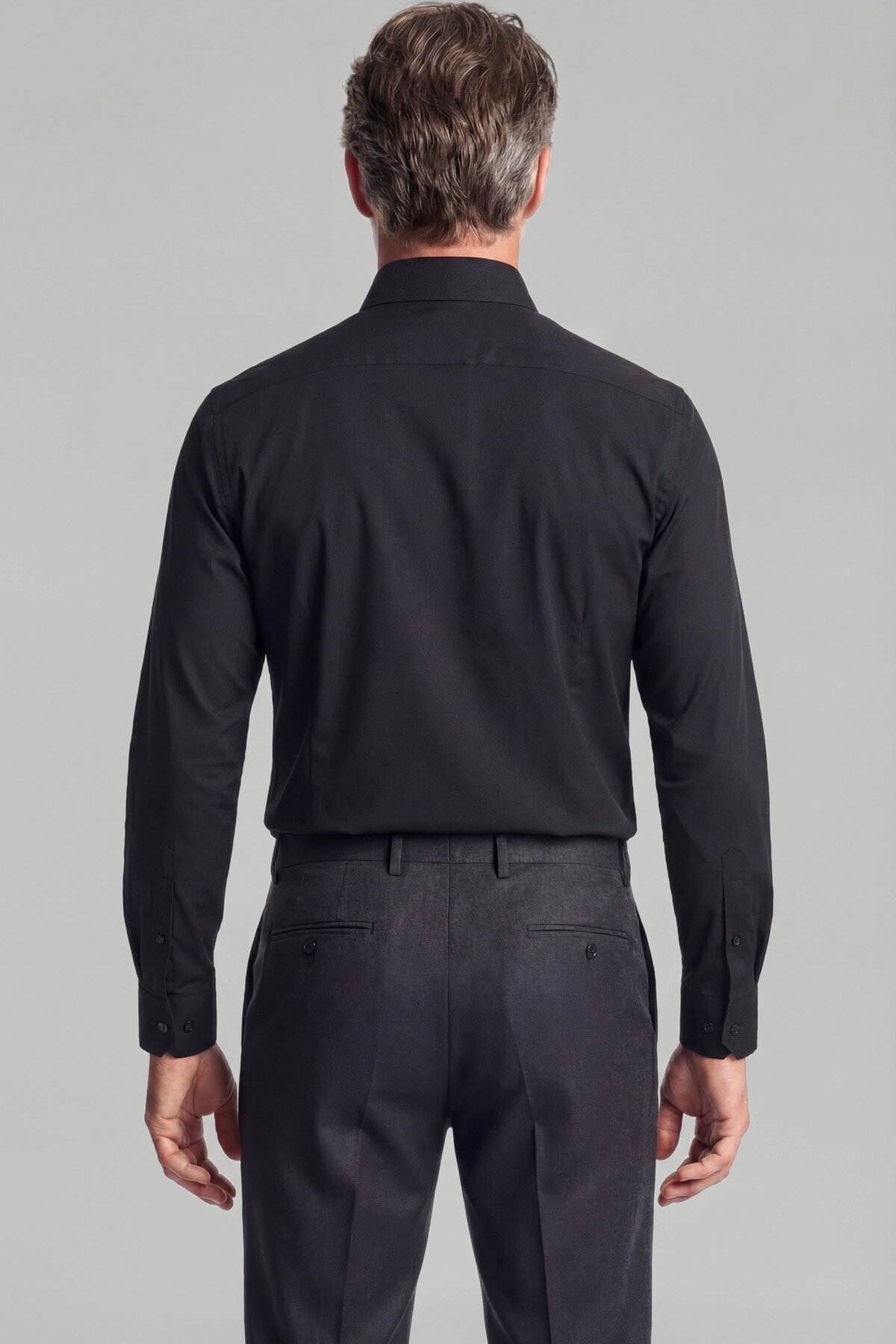 Modern Fit Klasik Yaka Siyah Cepsiz Erkek Gömlek