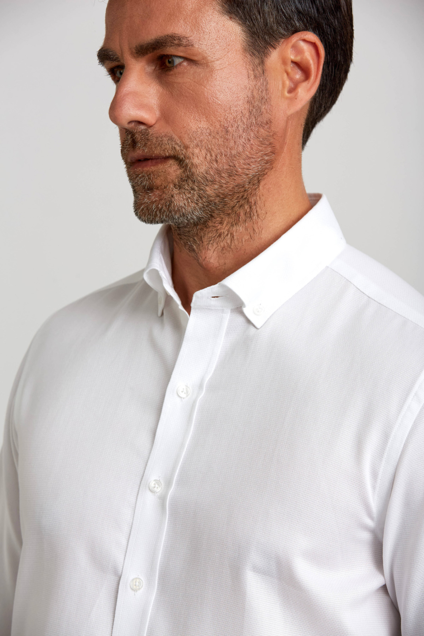 Modern Fit Paşa Yaka Düğmeli Beyaz Spor Erkek Gömlek