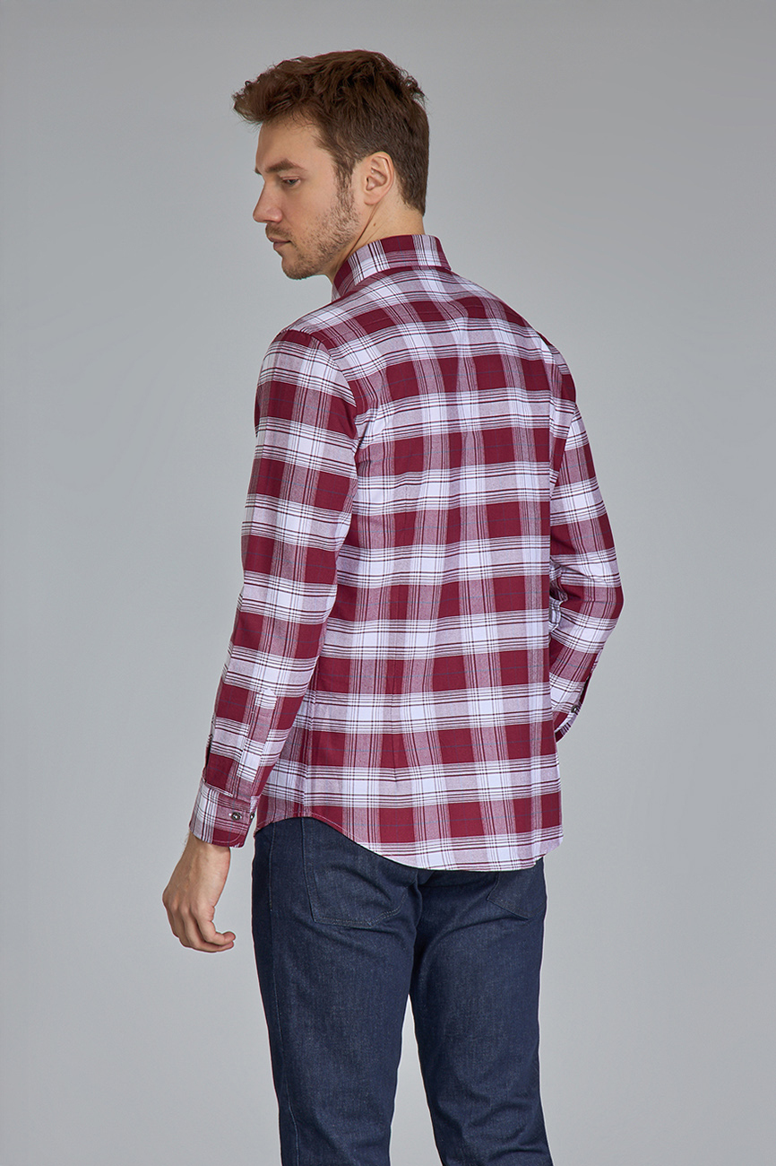 Modern Fit Paşa Yaka Ekose Bordo Spor Erkek Gömlek