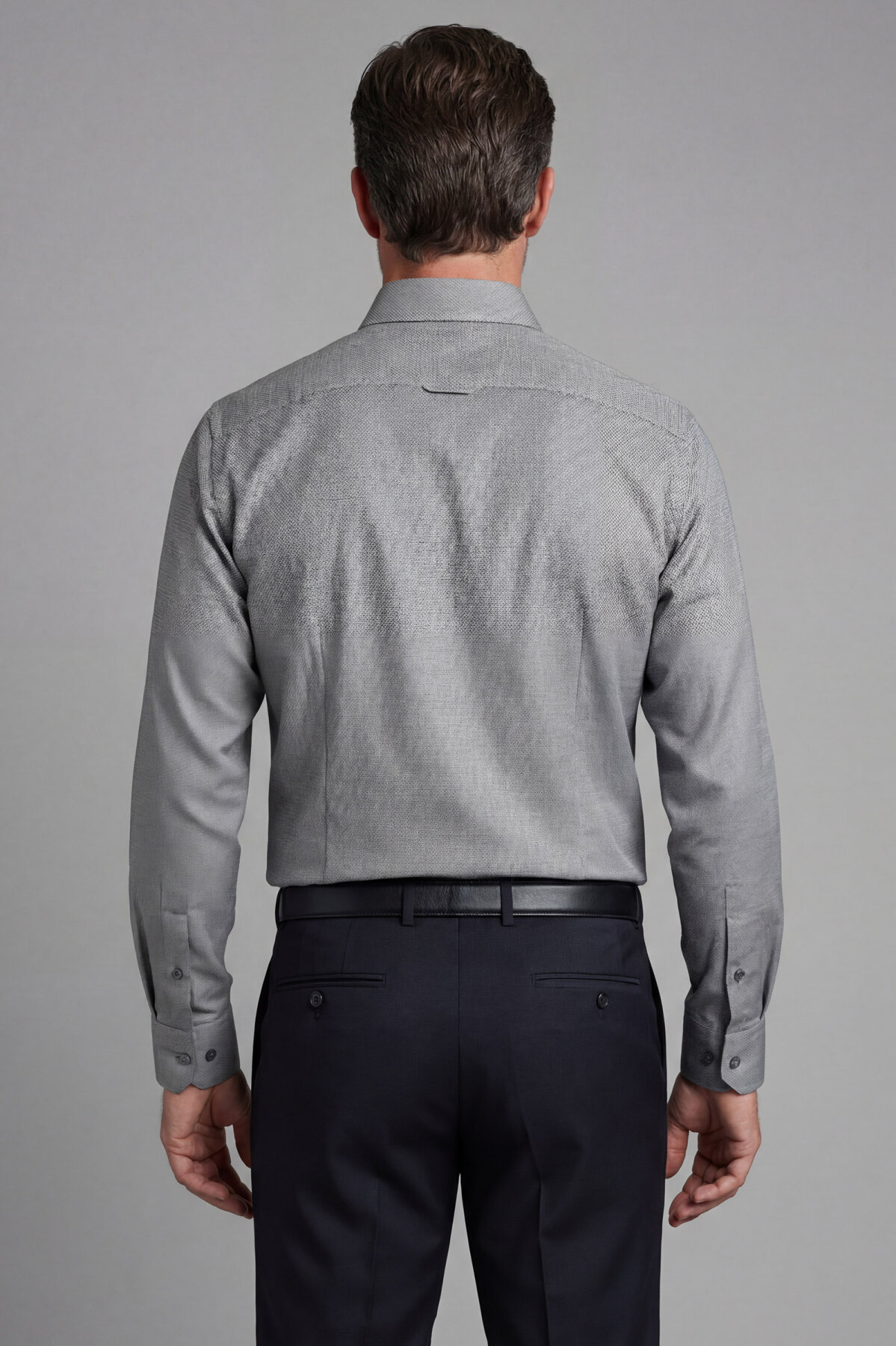 Modern Fit Yarım İtalyan Yaka Pamuk Antrasit Erkek Gömlek