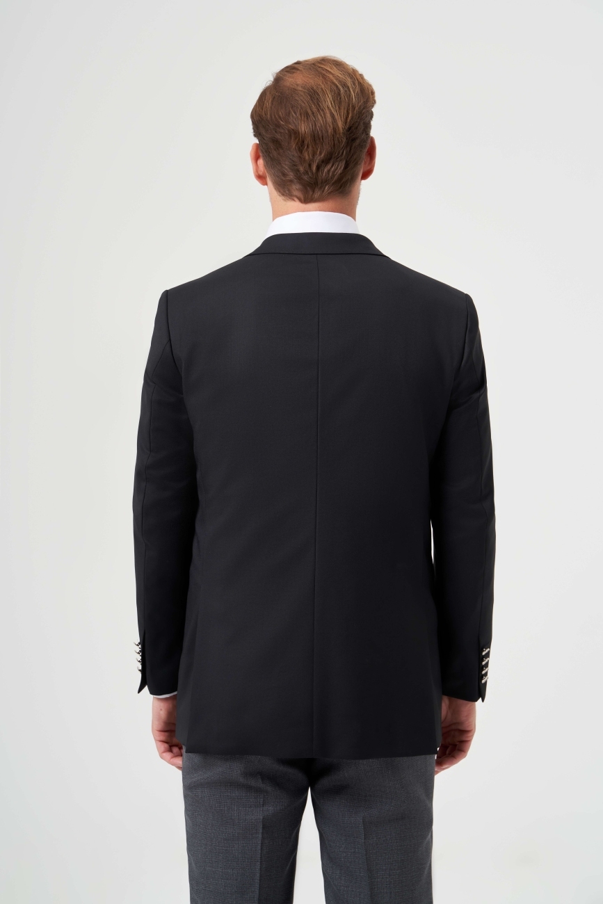 Mono Yaka Drop 6 Çift Yırtmaçlı Siyah Erkek Yün Blazer Ceket