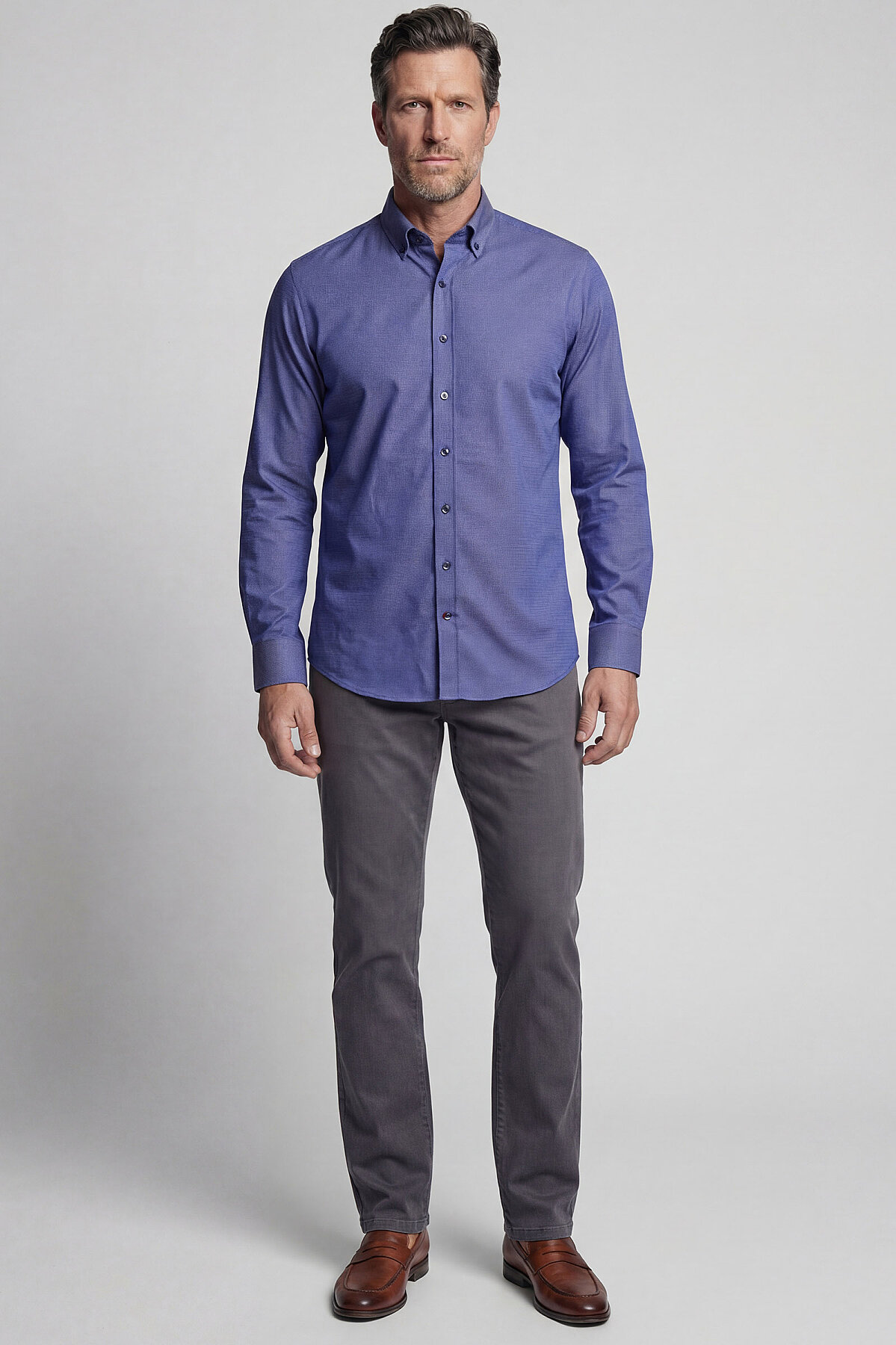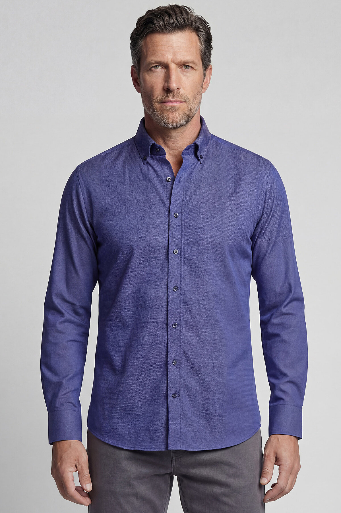 Regular Fit Paşa Yaka Pamuk Lacivert Erkek Gömlek