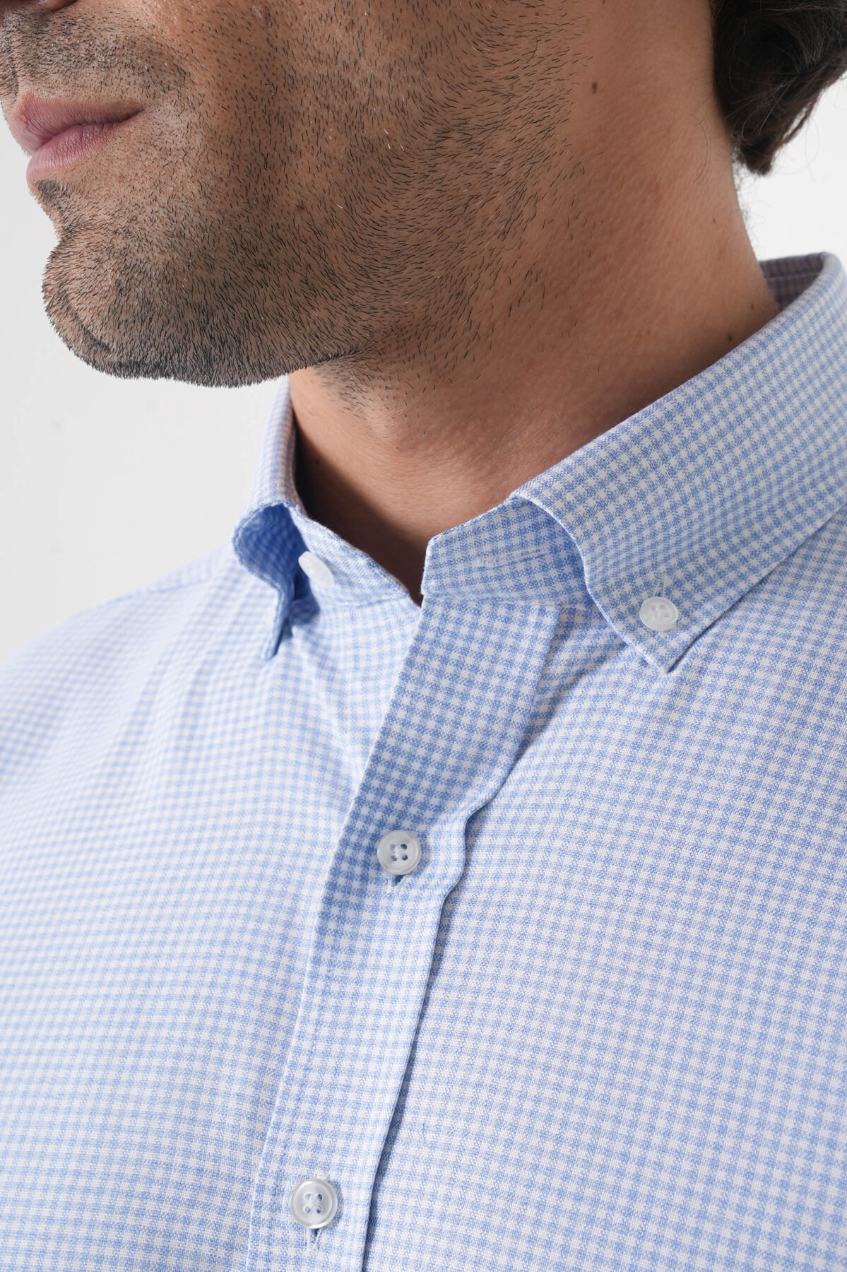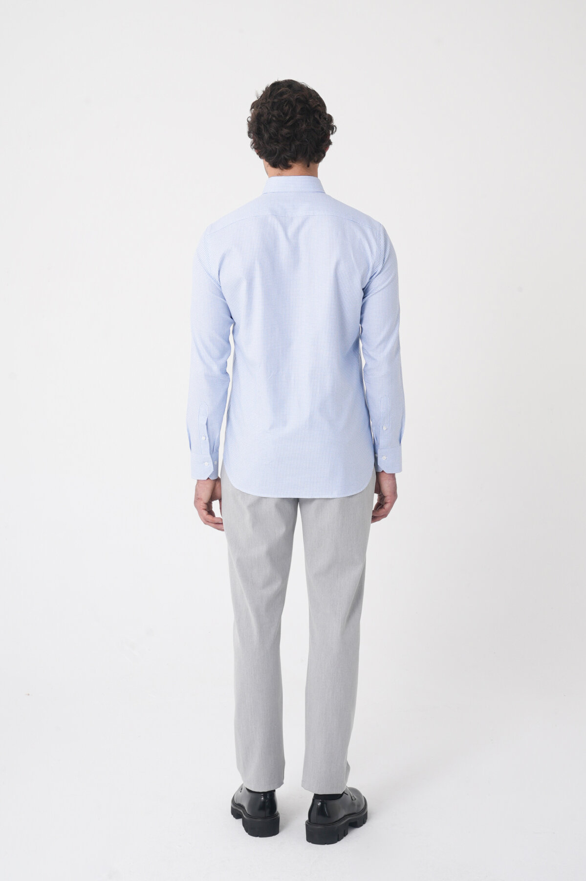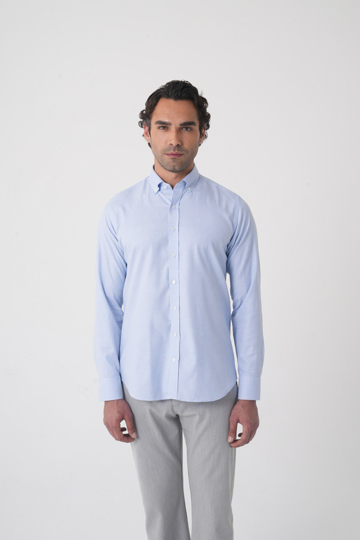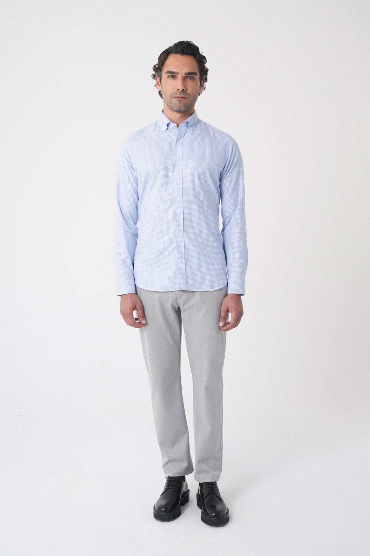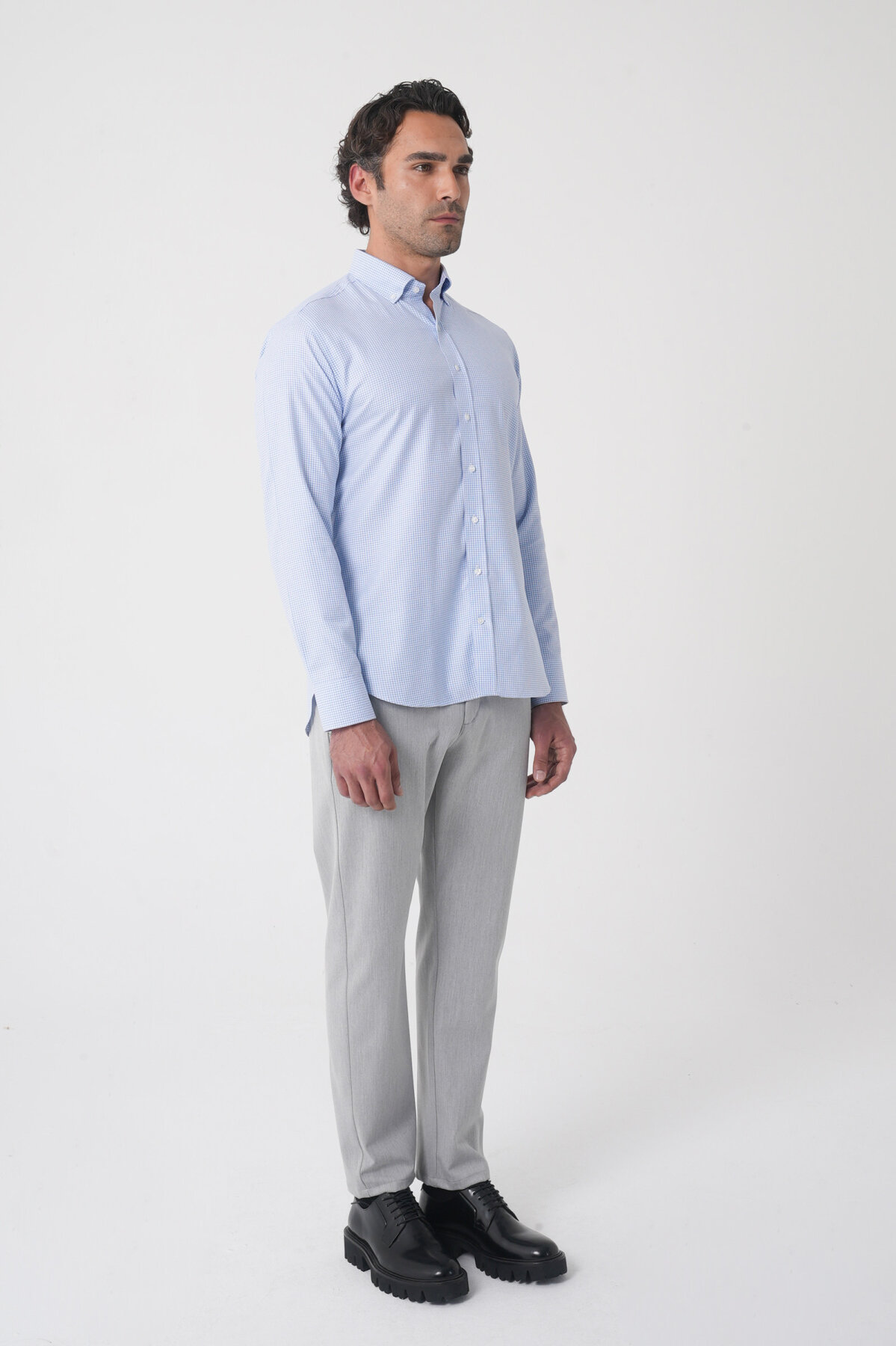 Regular Fit Paşa Yaka Pamuk Mavi Erkek Gömlek