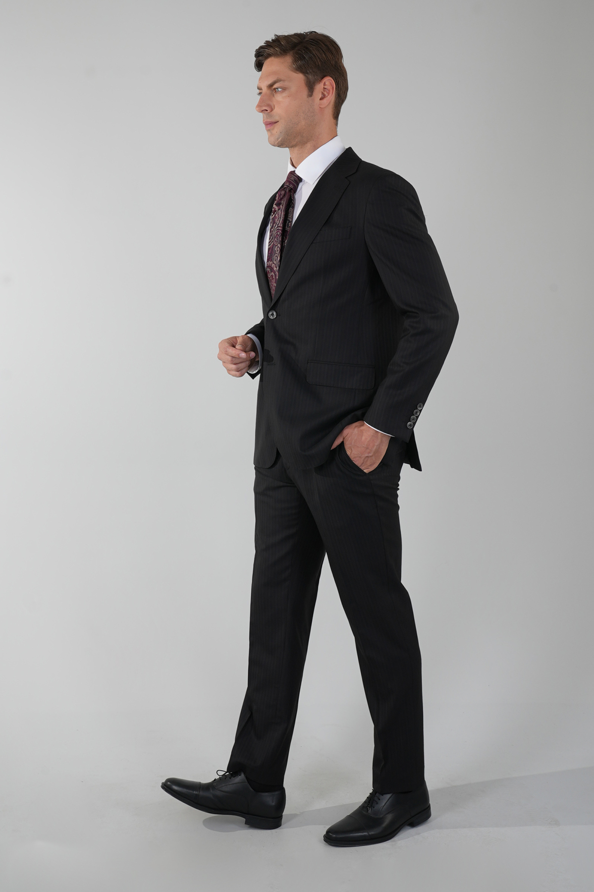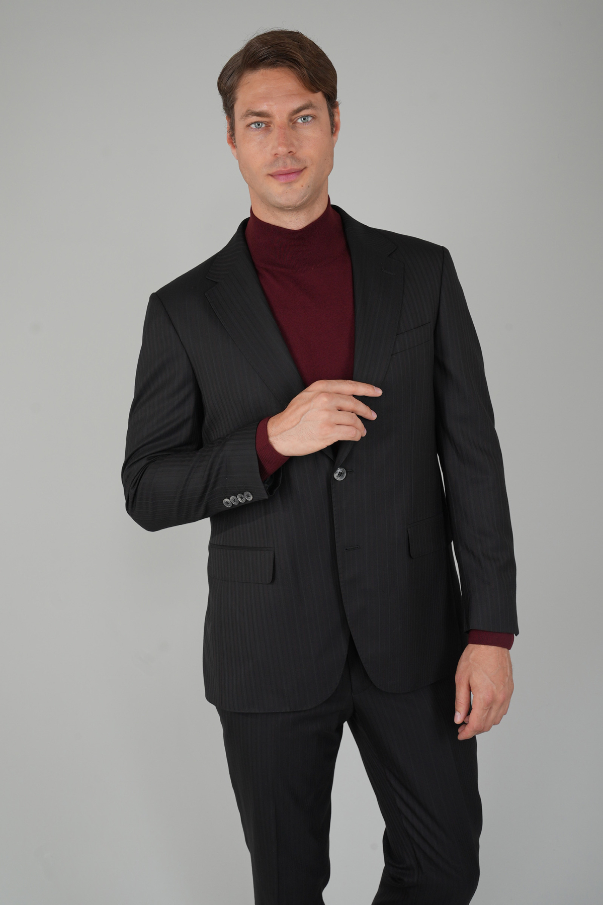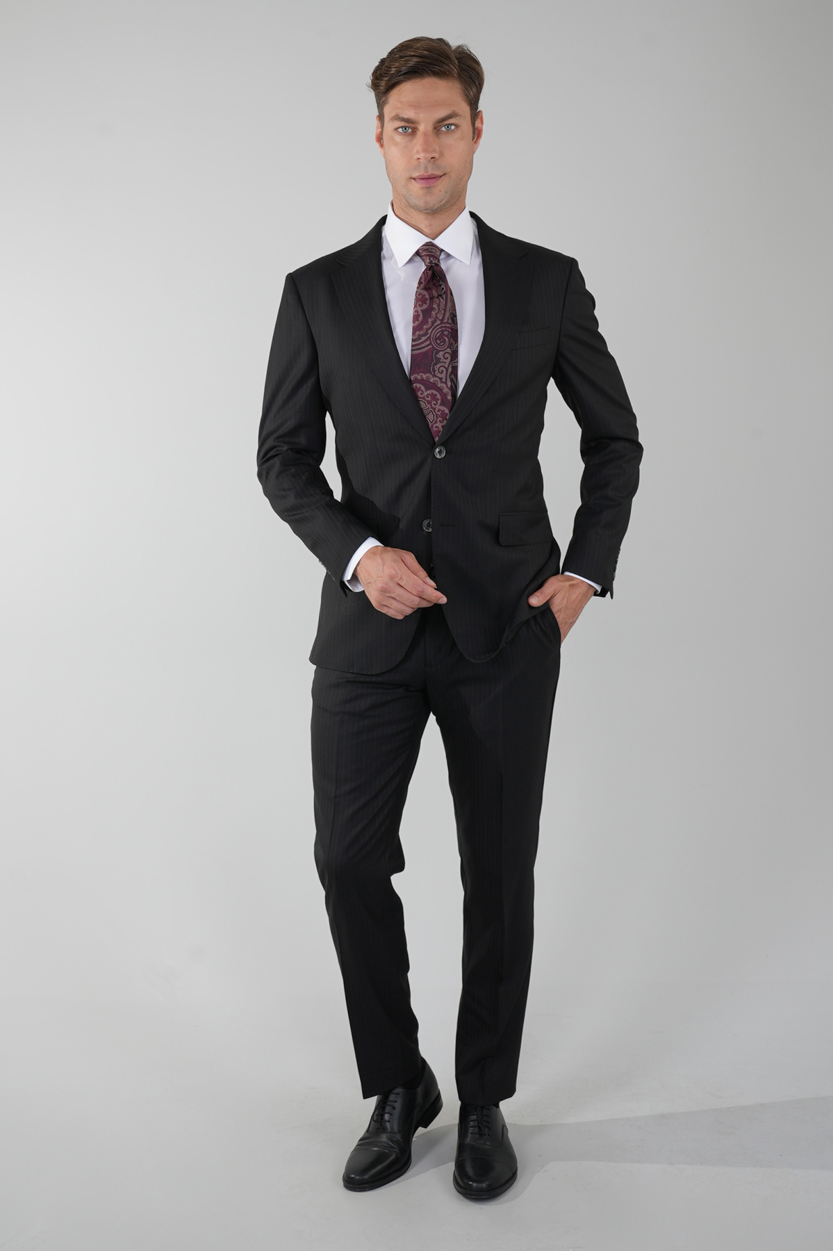 Siyah Mono Yaka Çift Yırtmaçlı 6 Drop Yün Takım Elbise