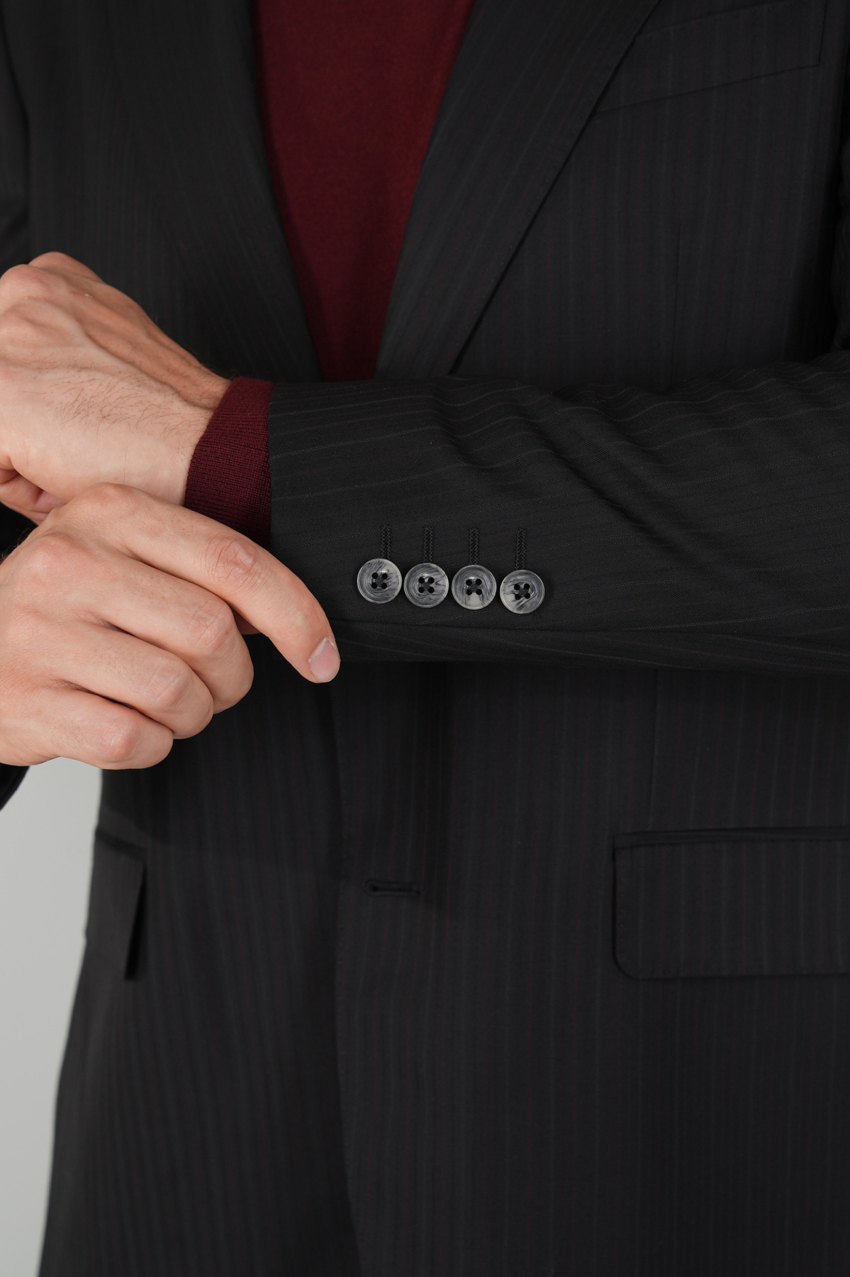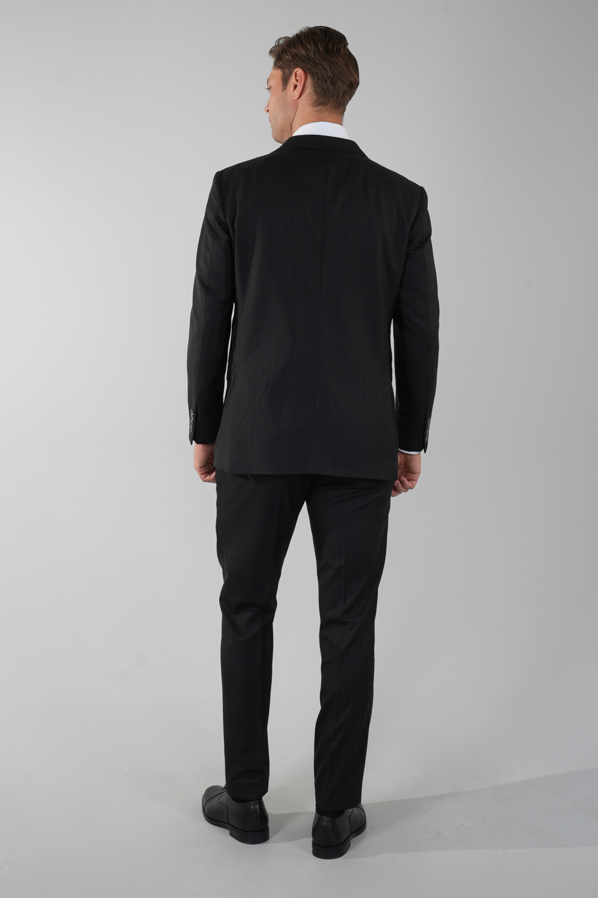 Siyah Mono Yaka Çift Yırtmaçlı 6 Drop Yün Takım Elbise Siyah
