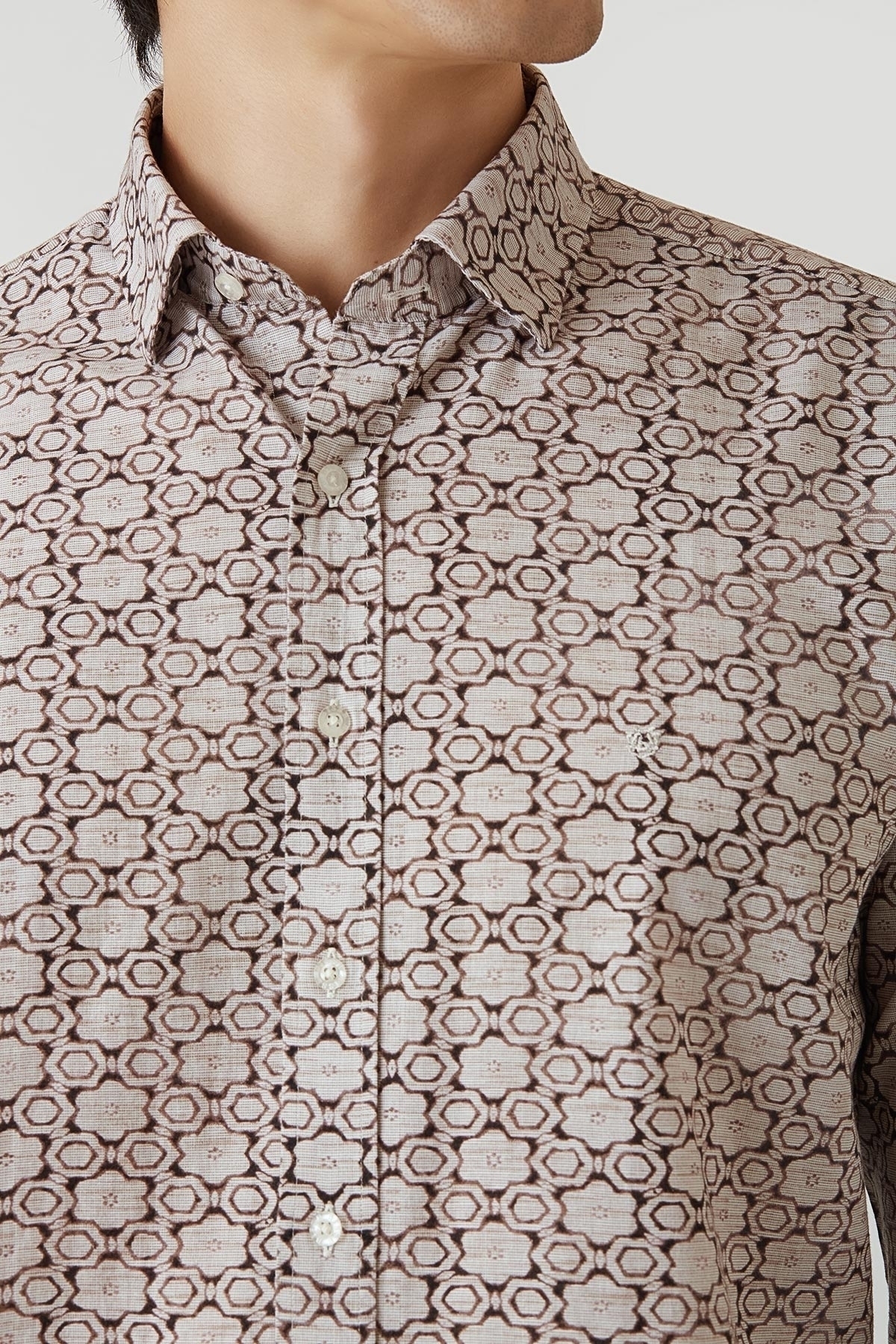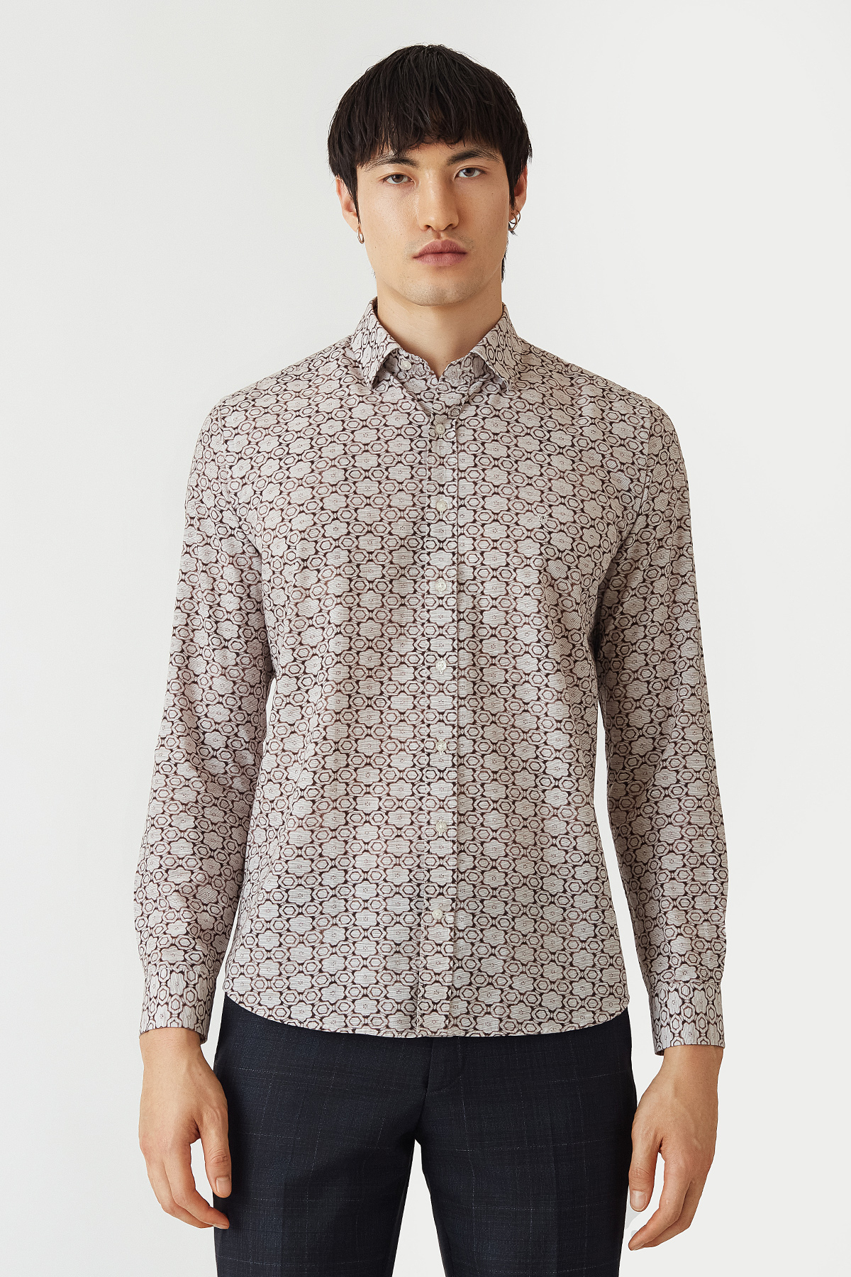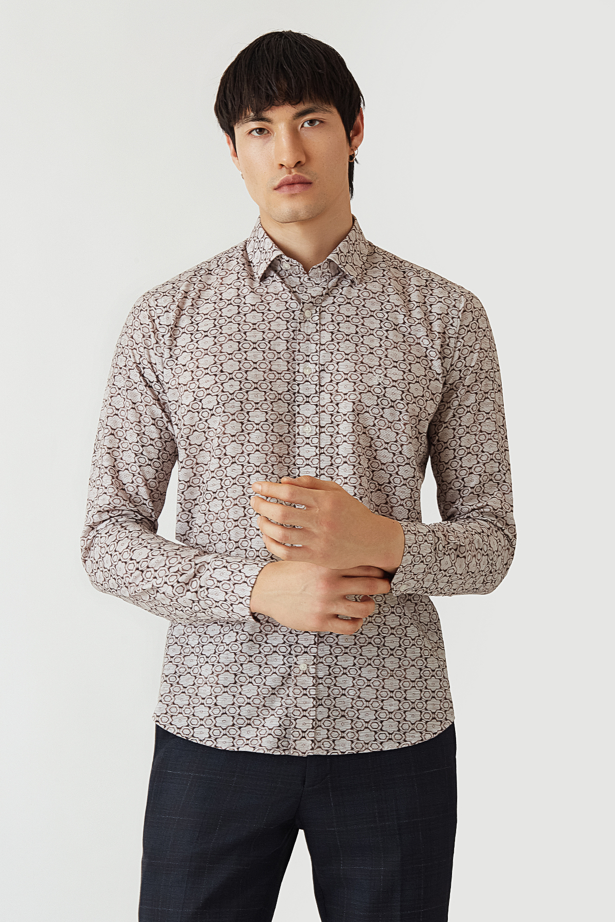 Regular Fit Bej Desenli Modern Spor Erkek Gömlek