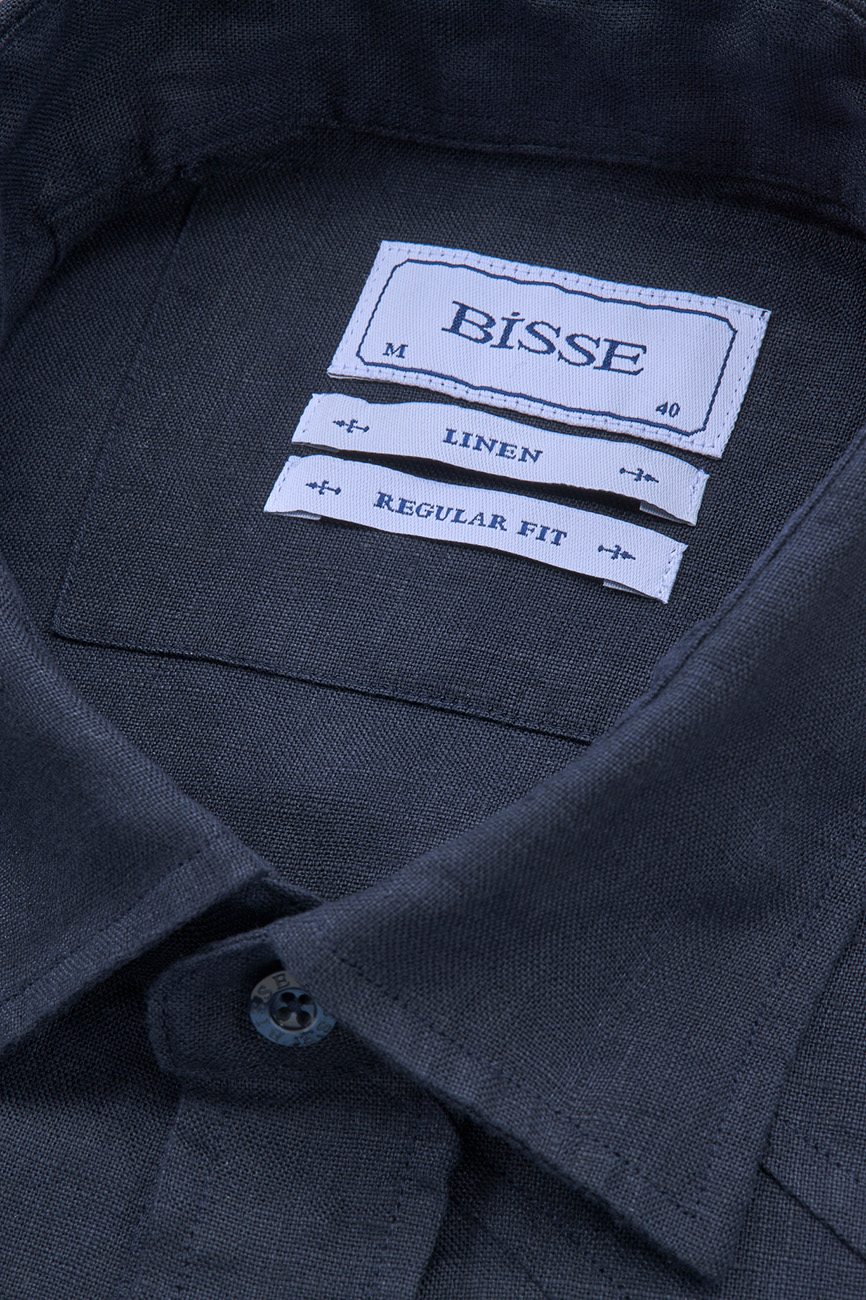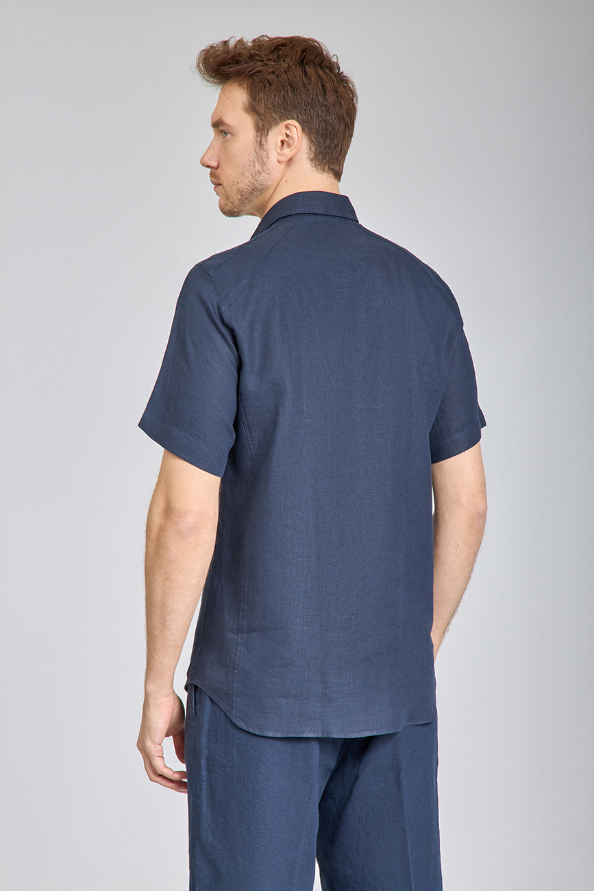 Regular Fit Birit Yaka Lacivert Keten Erkek Gömlek