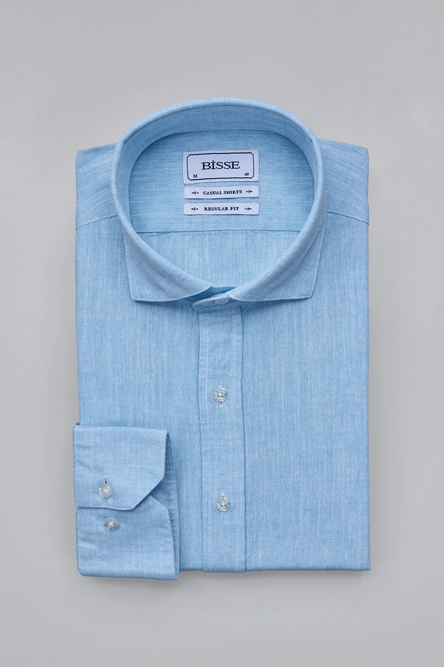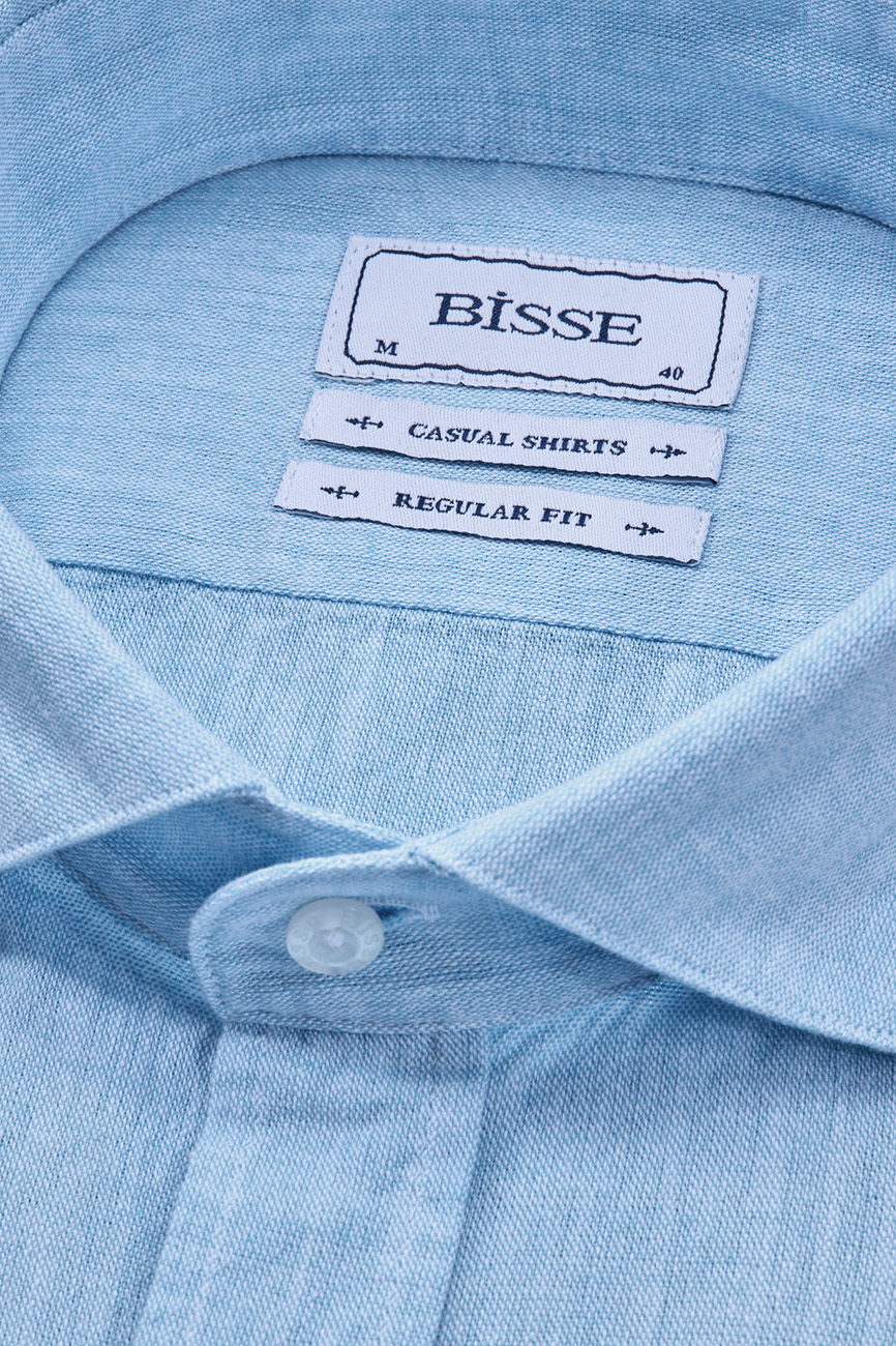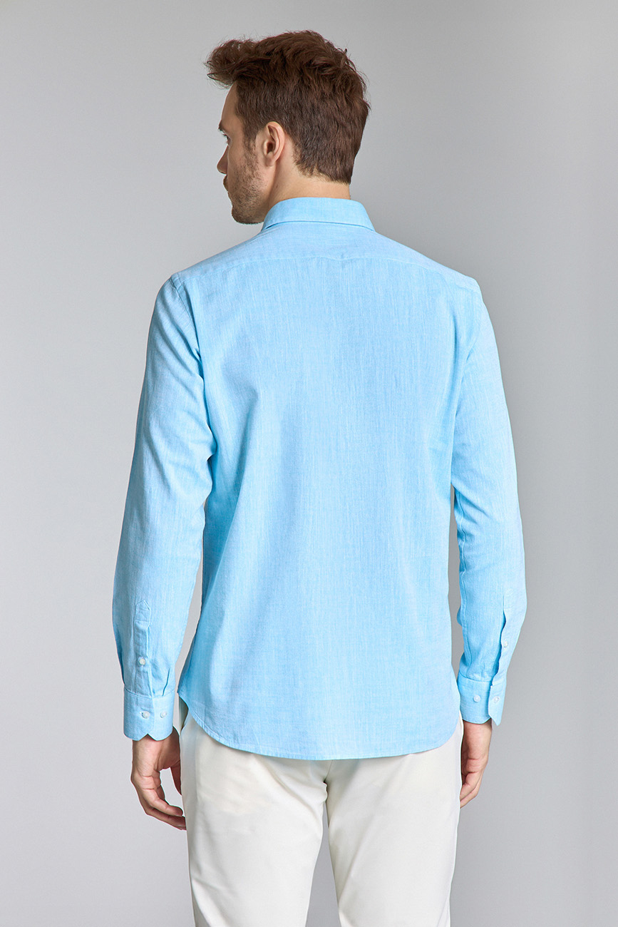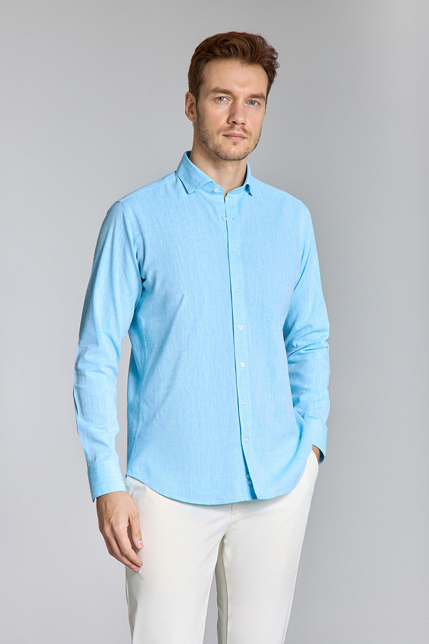 Regular Fit Birit Yaka Turkuaz Pamuk Keten Erkek Gömlek
