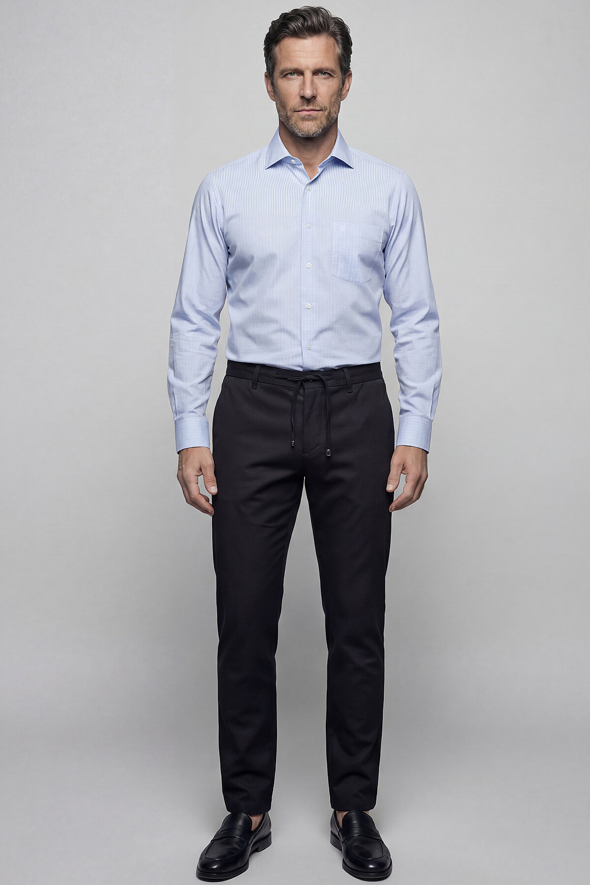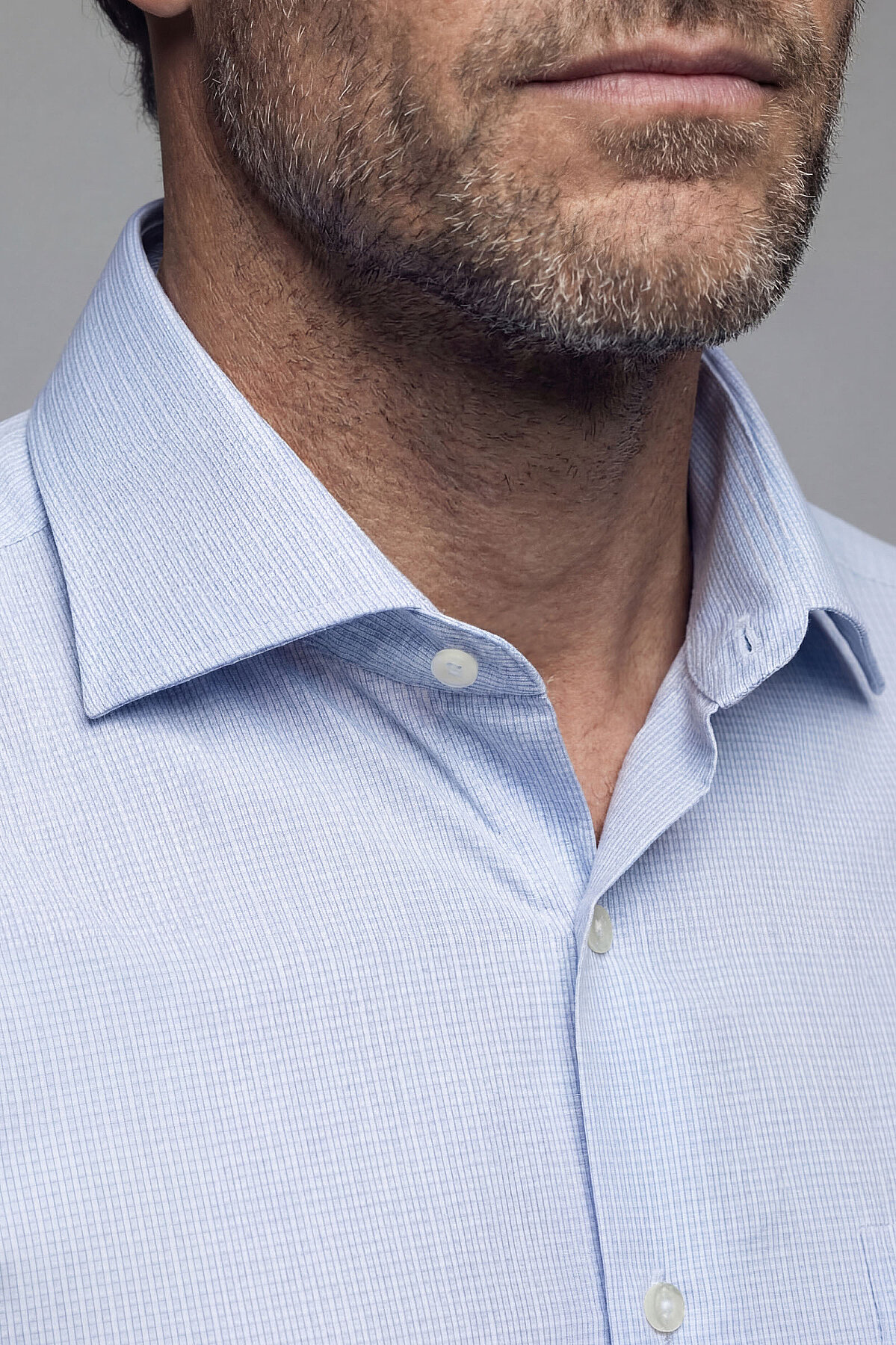 Regular Fit Bisse İtalyan Pamuk Mavi Erkek Gömlek