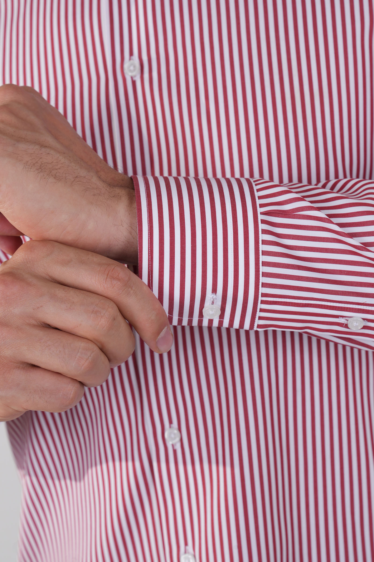 Regular Fit Cepsiz İtalyan Yaka Kırmızı Pamuk Erkek Gömlek