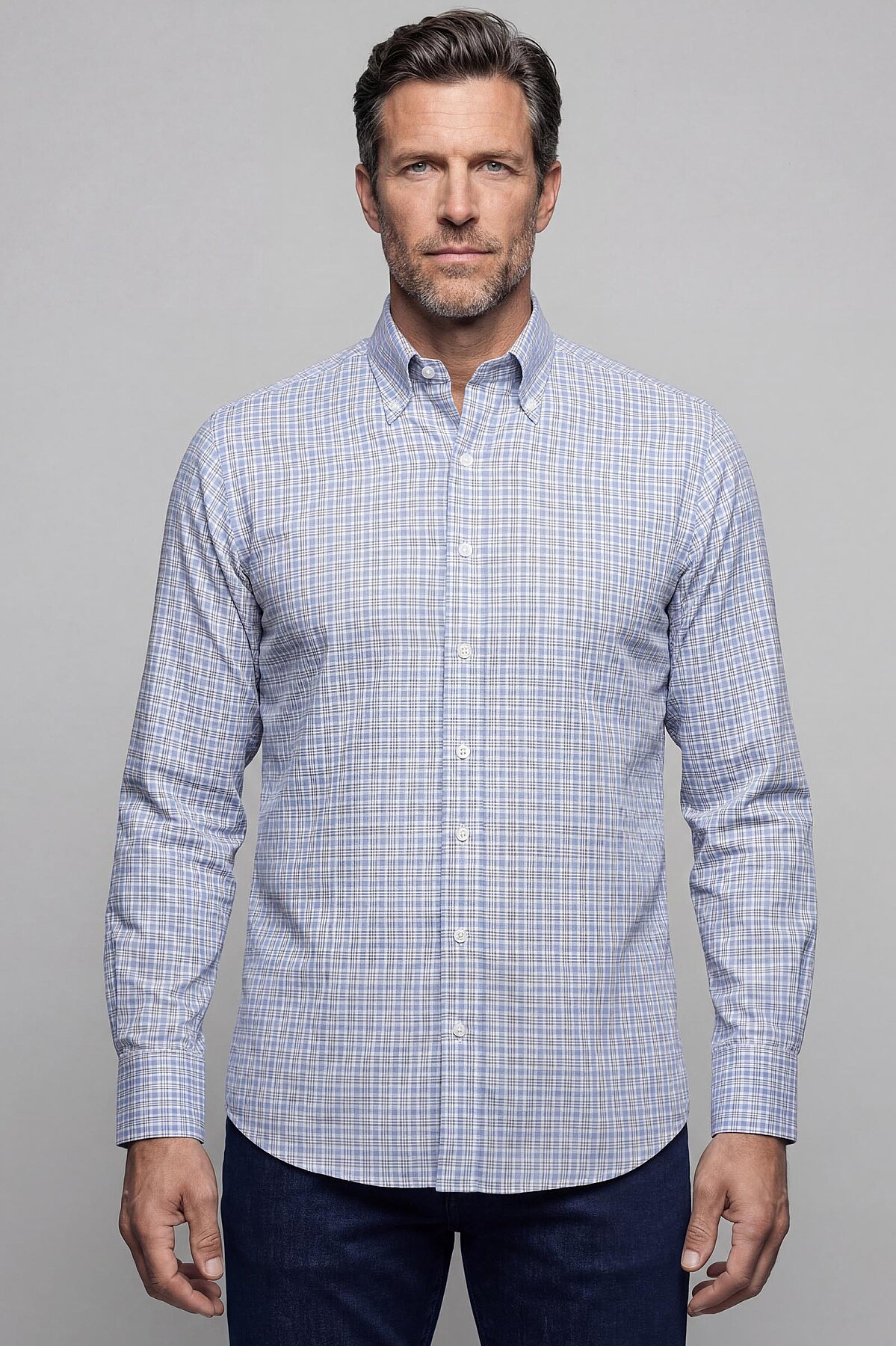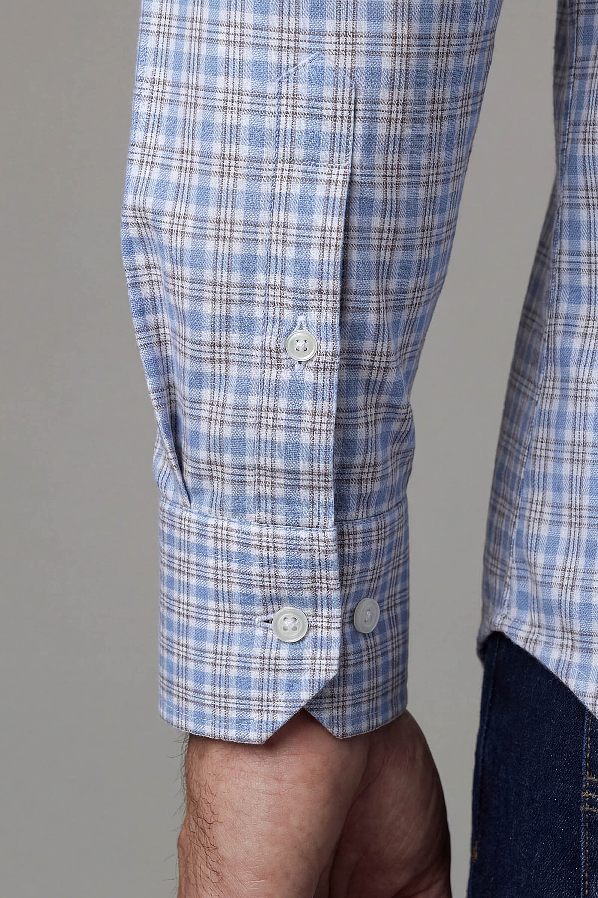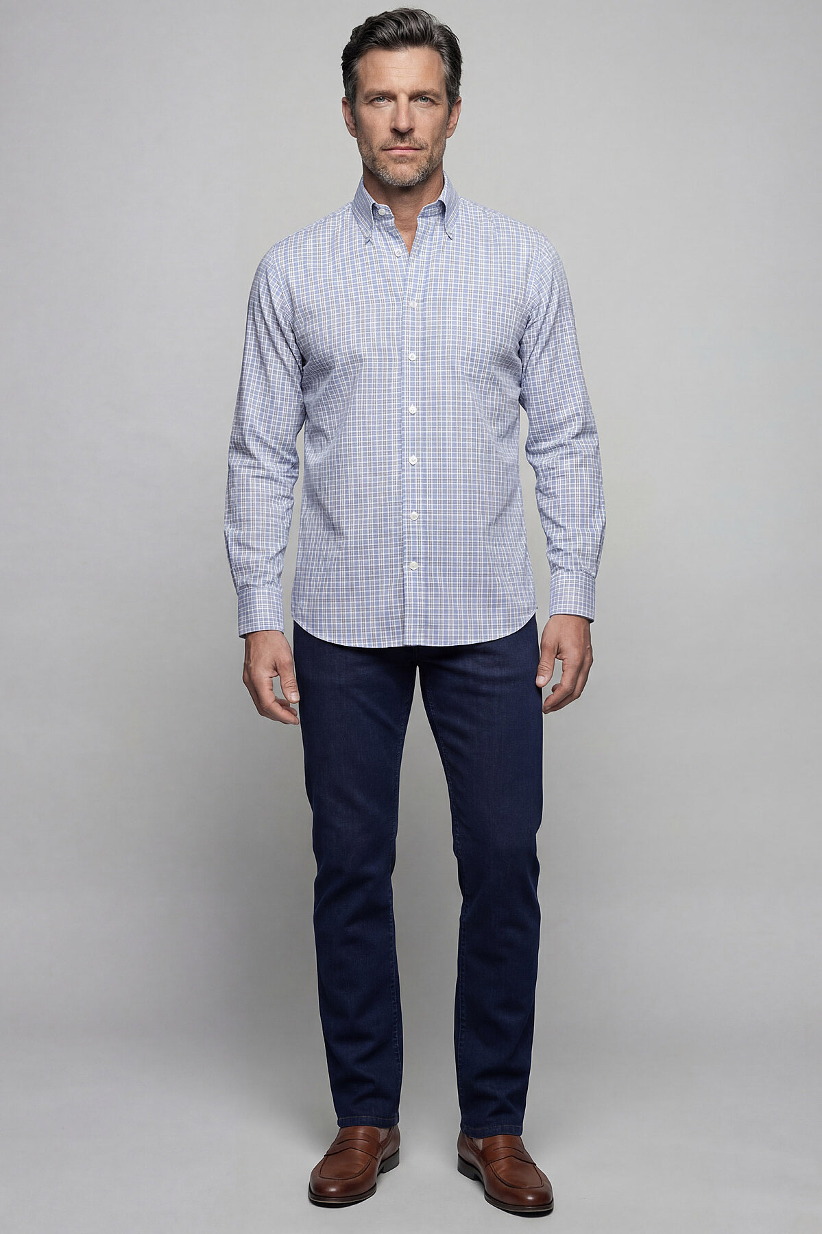 Regular Fit Cepsiz Pamuk Mavi Erkek Gömlek
