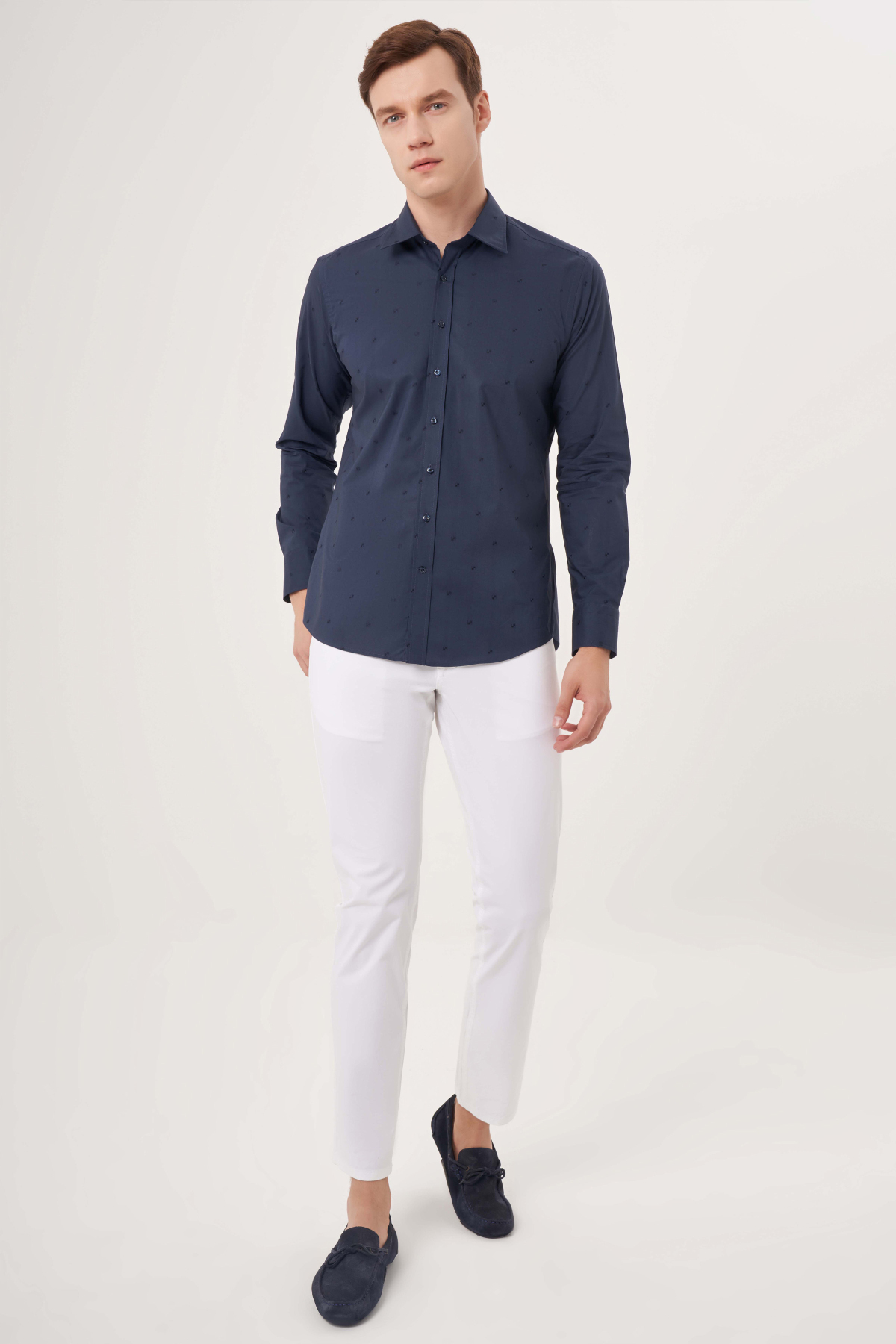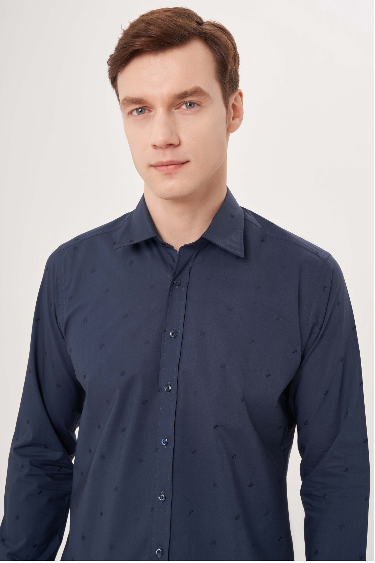 Regular Fit Düz Lacivert Spor Erkek Gömlek