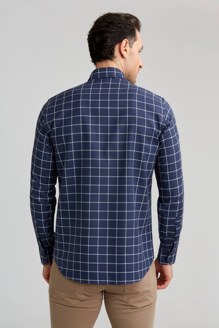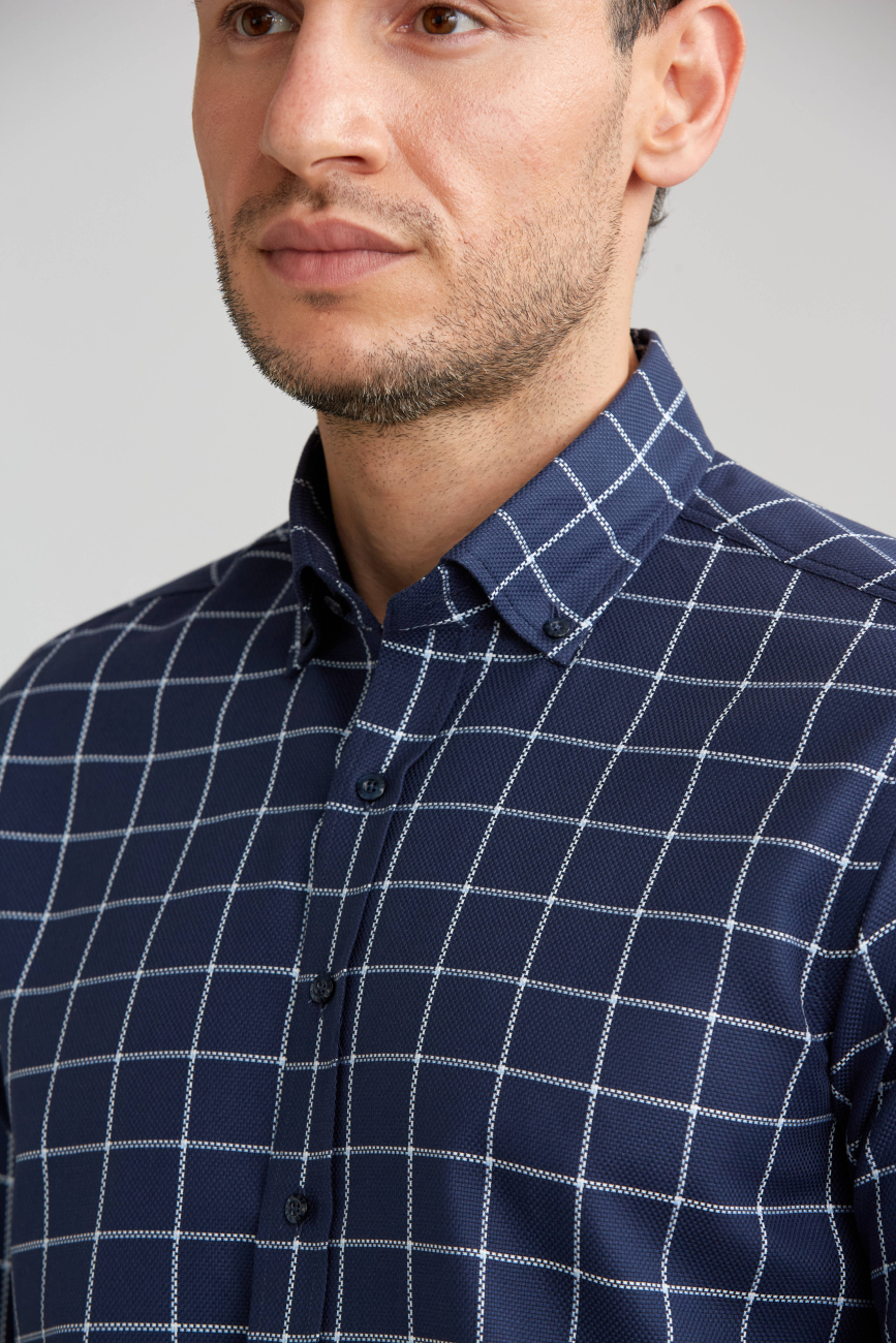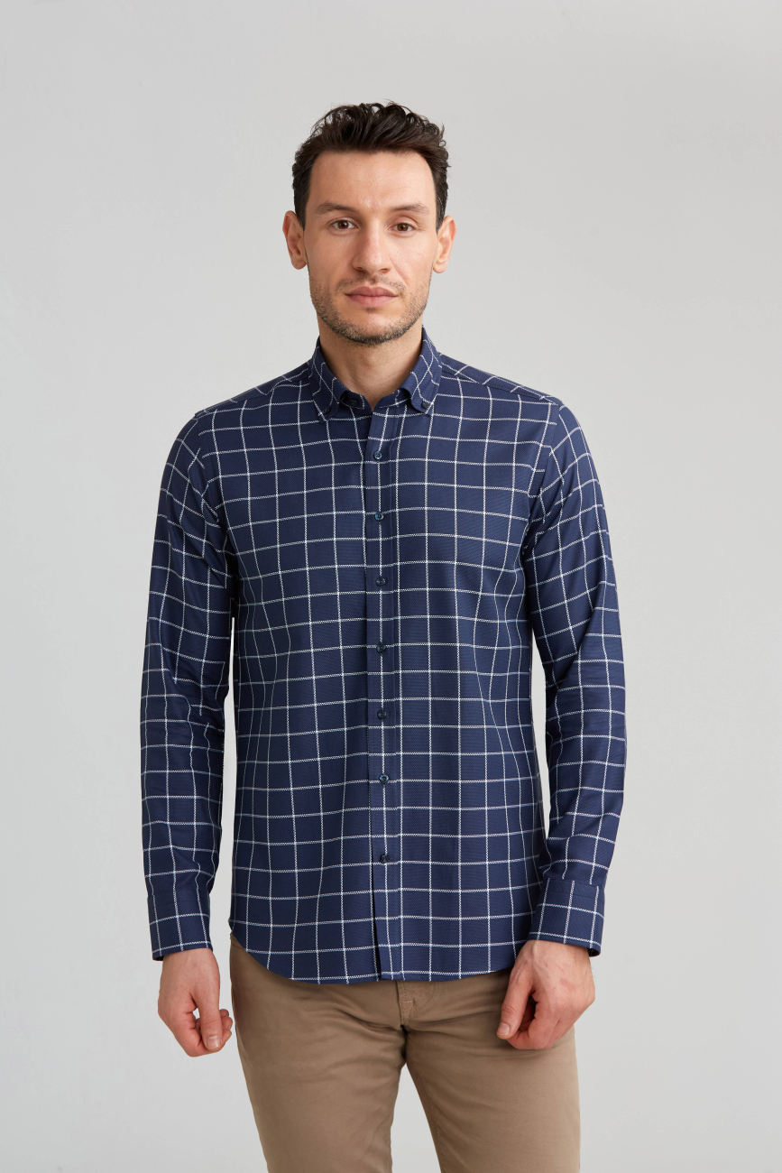 Regular Fit Ekoseli Beyaz Çizgili Spor Erkek Gömlek