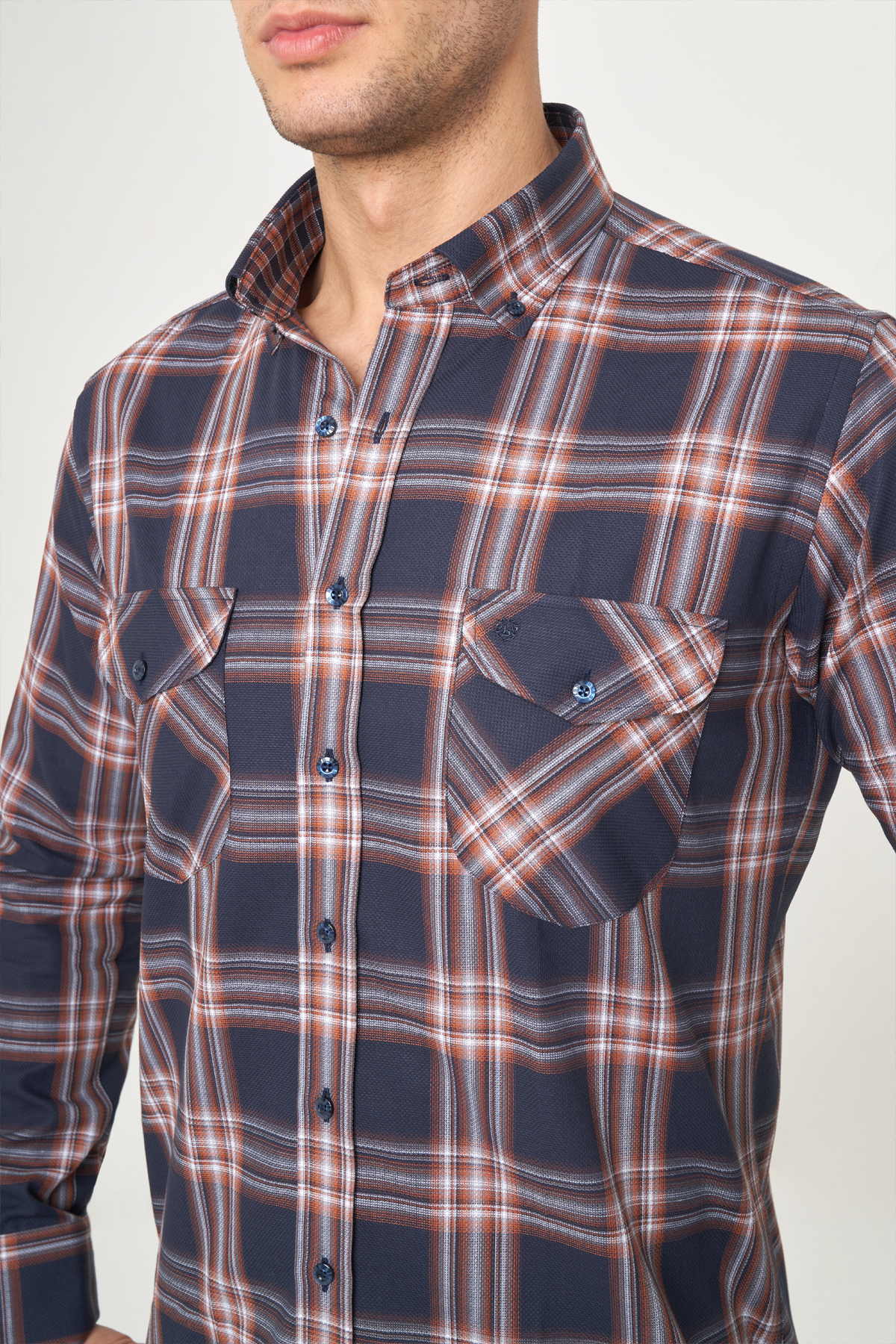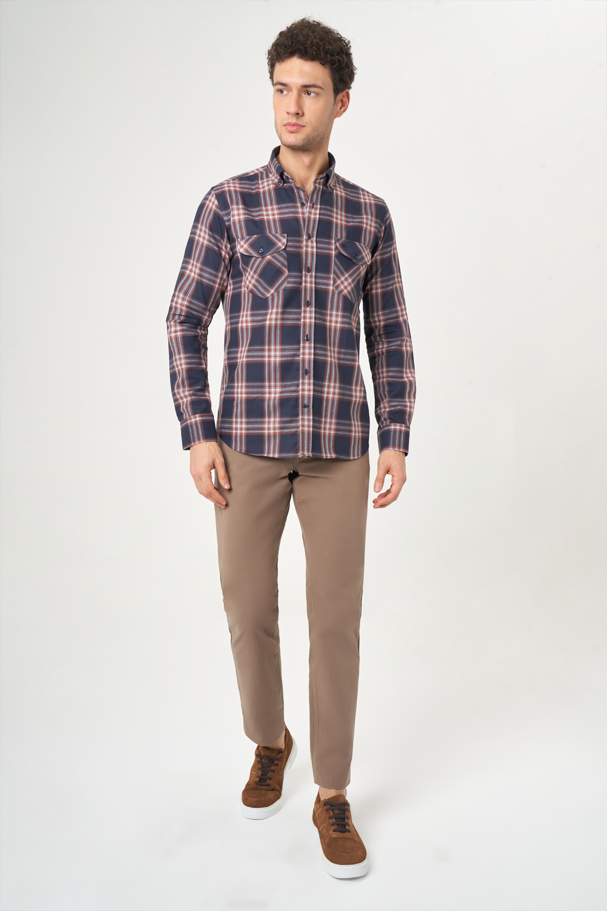 Regular Fit Ekoseli Kahve Spor Erkek Gömlek