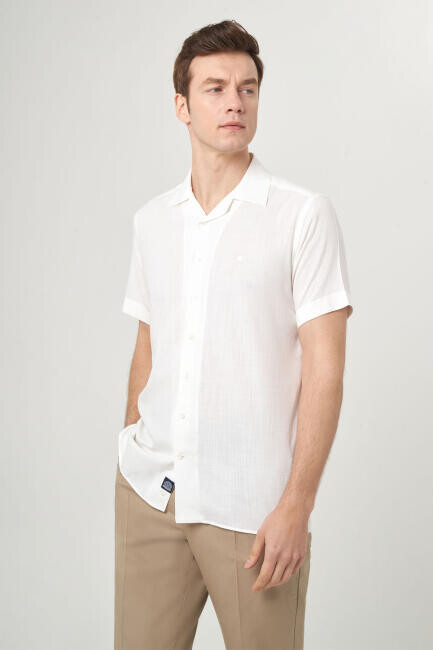 Regular Fit Ekru Renk Kısa Kollu Erkek Gömlek