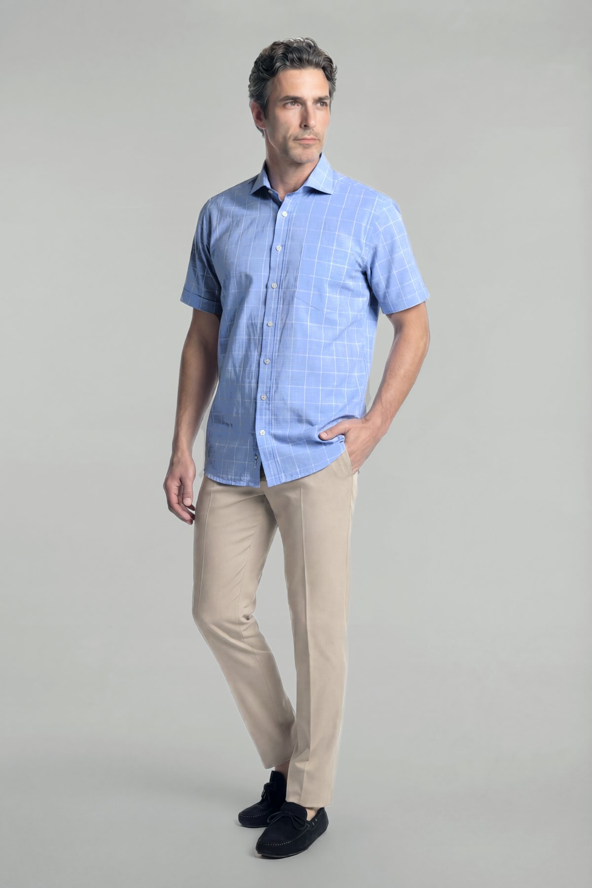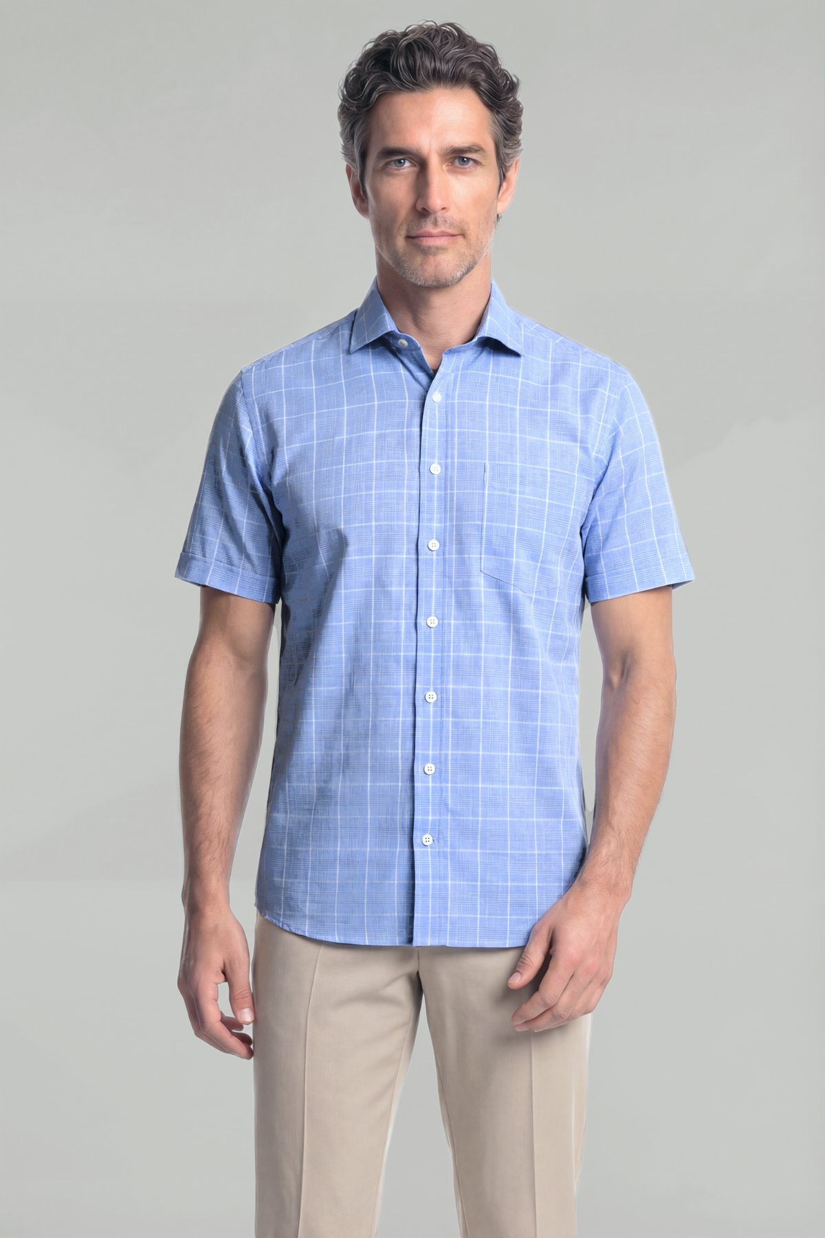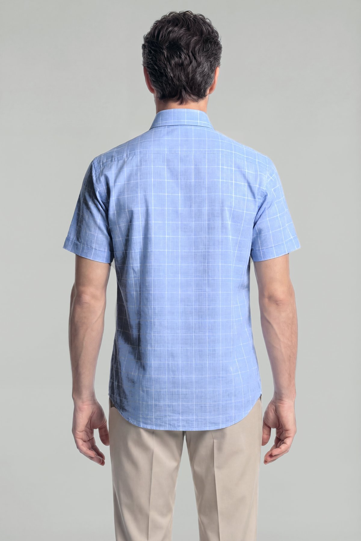 Regular Fit Erkek Kısa Kollu Klasik İtalyan Yaka Pamuk Mavi Gömlek
